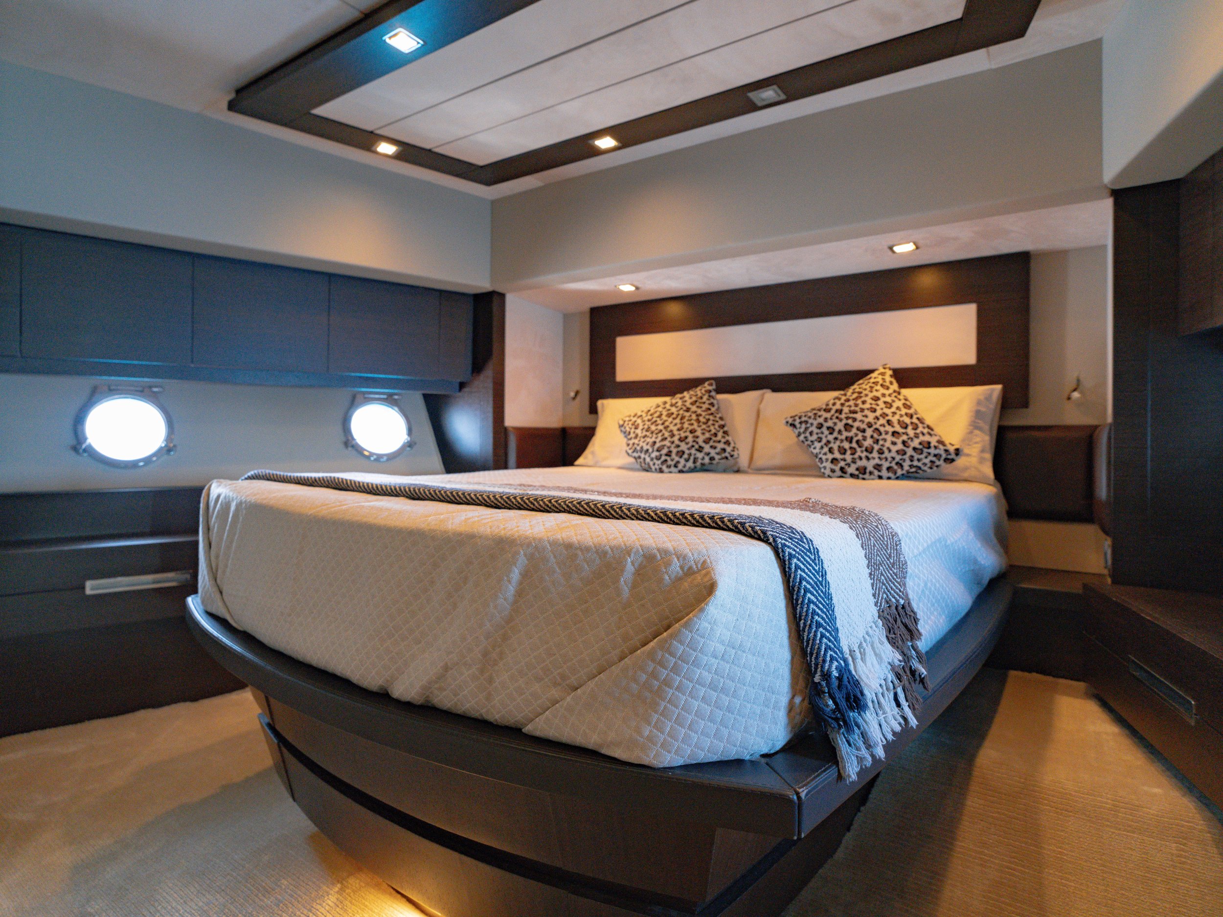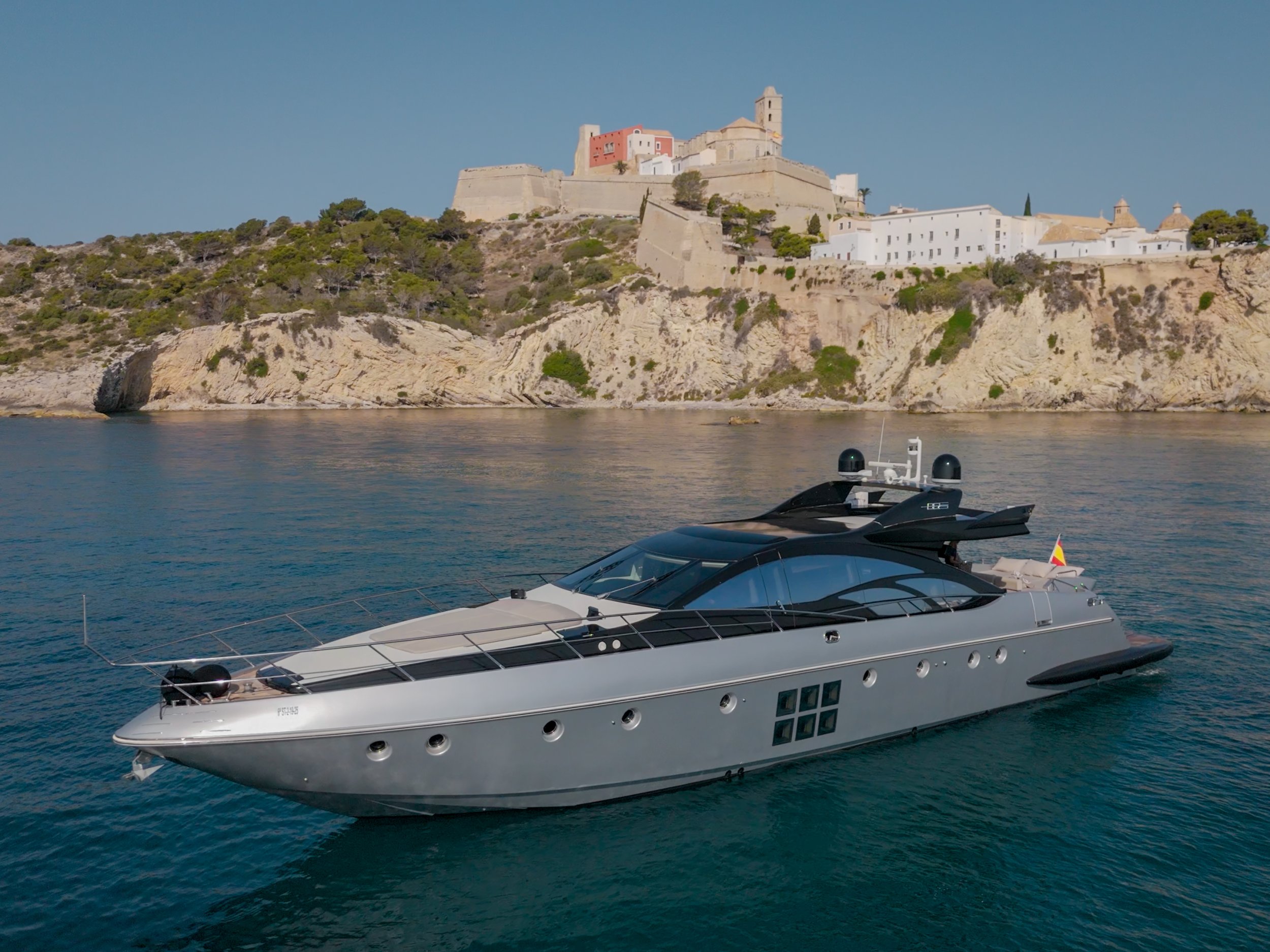 The Azimut 86S “The Jungle” is a masterpiece from the Italian shipyard that redefines the concept of large-scale sport yachts, merging an aggressive, sculptural aesthetic with an interior volume that defies the laws of naval aerodynamics.With a length overall (LOA) of 26 meters, this unit makes an impact with its unmistakable burgundy hull and iconic square honeycomb windows, which flood the lower decks with natural light. Unlike other yachts of its size that feature heavy or “wedding-cake” profiles, “The Jungle” maintains a sharp, minimalist silhouette, topped by an almost full-opening hardtop that transforms the main salon into a vast open-air terrace in seconds.Designed for those seeking the scale of a superyacht without sacrificing the adrenaline of a performance boat, it is capable of reaching an impressive 40 knots thanks to its advanced Hamilton waterjet propulsion. This system not only grants it an astounding top speed for its tonnage but also a shallow draft, allowing it to approach the shores of the most exclusive coves where other 80-foot vessels cannot reach. With four ultra-luxury cabins and contemporary-inspired interior decor, the Azimut 86S is the definitive choice for those wishing to dominate the sea with a lethal combination of power, Italian design, and absolute exclusivity.