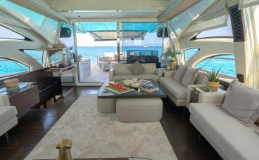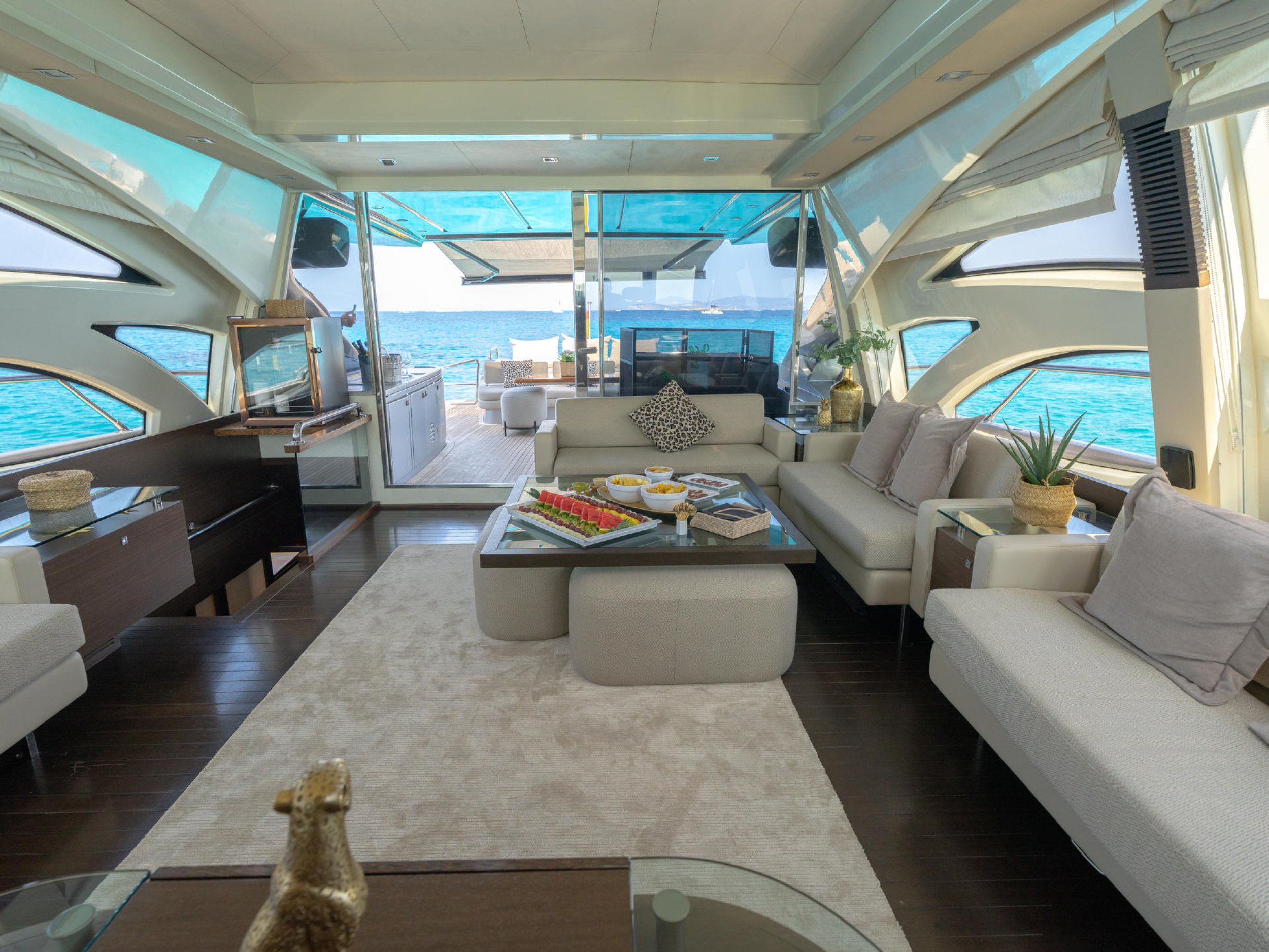 Avant-Garde Design: Her panoramic saloon features a retractable sunroof, allowing the Mediterranean breeze to flood the interior and creating seamless integration with the surroundings.