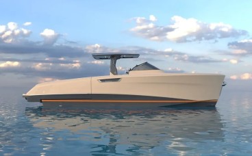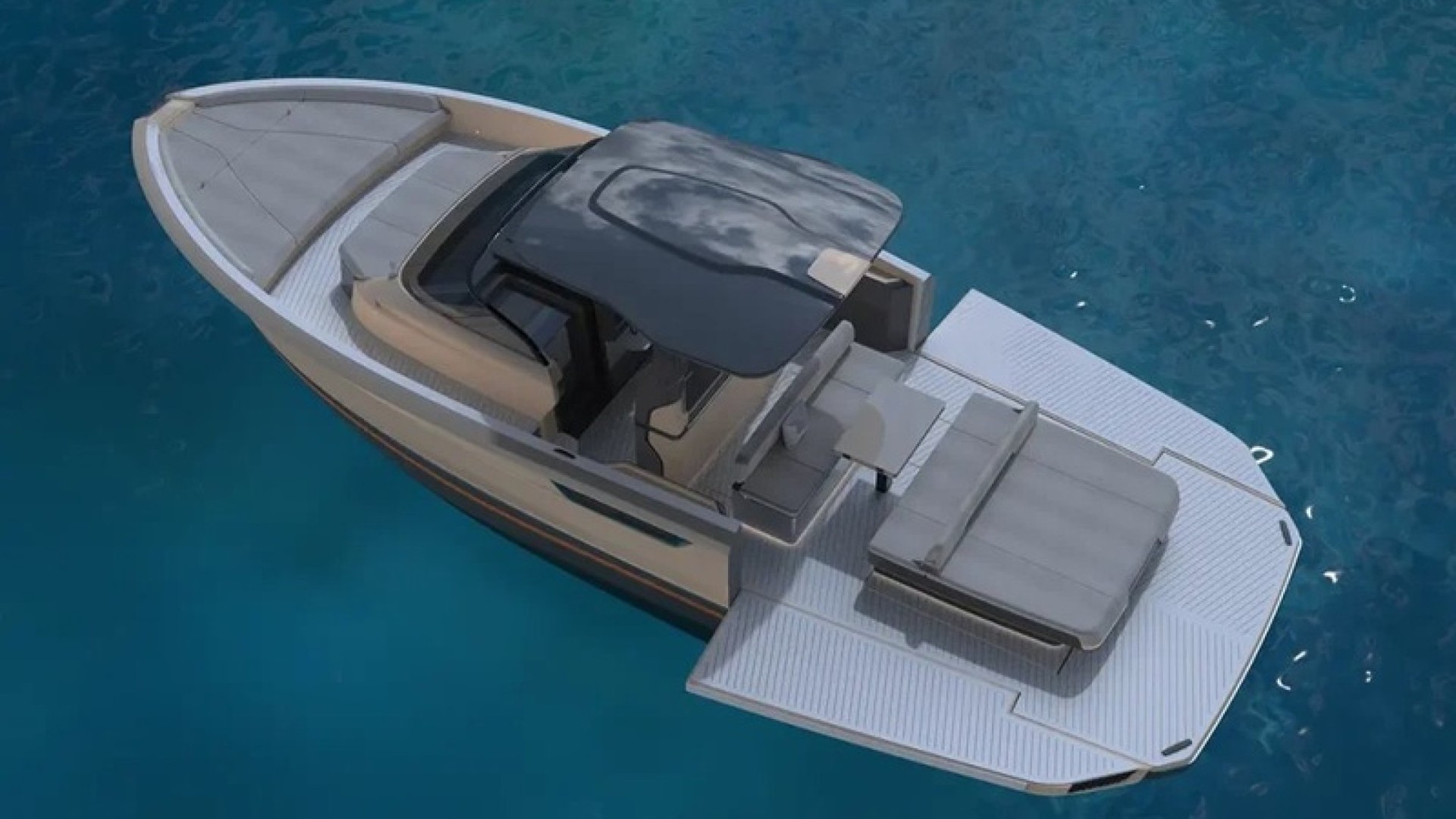 Carbon T-Top: A sleek hardtop providing optimal shade over the helm station and outdoor dinette, preserving the aerodynamic silhouette characteristic of Bellini shipyards.