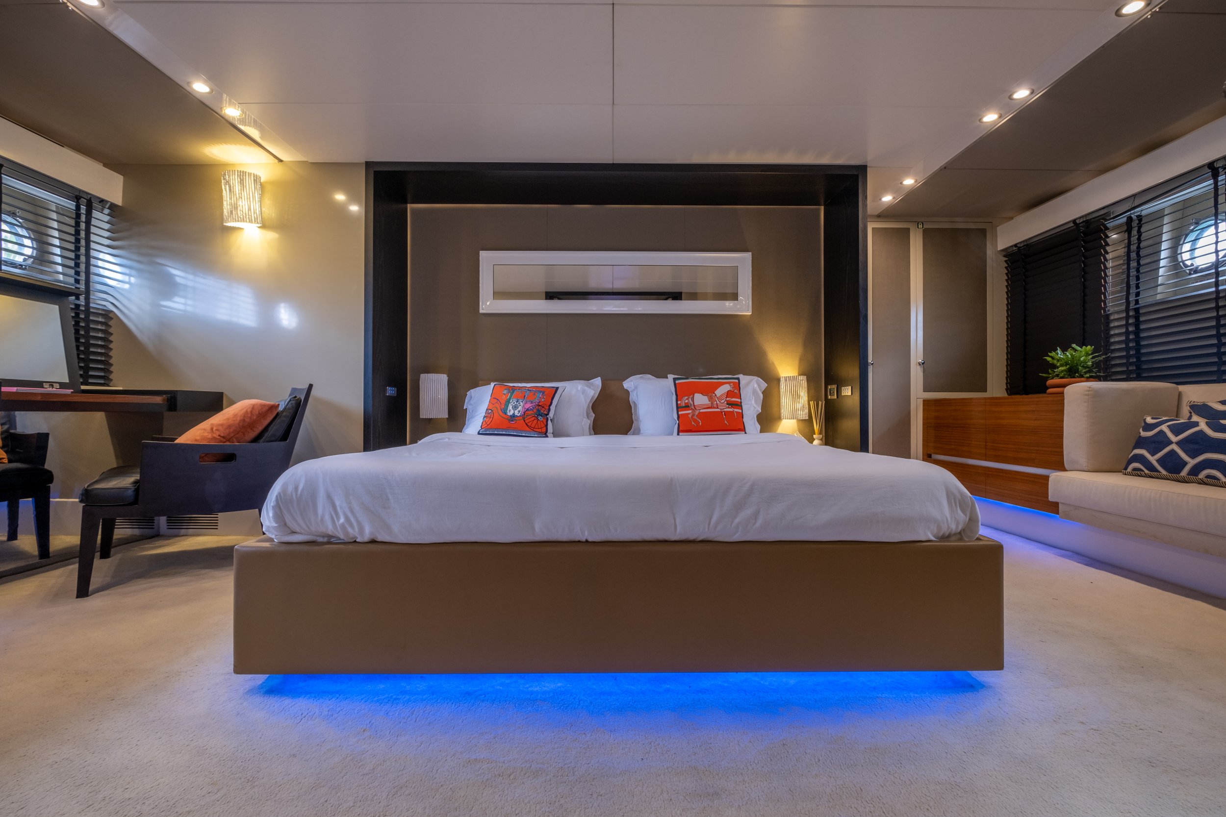 The Canados Open 90 “Funky Town” is an ode to power and the Mediterranean lifestyle; an Italian superyacht representing the ultimate evolution of the Open concept: a vessel of colossal dimensions that handles with the agility and temperament of a racing powerboat.With a length overall (LOA) of 27 meters, this unit commands attention through its low, sharp, and aerodynamic profile, eschewing the heavy superstructures of conventional yachts. Unlike other high-volume vessels that feel static, “Funky Town” offers a flush main deck that connects seamlessly from the aft cockpit to the helm station, creating a vast and sophisticated social space protected by a hard-top that flows organically with the hull lines.It is a yacht designed for those who demand extreme performance without compromising five-star luxury, capable of reaching blistering speeds exceeding 45 knots thanks to its cutting-edge engineering and surface drive propulsion. This configuration allows it to plane with astonishing efficiency, leaving behind the iconic “rooster tail” wake characteristic of high-performance racing boats. Featuring an interior that houses four luxurious cabins and a minimalist designer salon, the Canados 90 is the definitive choice for those seeking a yacht with a vibrant personality, capable of crossing from Ibiza to Formentera in the blink of an eye with an unbeatable presence.