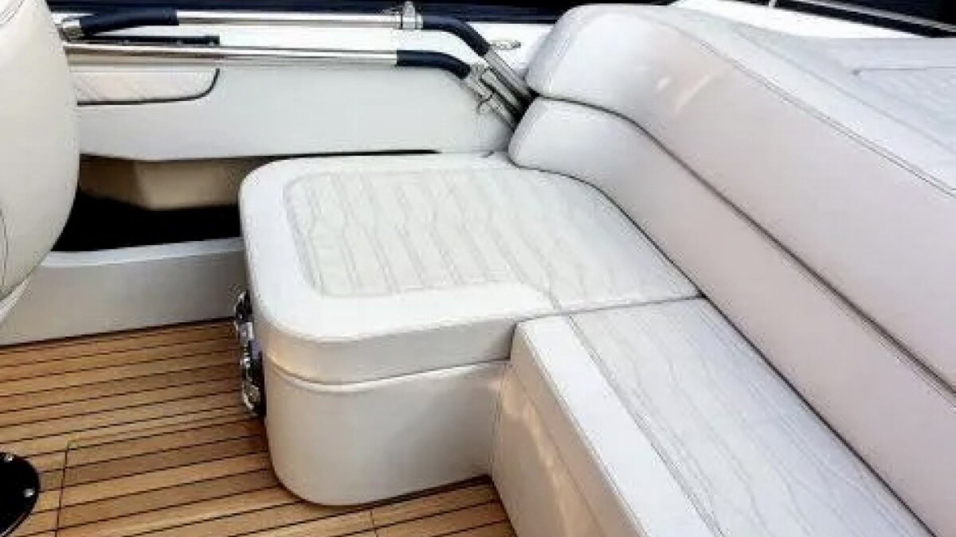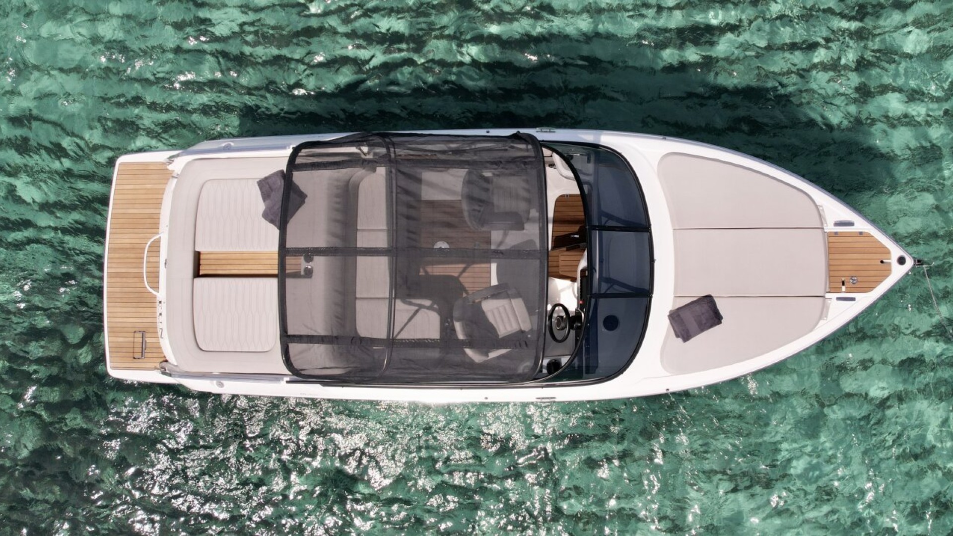 Extensible Aft Sunpad: The large sunpad over the engine compartment connects directly to the swim platform, providing safe and easy access to the water after a sunbathing session.