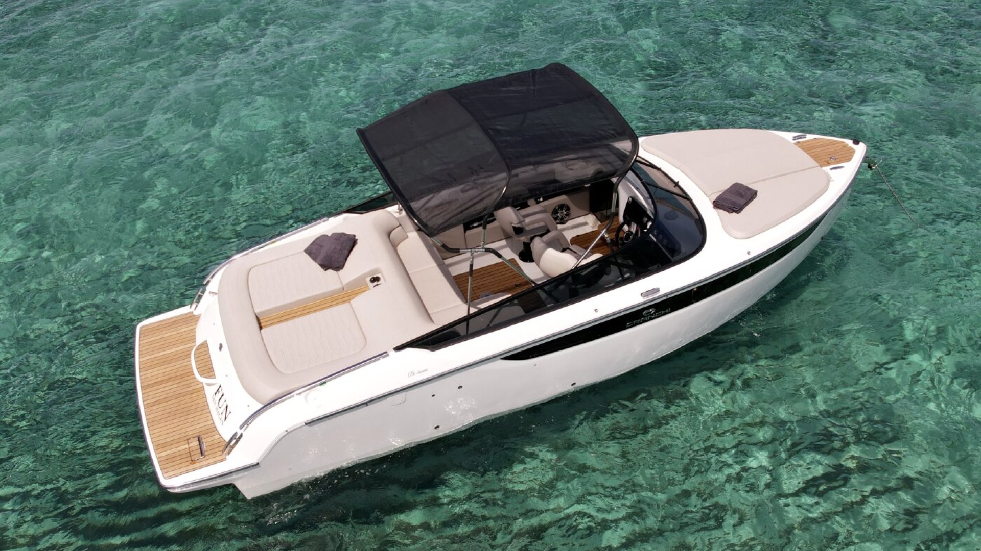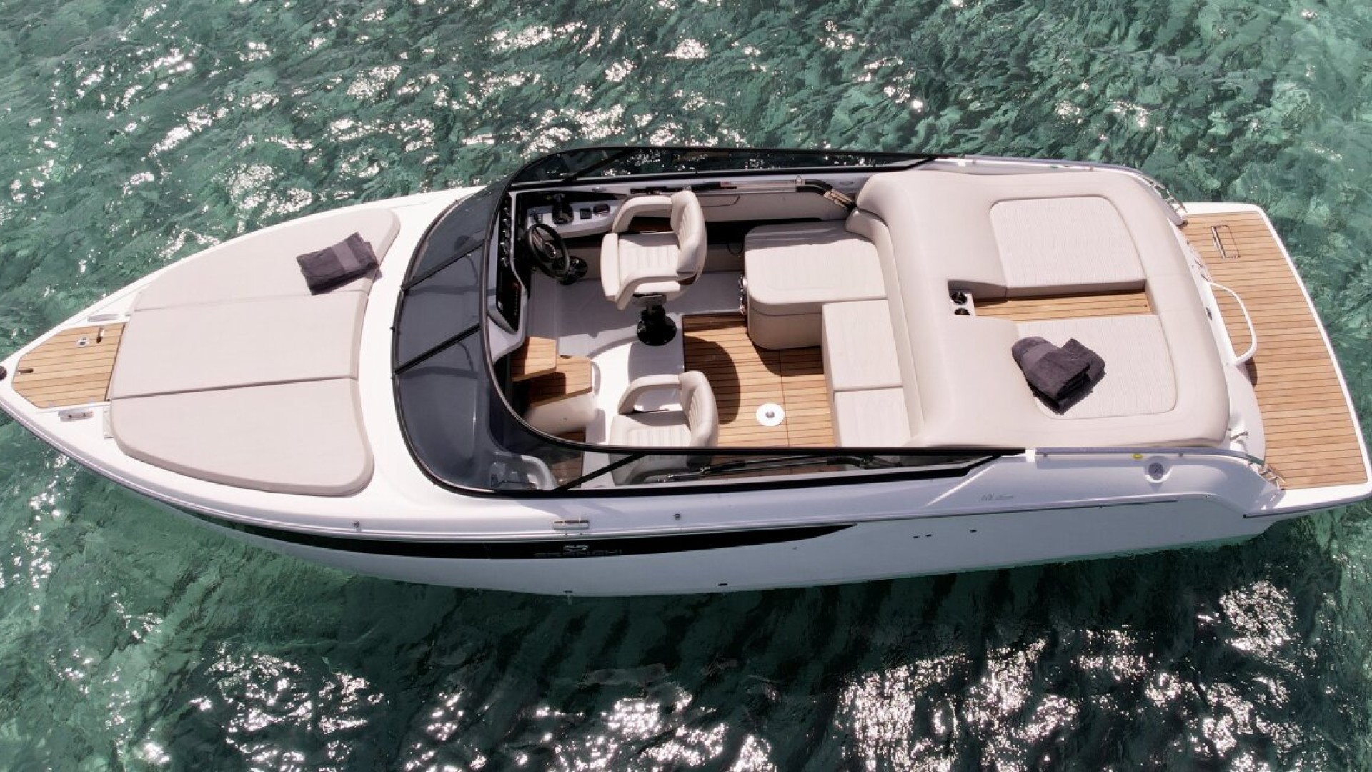 Signature Design & Timeless Aesthetics: Its teak foredeck and wraparound windshield evoke the glamour of the Dolce Vita, offering a sophisticated profile that stands out among any other vessel of its LOA (Length Overall).
