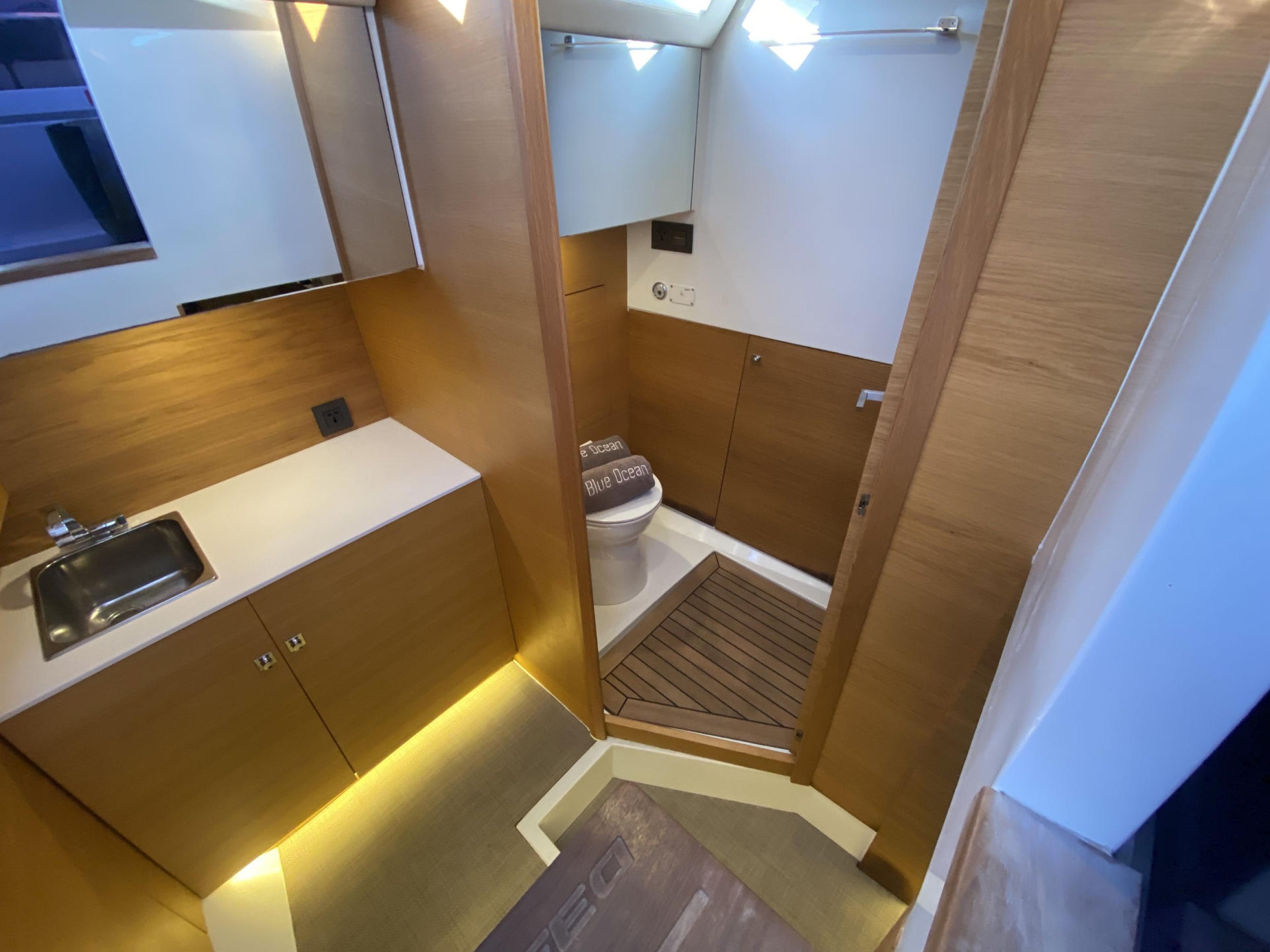 Surprising Interiors: Despite her “open” profile, she offers a modern double cabin and a full head, ideal for taking a break from the sun or changing in total privacy.