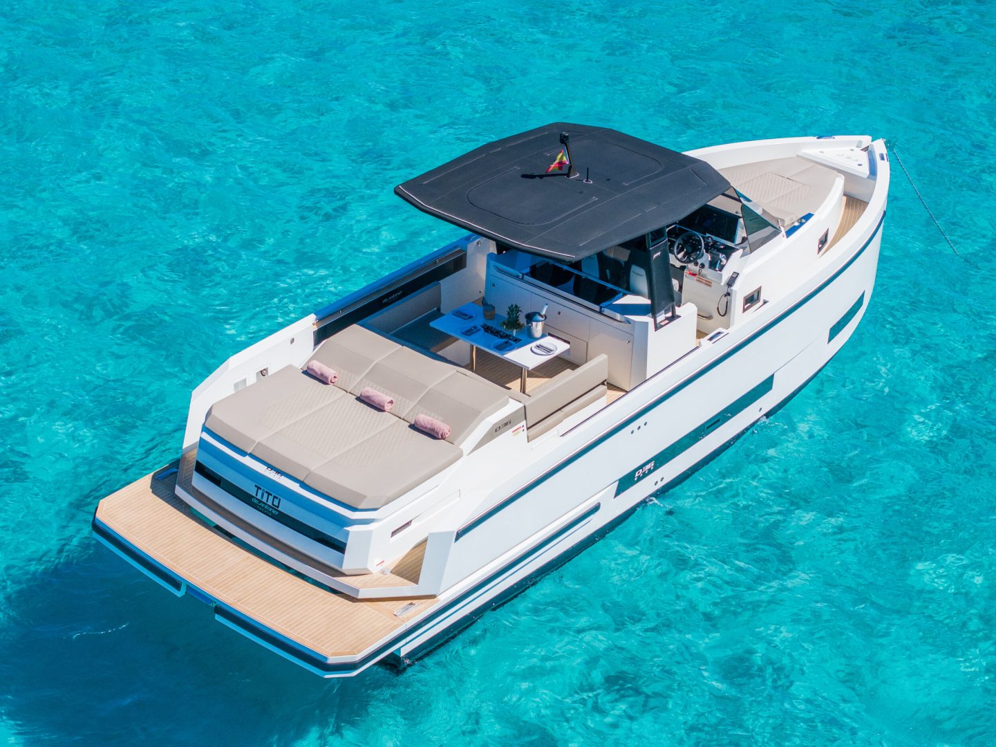 High-Performance Specs: With a cruising speed of 27 knots, you will reach Es Vedrà or Illetes in the blink of an eye, enjoying smooth and stable cruising thanks to its award-winning hull design.