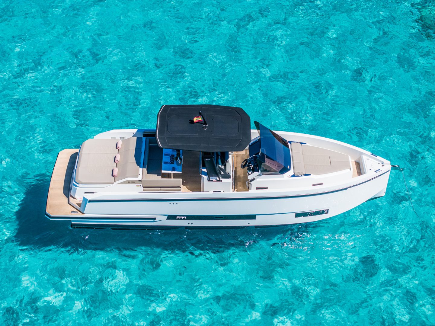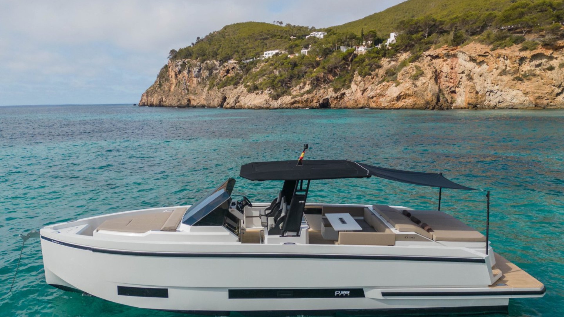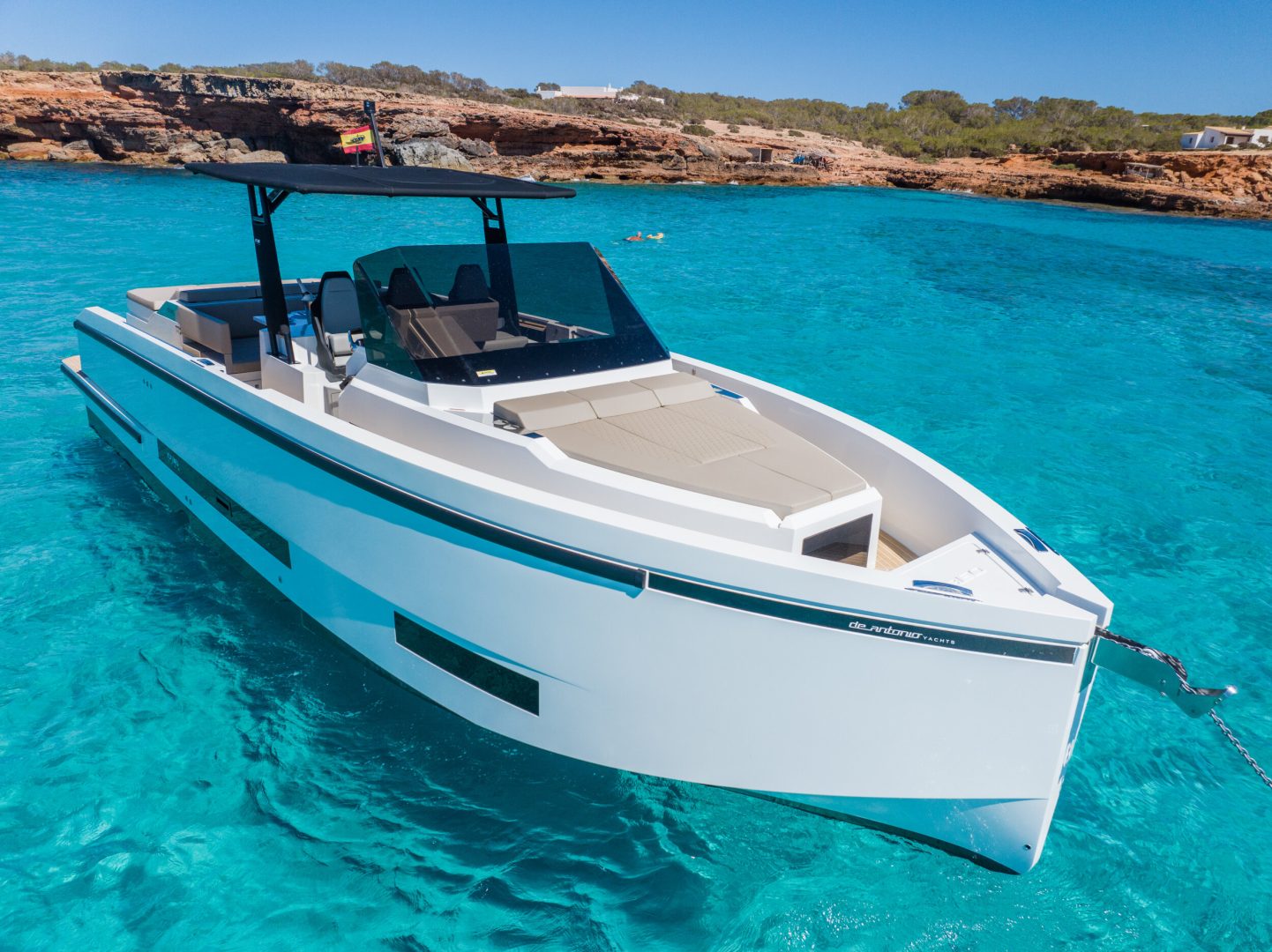 It combines a minimalist aesthetic of clean lines with a walk-around layout that creates a sense of infinite space. It is the perfect balance between sportiness and absolute comfort, designed for those who wish to stand out on the Ibizan coast.