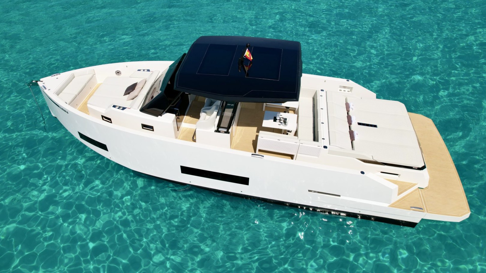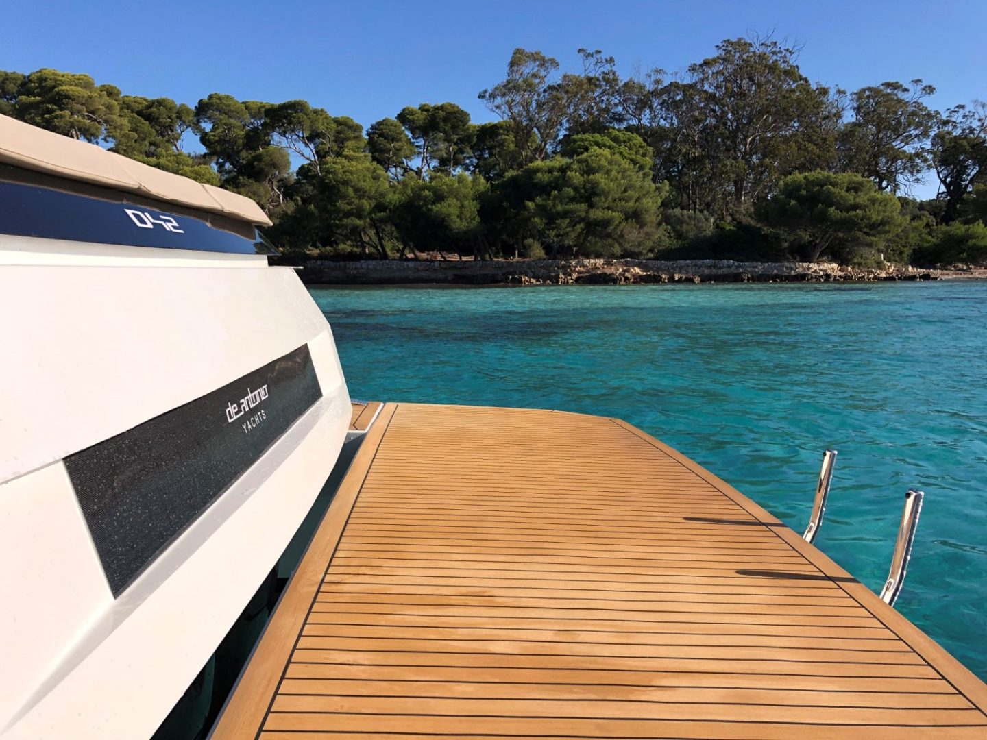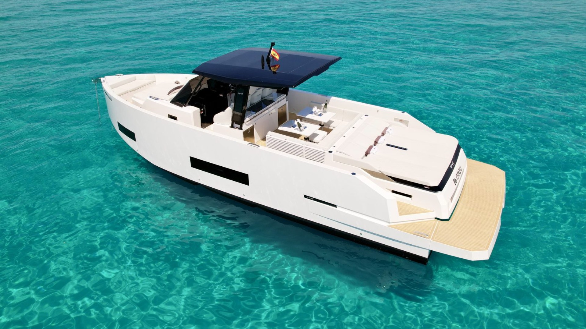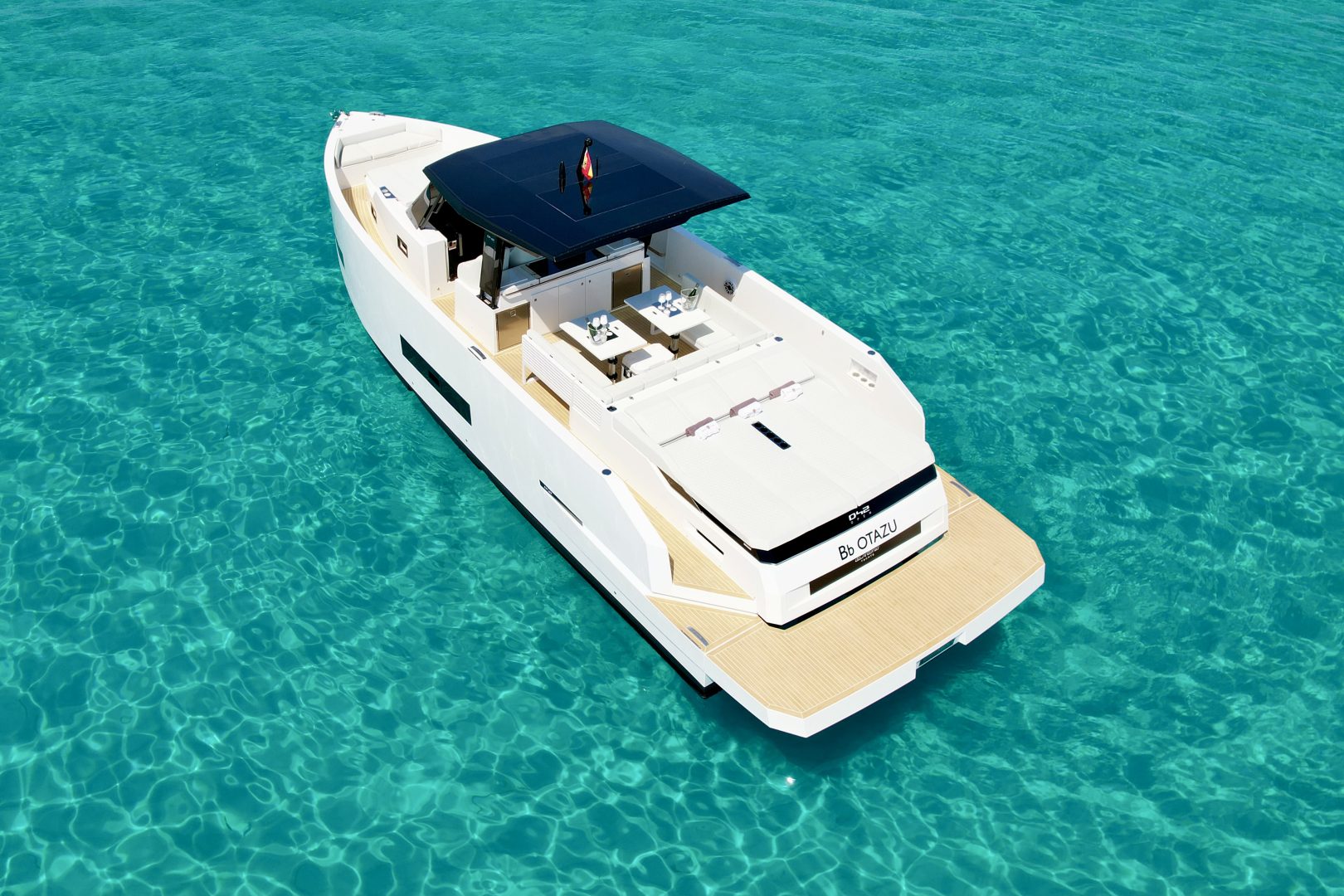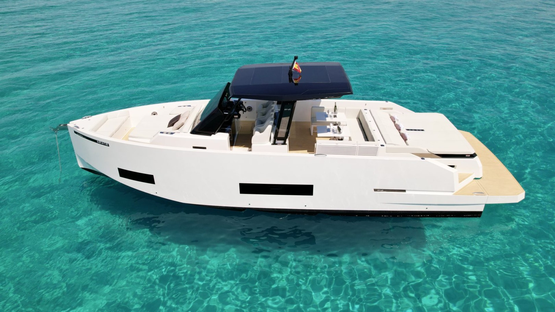 With its architectural lines and an impeccable white hull that pierces the turquoise blue of our coves, the D42 is the preferred choice for those seeking exclusivity without sacrificing functionality. It is the perfect balance between a sporty day-cruiser and a luxury yacht with every comfort imaginable.
