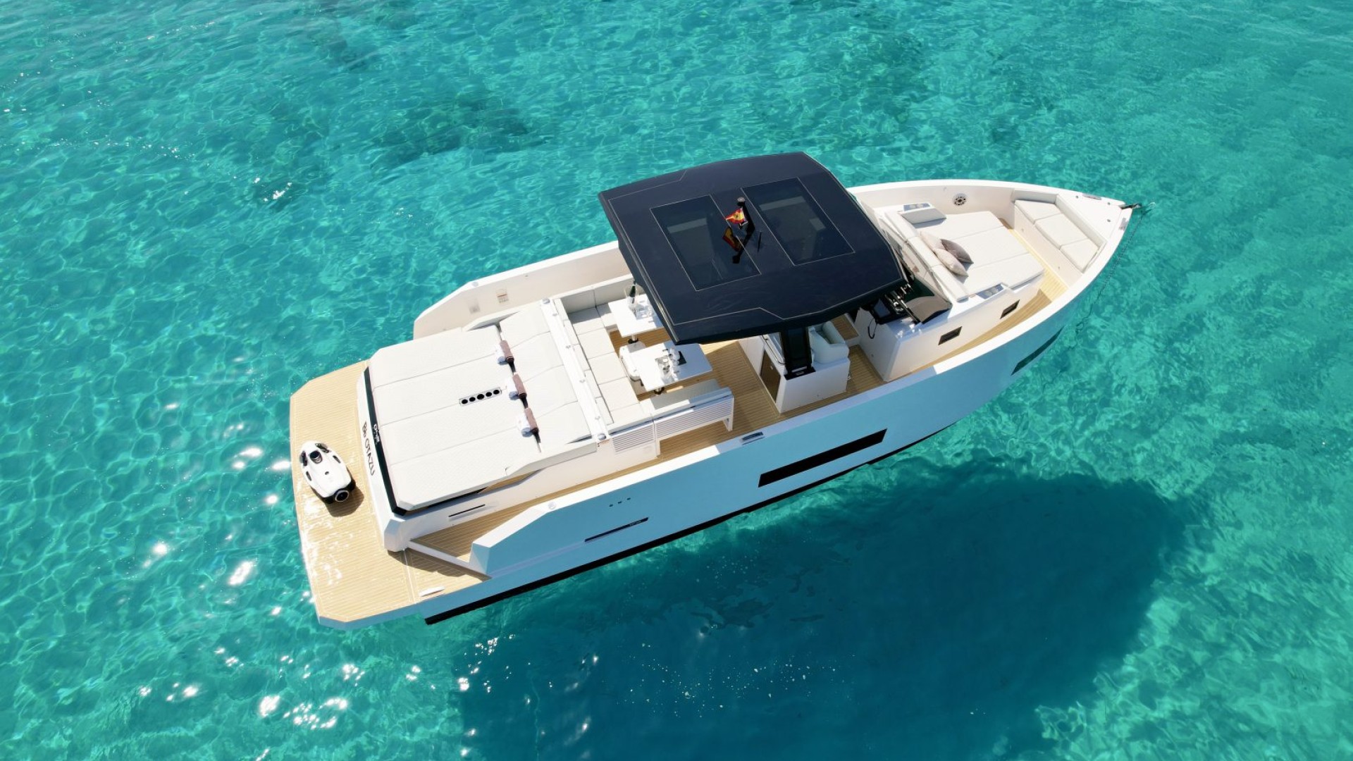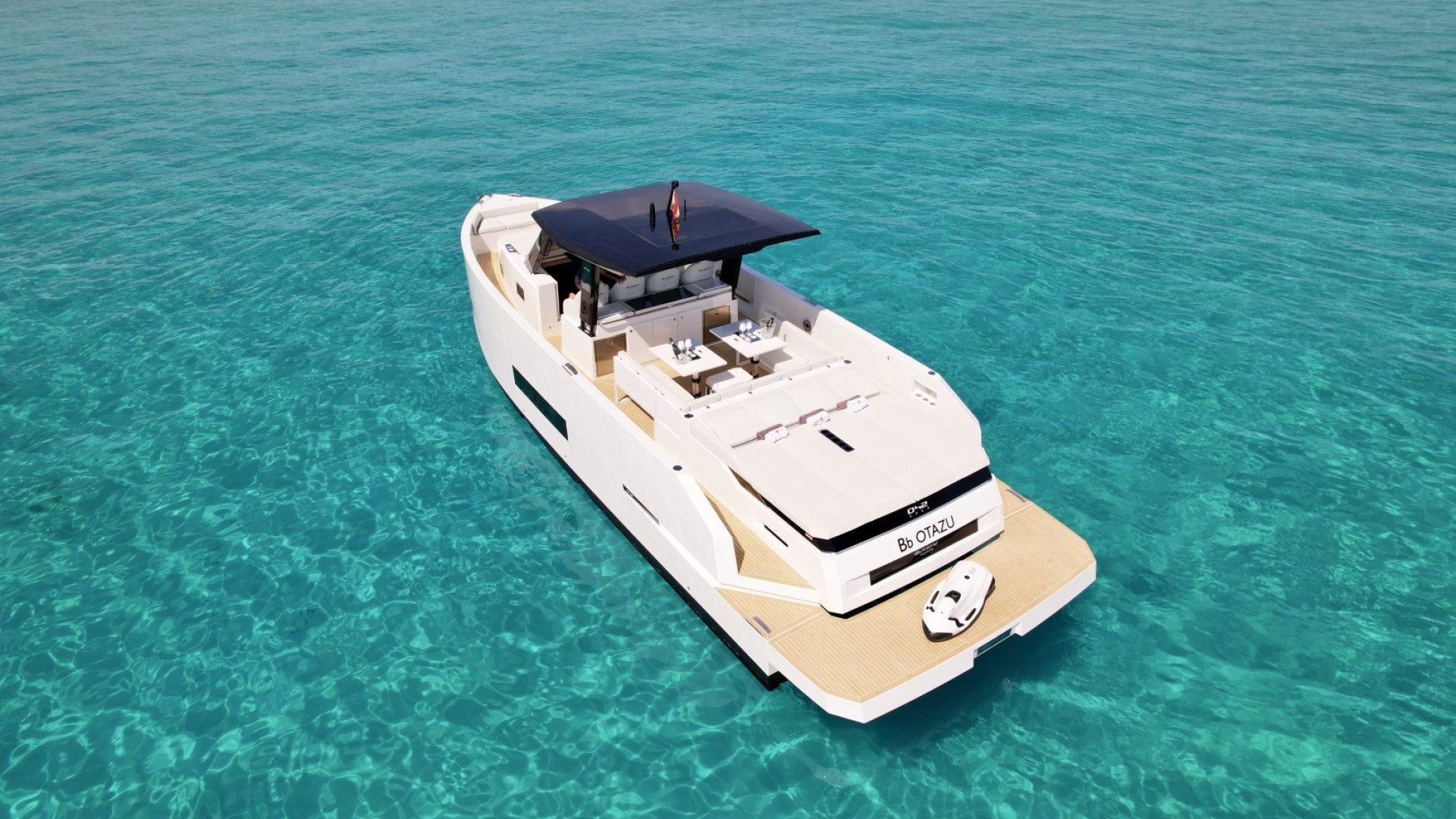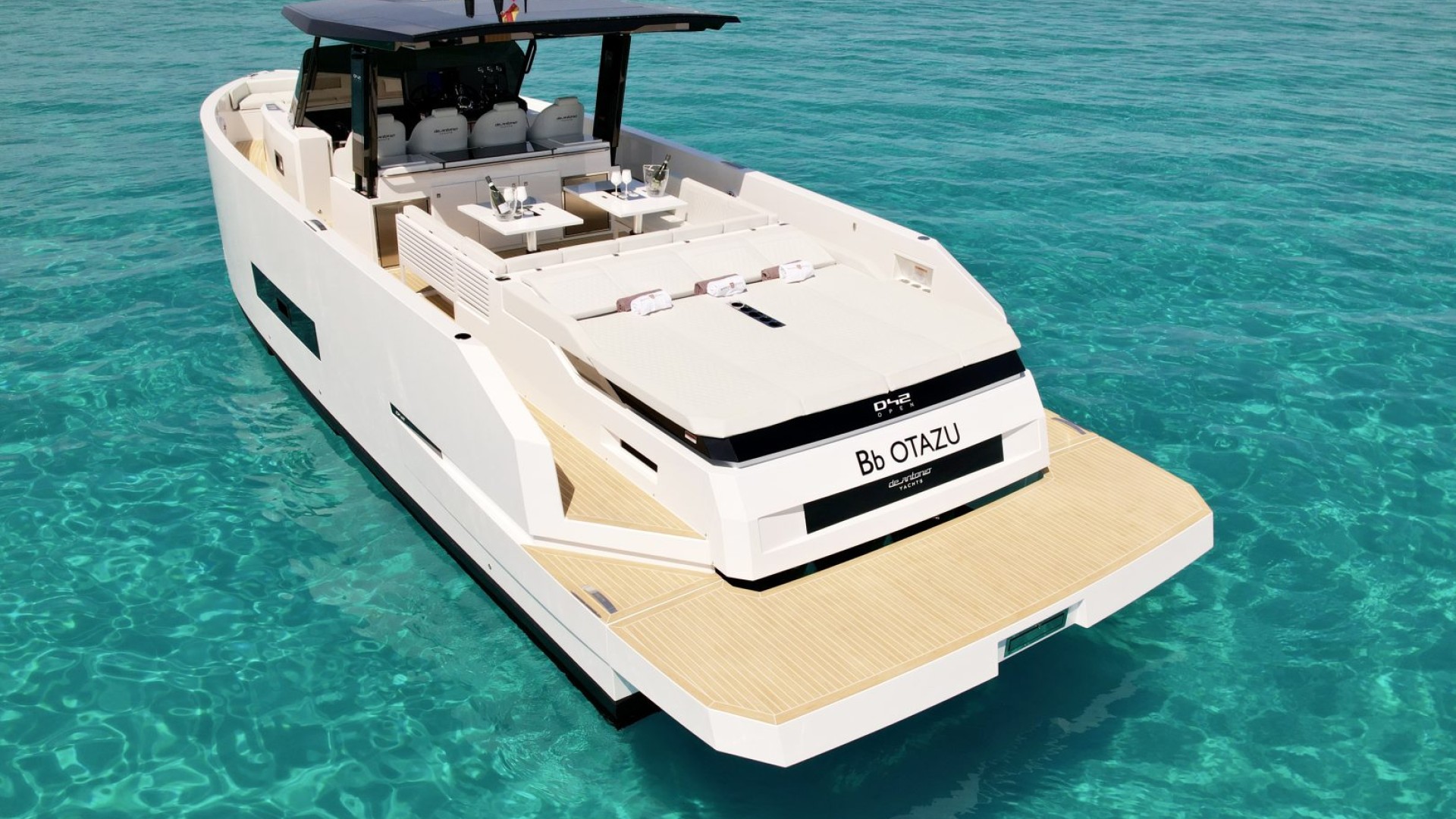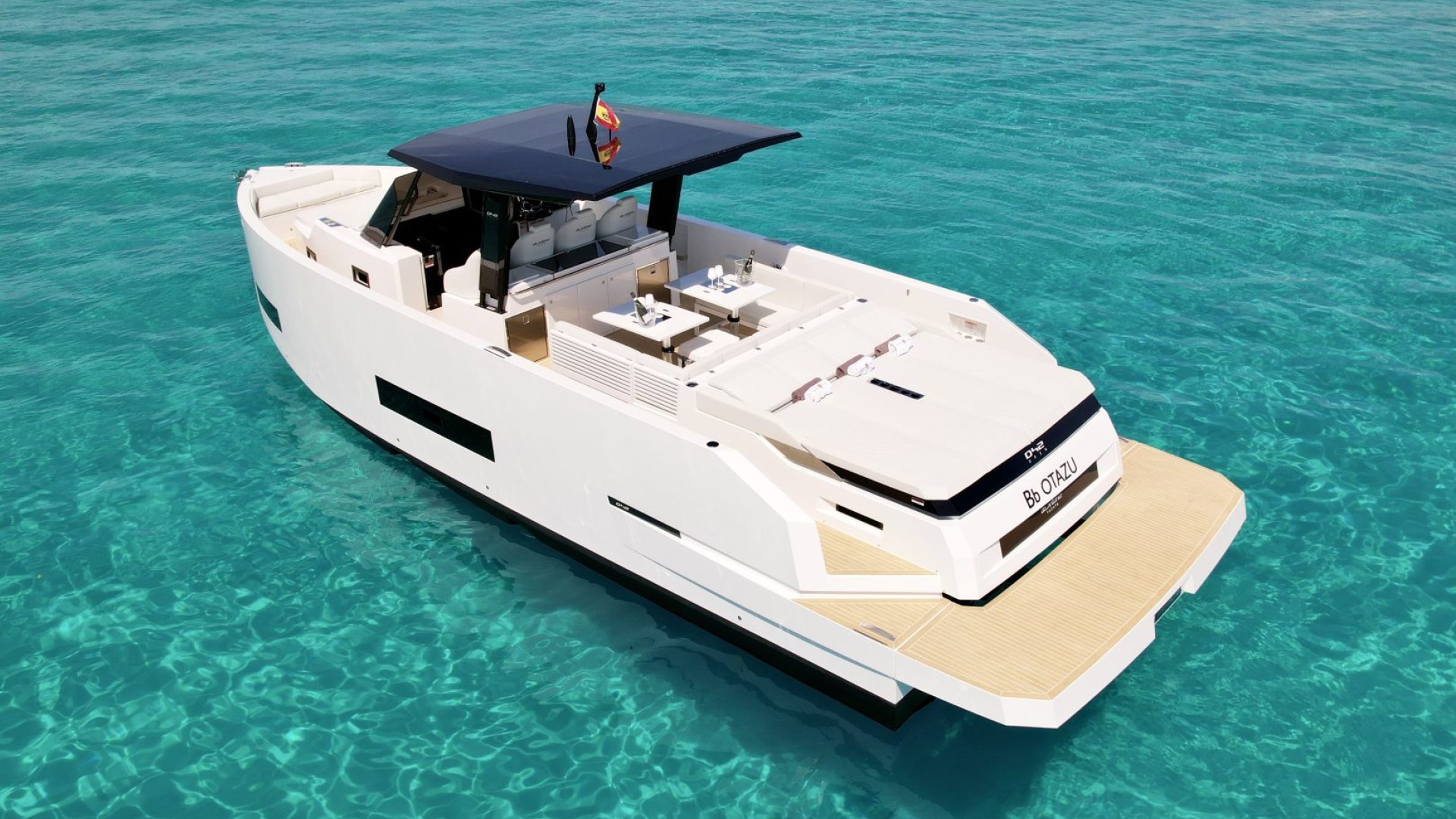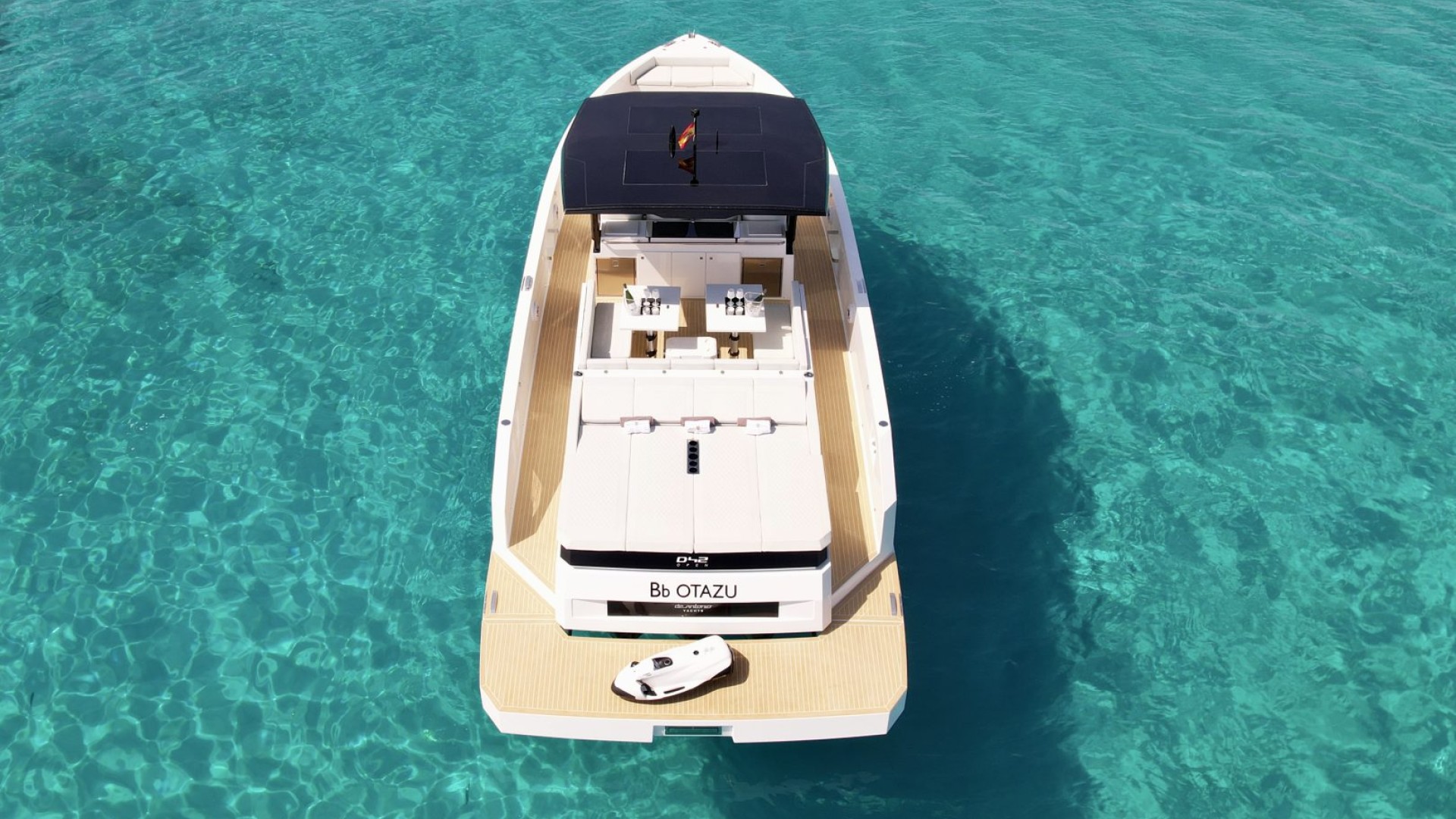 With its architectural lines and an impeccable white hull that pierces the turquoise blue of our coves, the D42 is the preferred choice for those seeking exclusivity without sacrificing functionality. It is the perfect balance between a sporty day-cruiser and a luxury yacht with every comfort imaginable.
