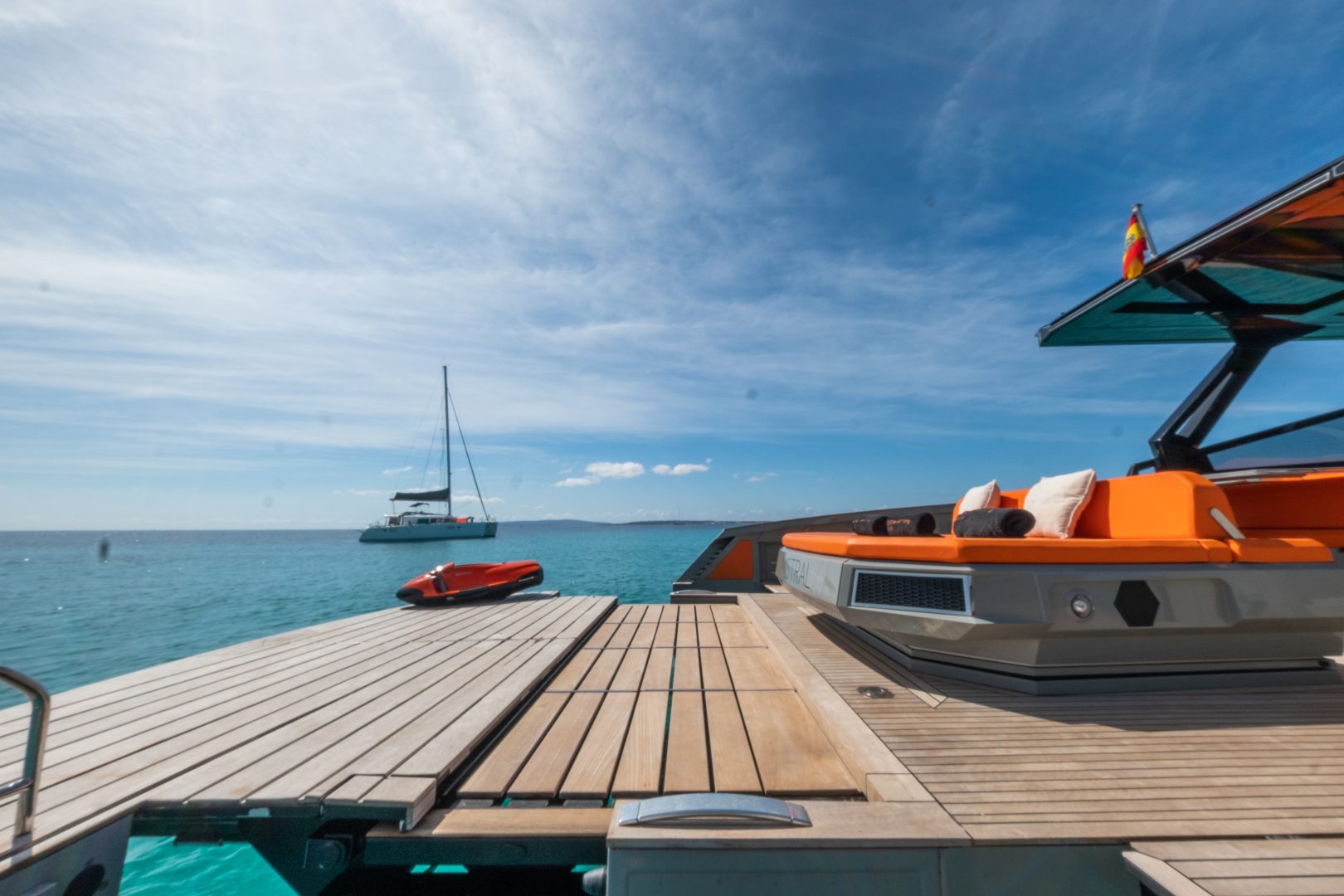 Power and Speed: Powered by twin Volvo Penta IPS 600 engines, this yacht reaches 38 knots, allowing you to cross from Ibiza to Formentera in the blink of an eye with smooth and precise handling.