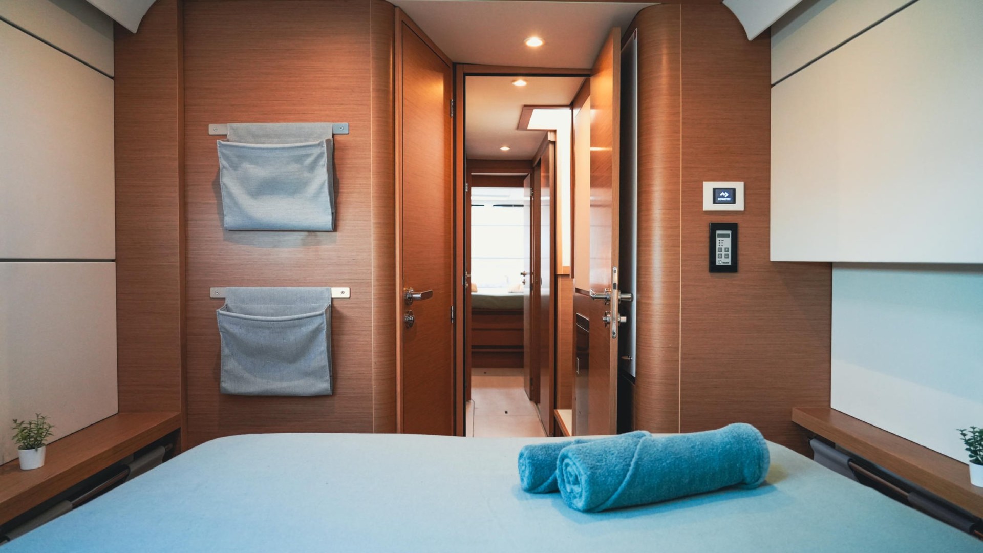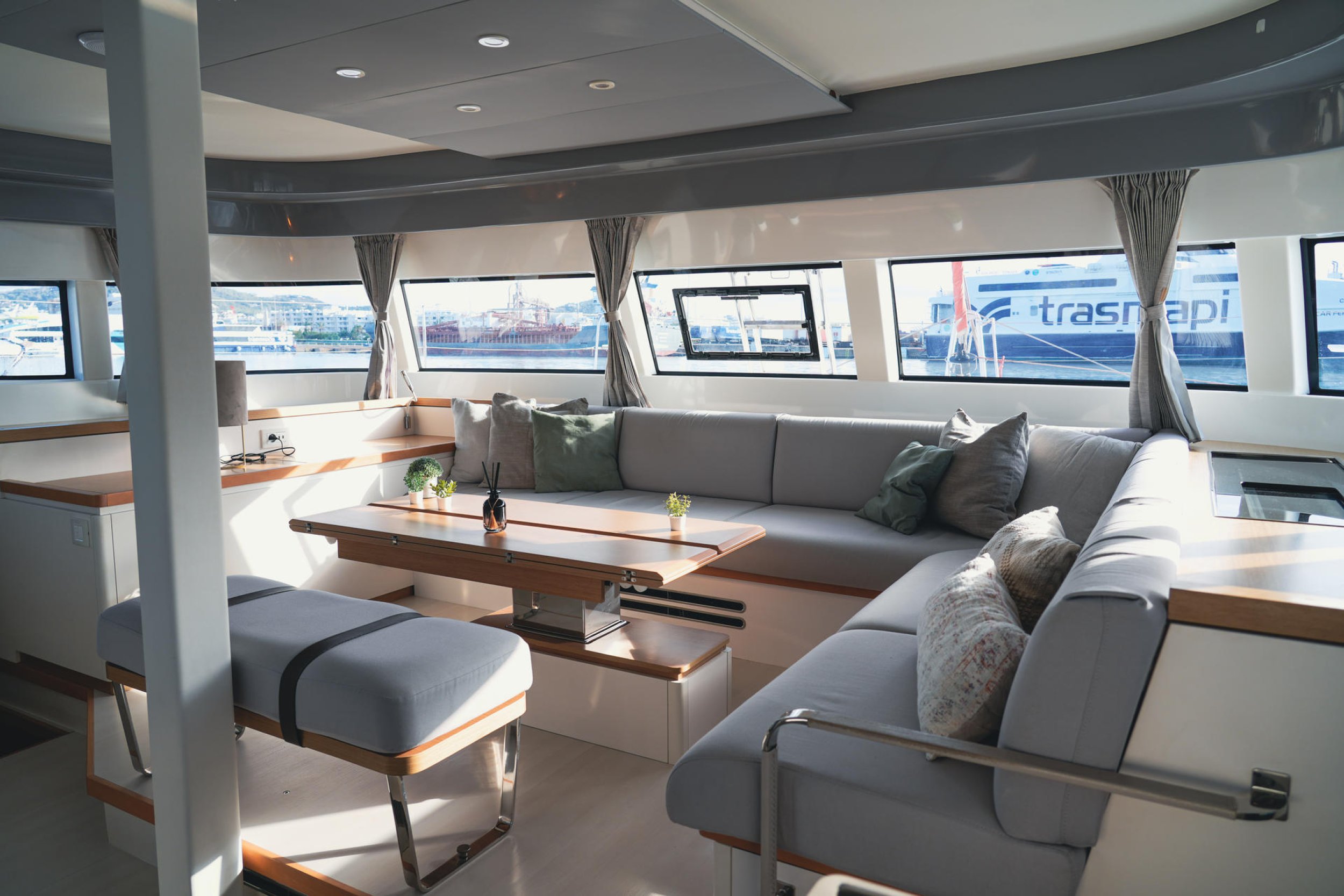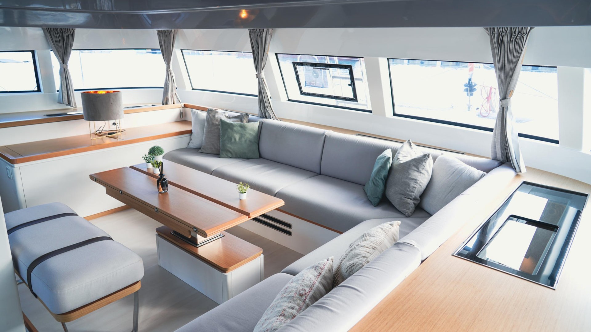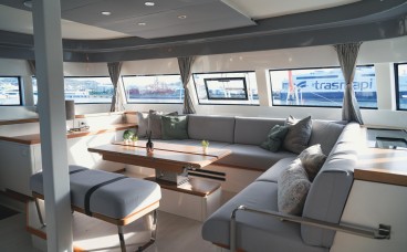 Spaciousness and “Nauta Design”: The interior is a masterclass in high-end minimalism. Light wood, 360° panoramic windows, and a layout of up to 6 double cabins guarantee privacy and premium rest for 12 guests plus crew.