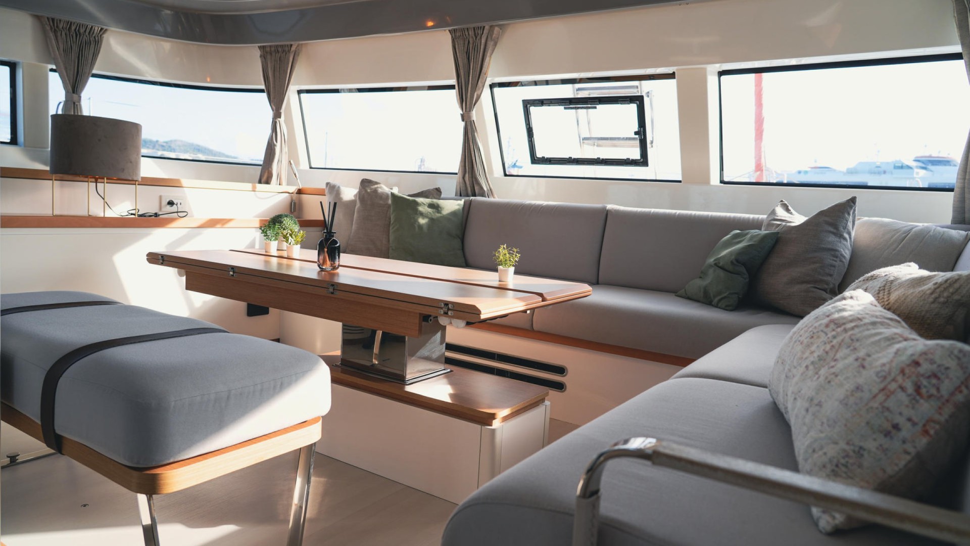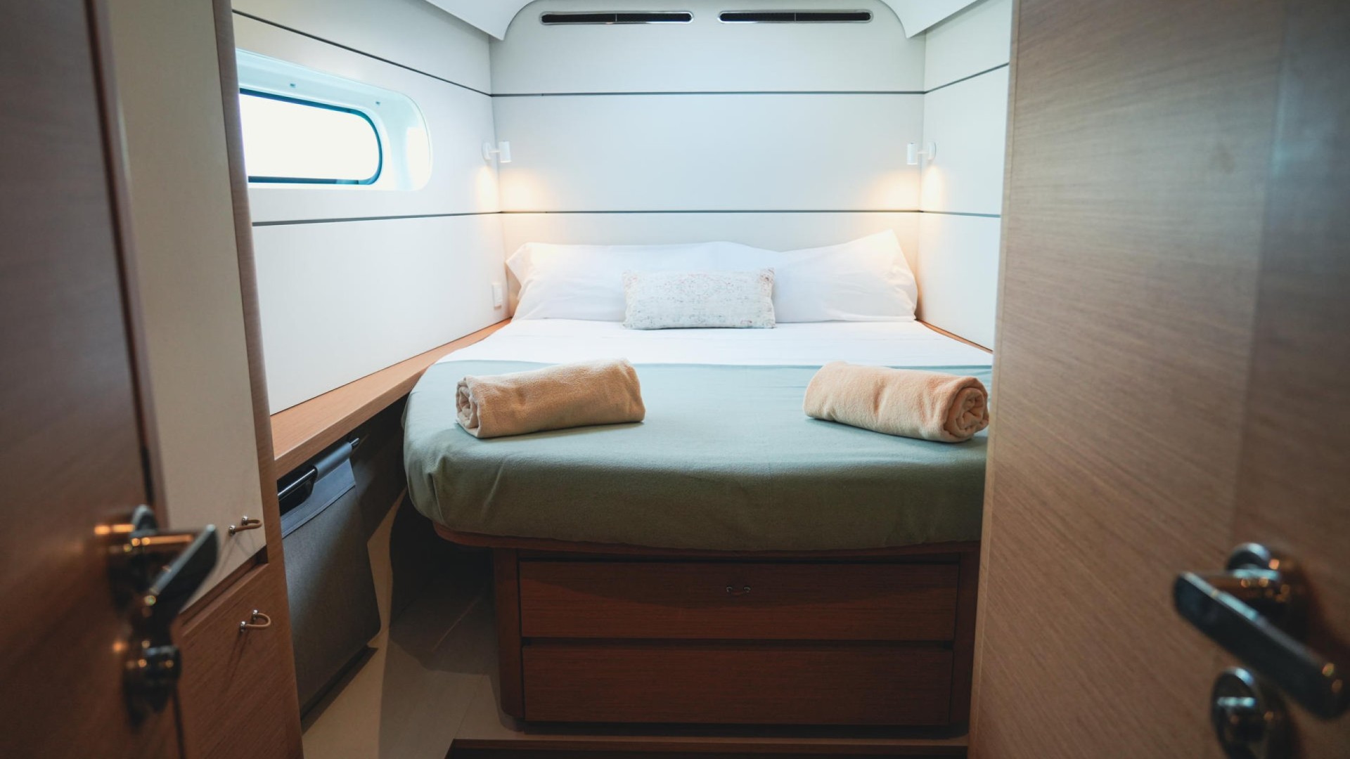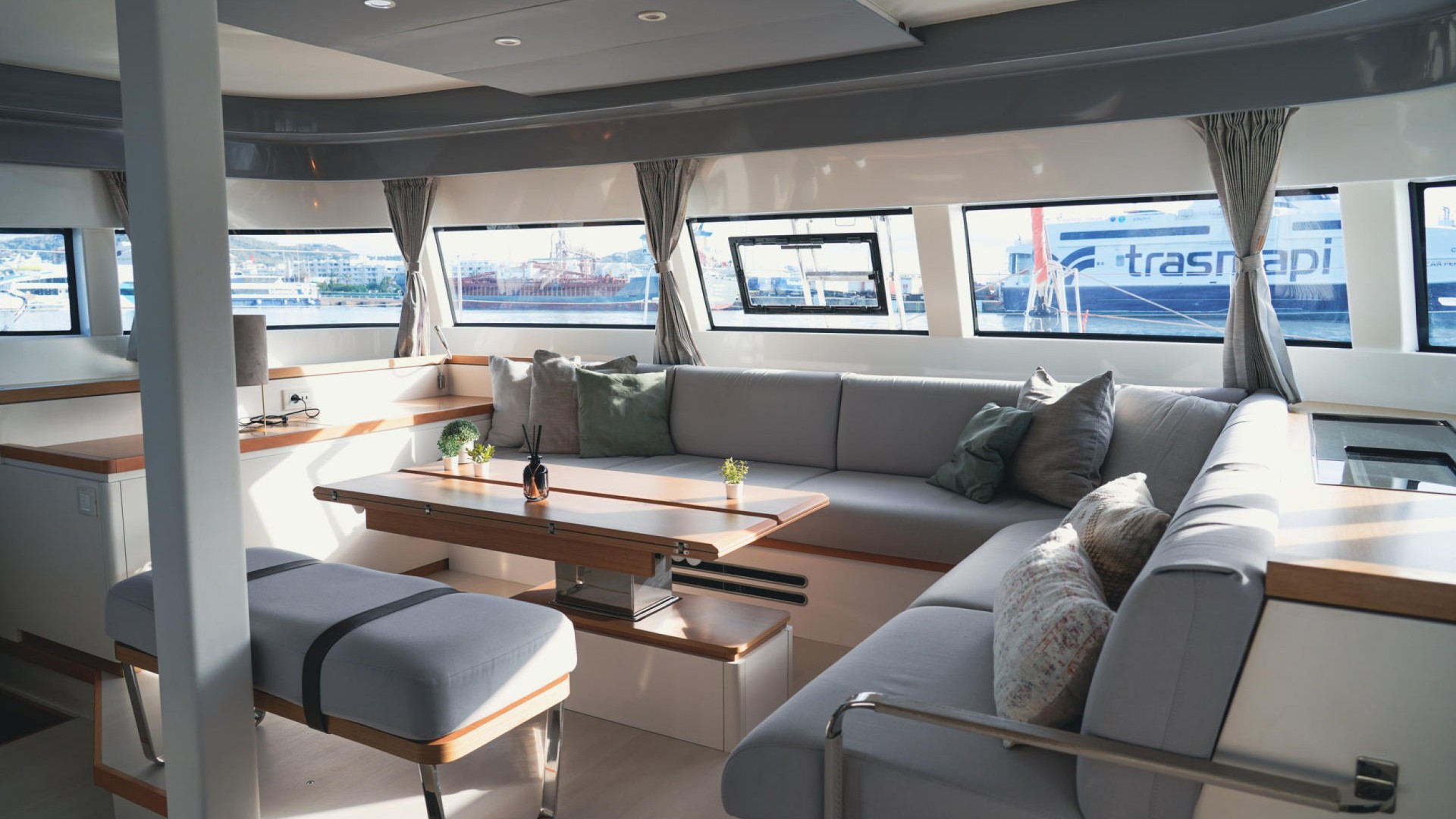 Spaciousness and “Nauta Design”: The interior is a masterclass in high-end minimalism. Light wood, 360° panoramic windows, and a layout of up to 6 double cabins guarantee privacy and premium rest for 12 guests plus crew.