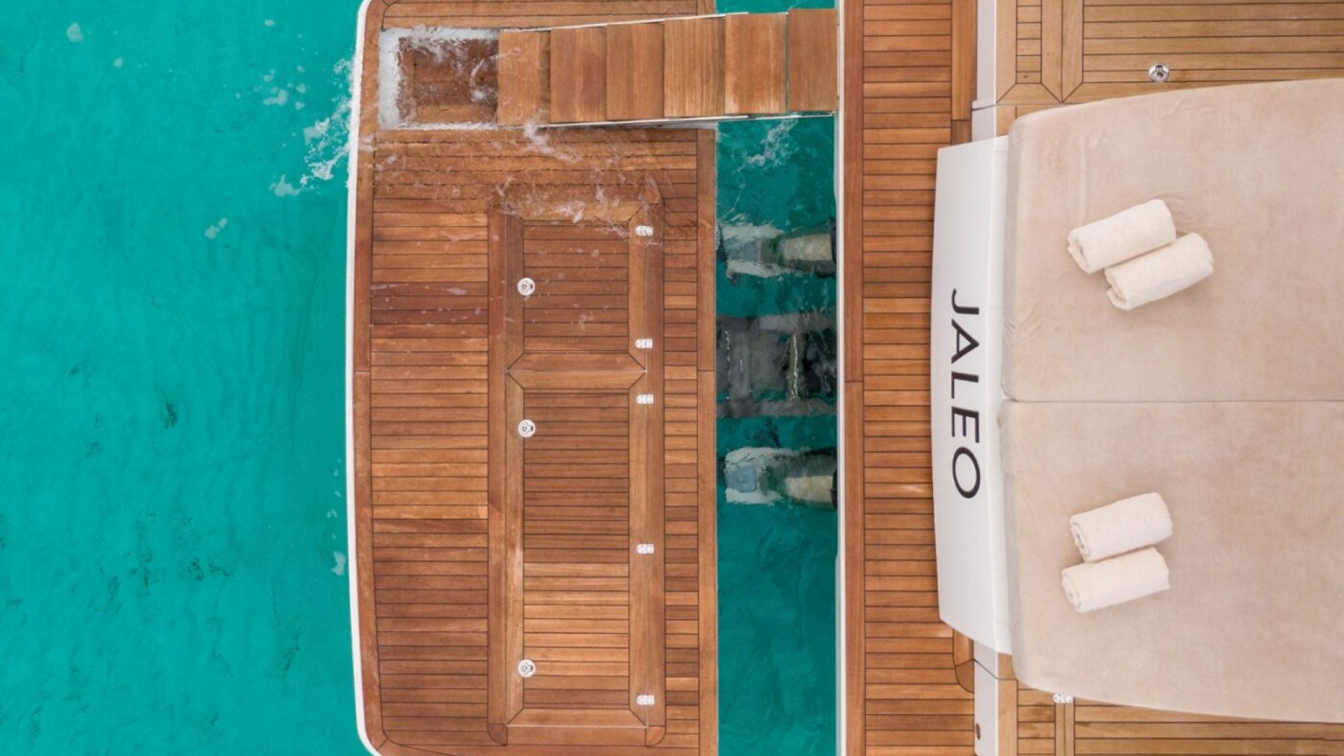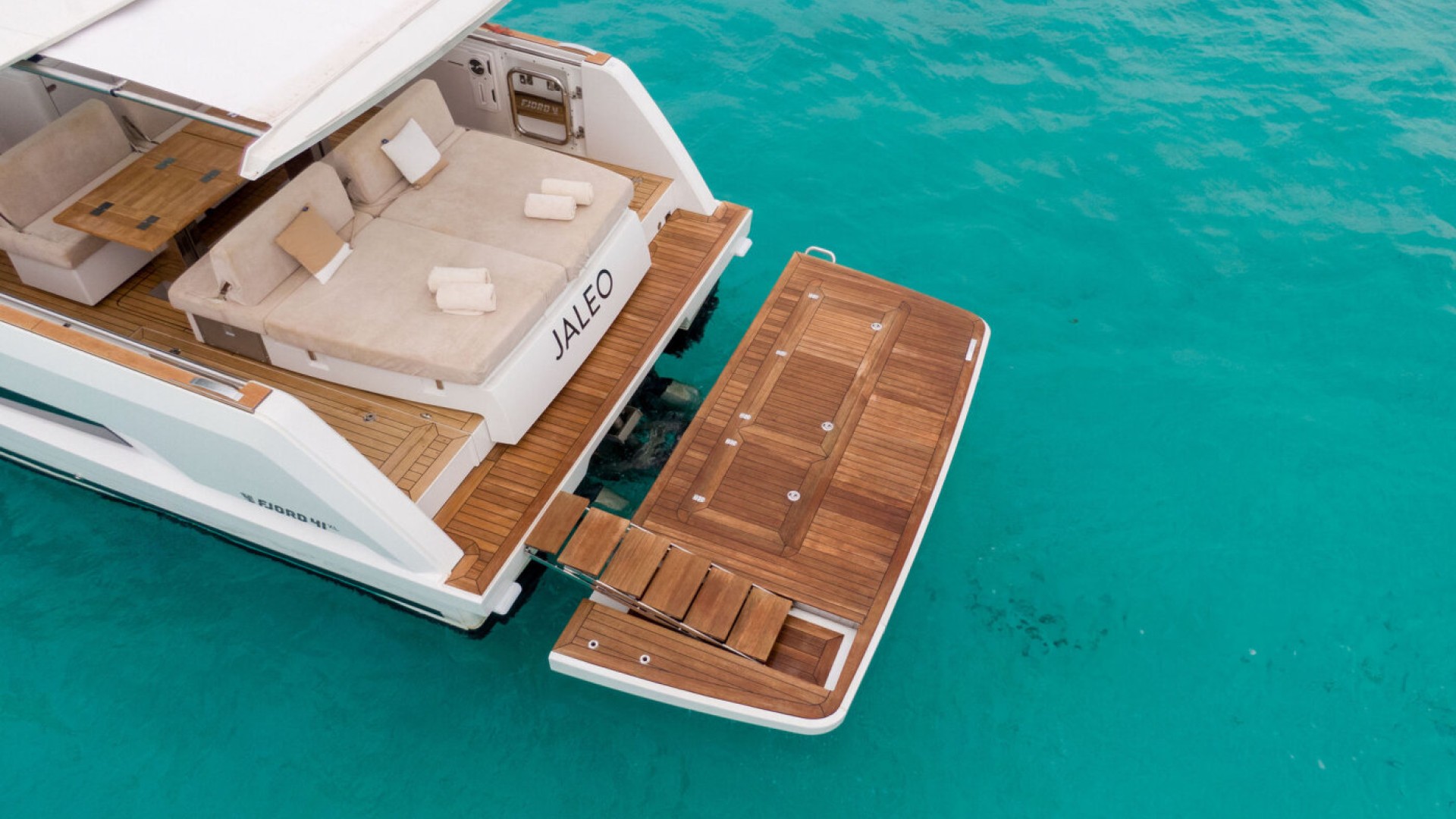 Hydraulic Swim Platform: A masterpiece of engineering that submerges for elegant and effortless water access, transforming the stern into a private beach club.