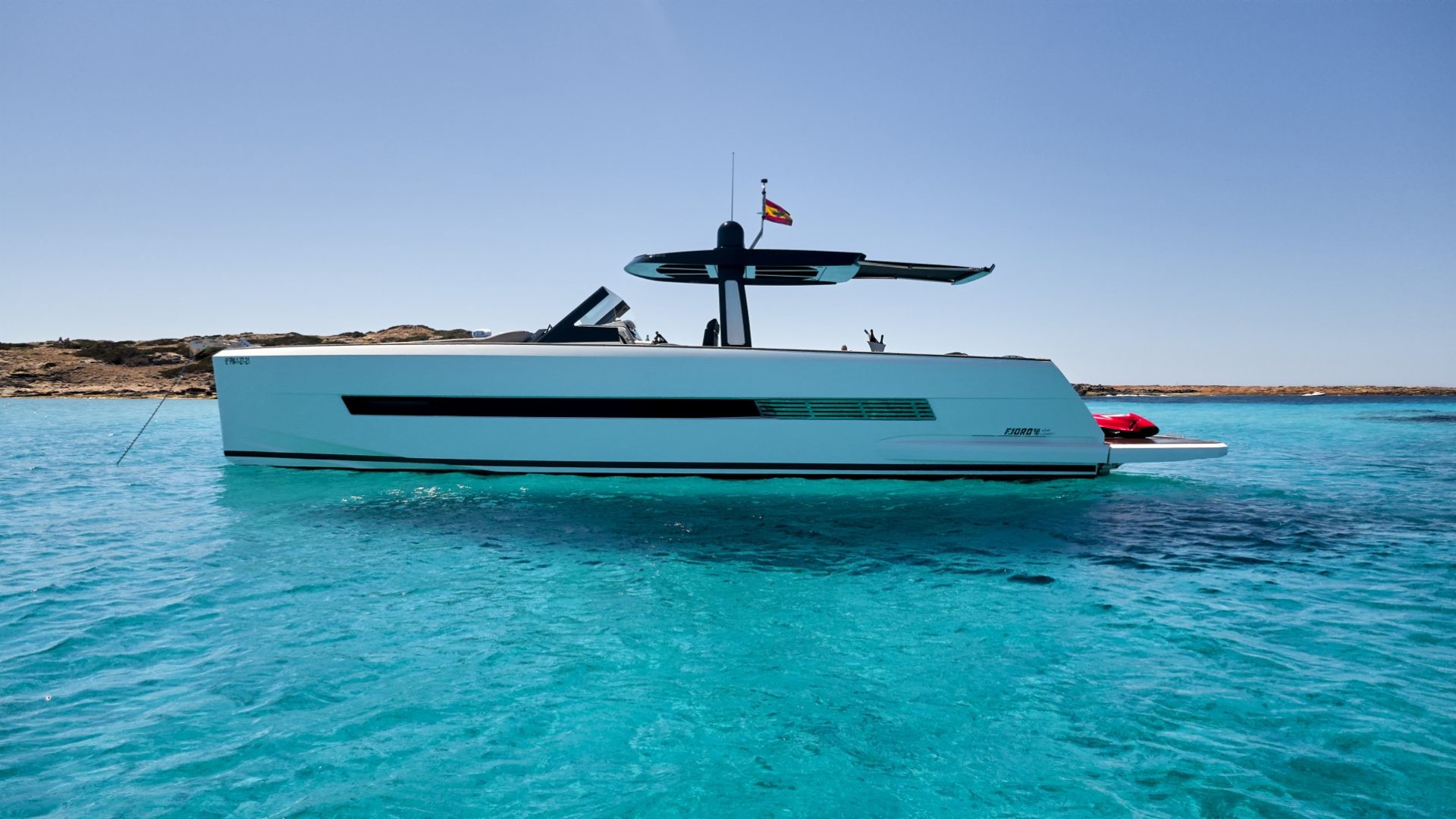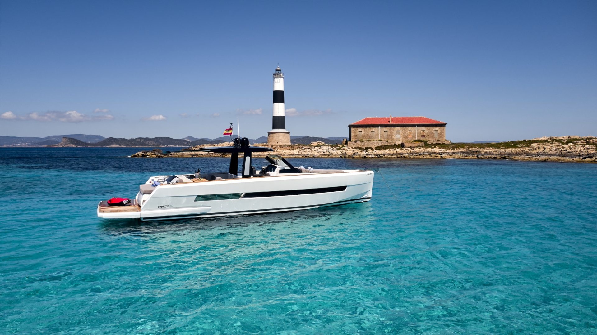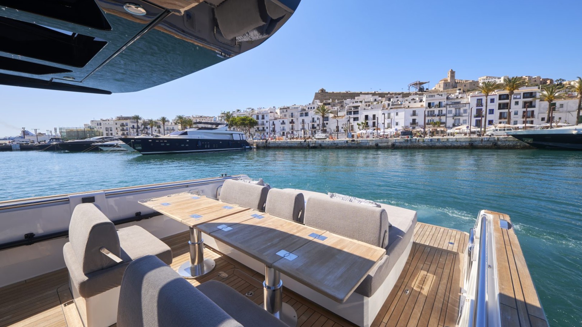 Its unmistakable plumb bow and purist lines do not only offer a minimalist and sophisticated aesthetic; they guarantee exceptionally stable and dry navigation, even in the waters between Ibiza and Formentera. It is the ideal vessel for the client who doesn’t just want to arrive, but wants to stand out.