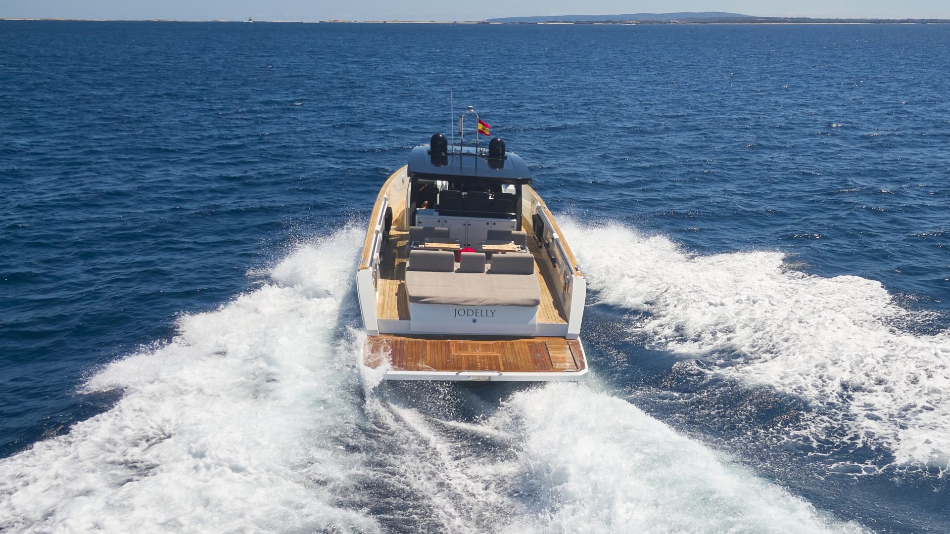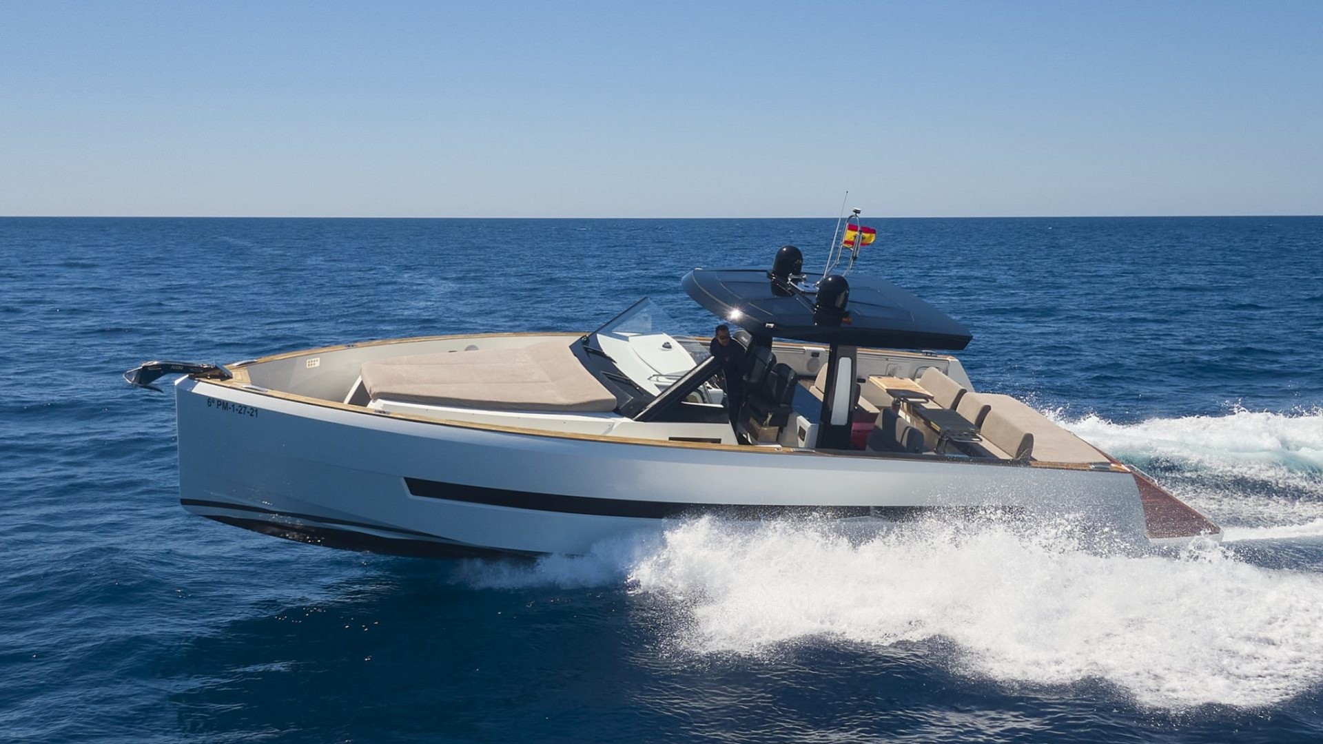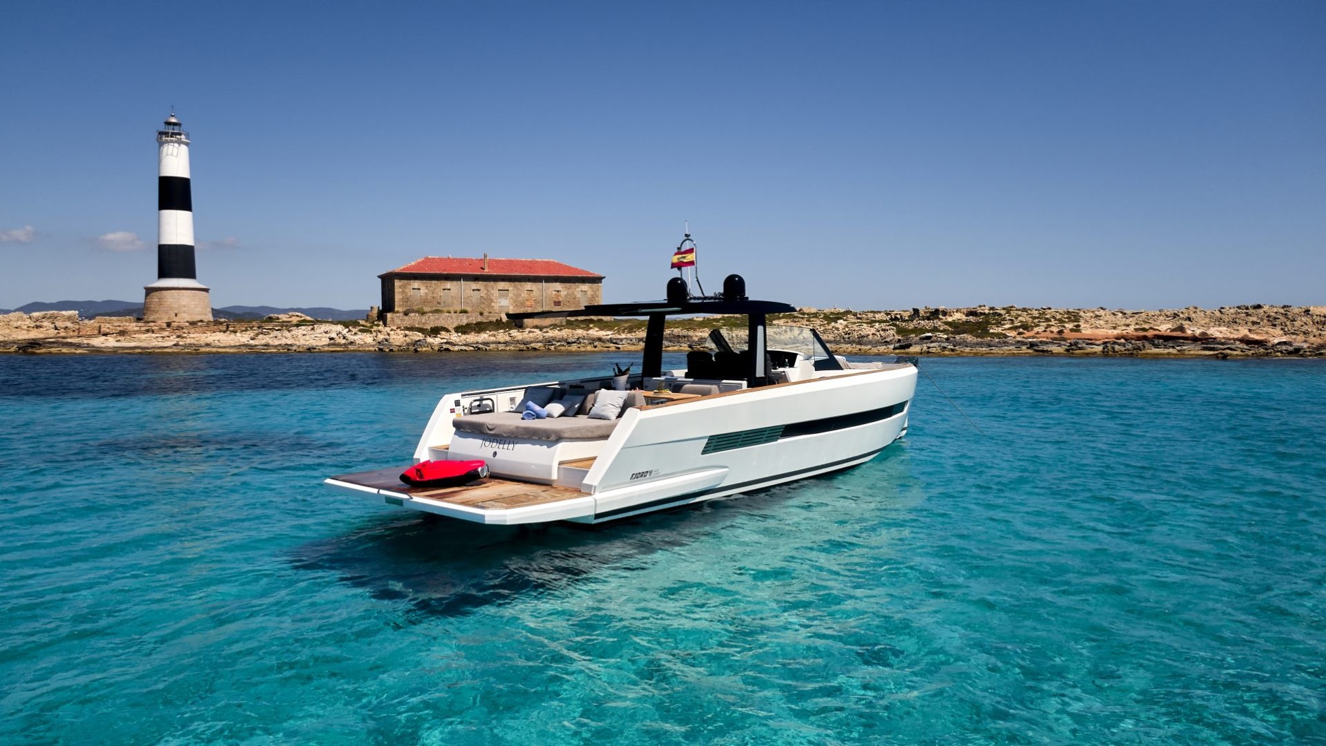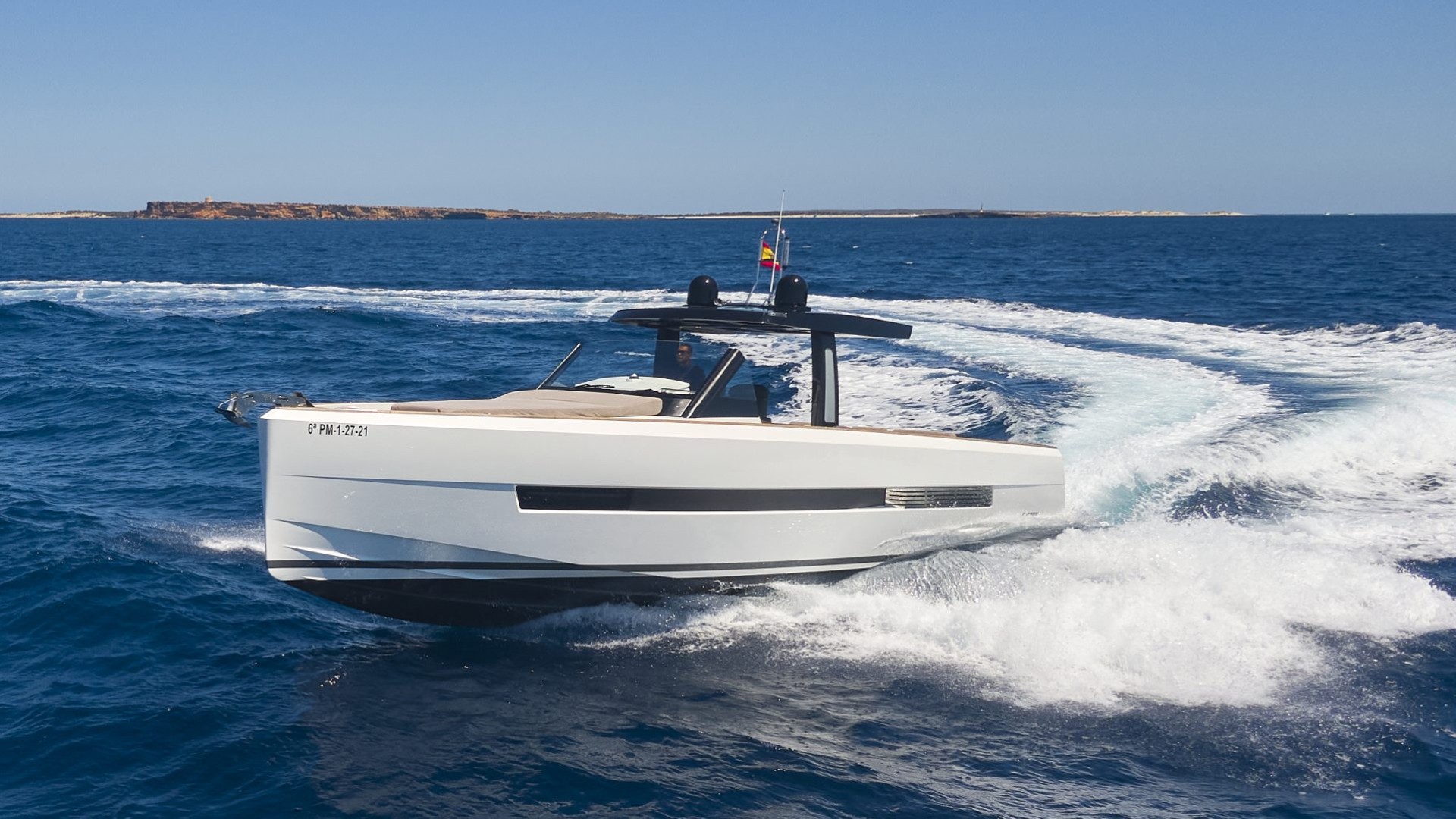 Its unmistakable plumb bow and purist lines do not only offer a minimalist and sophisticated aesthetic; they guarantee exceptionally stable and dry navigation, even in the waters between Ibiza and Formentera. It is the ideal vessel for the client who doesn’t just want to arrive, but wants to stand out.