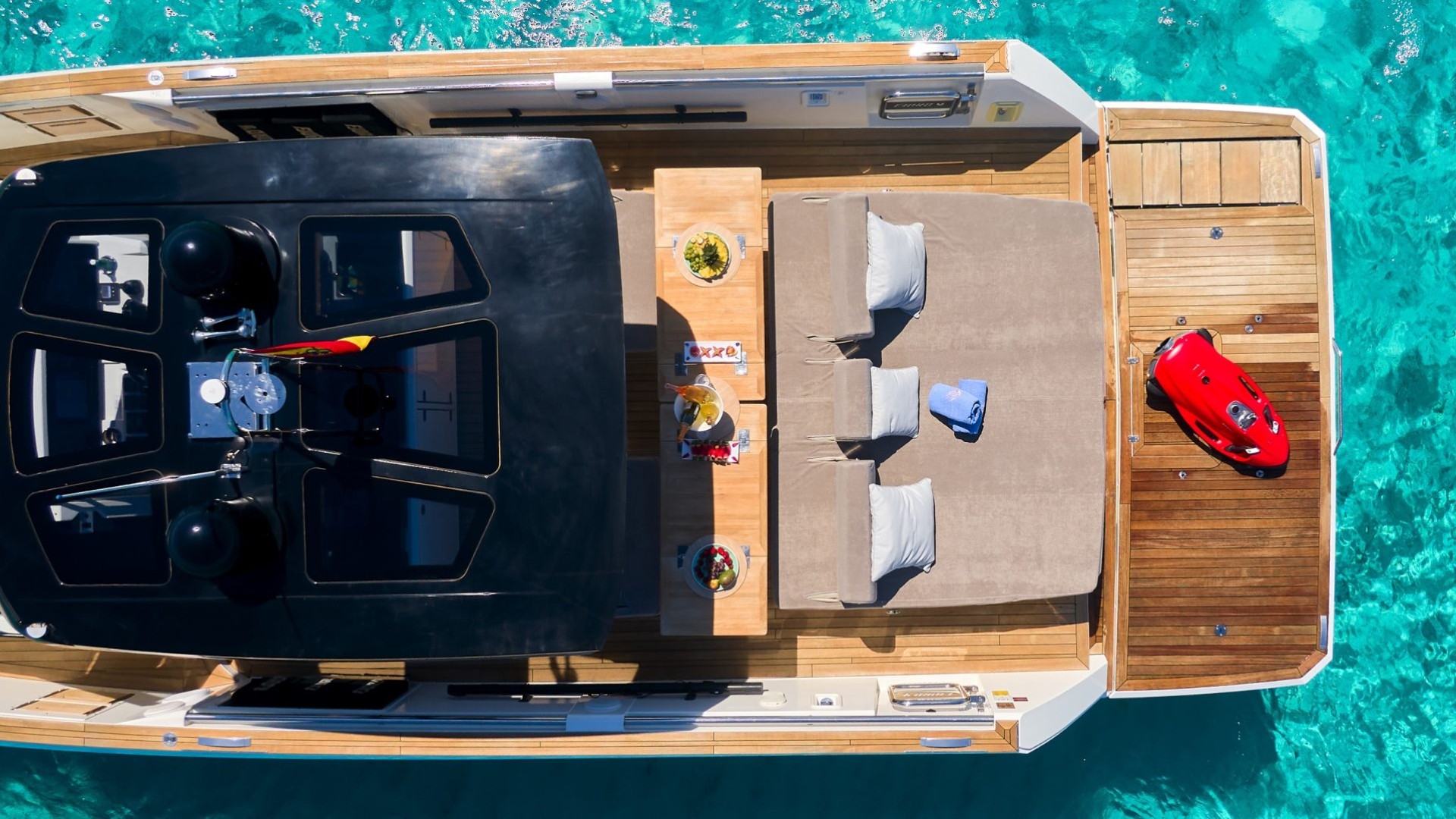 Hydraulic Platform: An indispensable extra for high-end clients; it facilitates water access and allows for the seamless use of water toys like the Seabob.