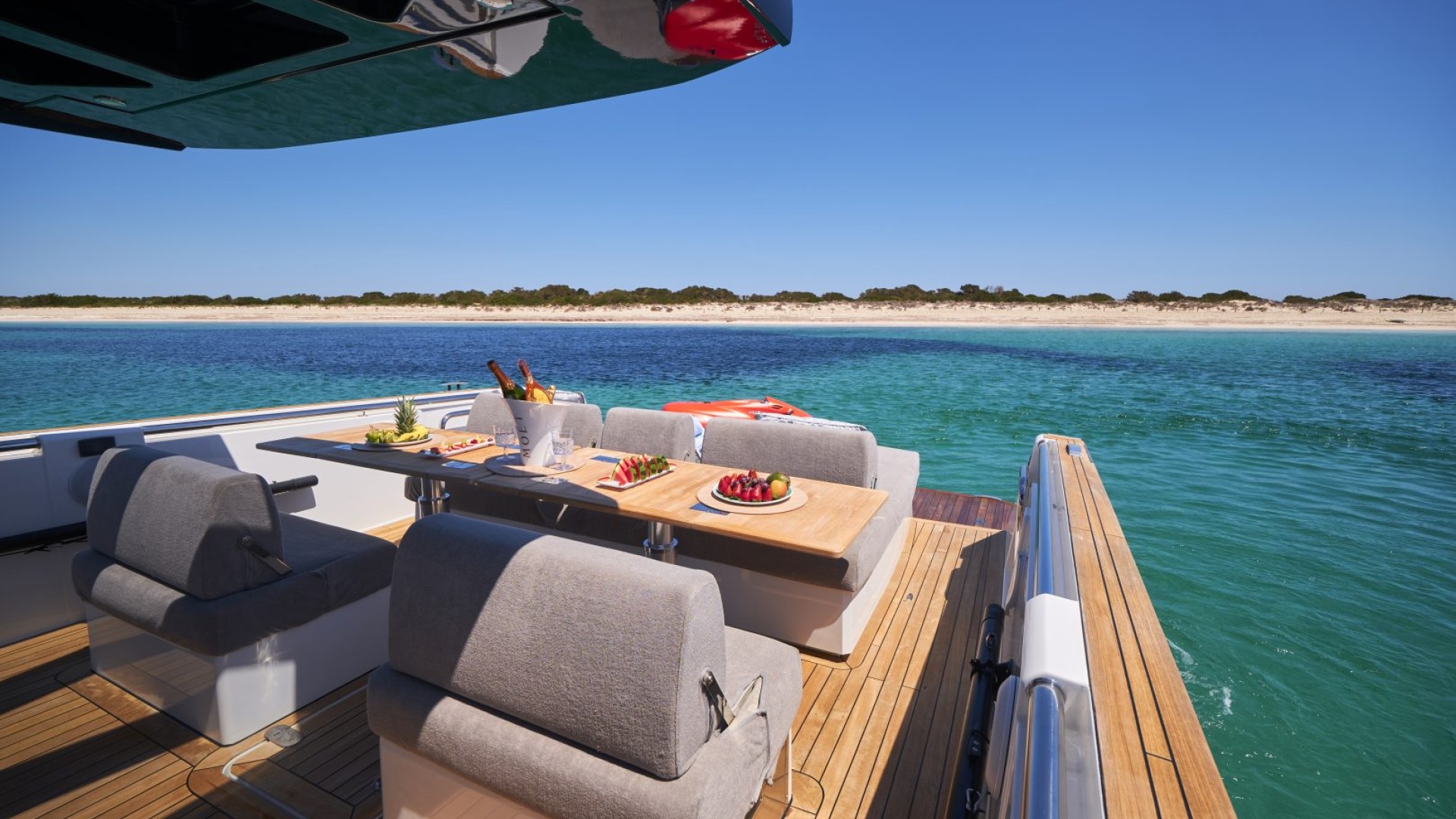 Walk-around Design and Safety: Its flat, single-level deck allows for fluid and safe movement. With high freeboards, it is the preferred choice for families seeking luxury without compromising the safety of the youngest on board.
