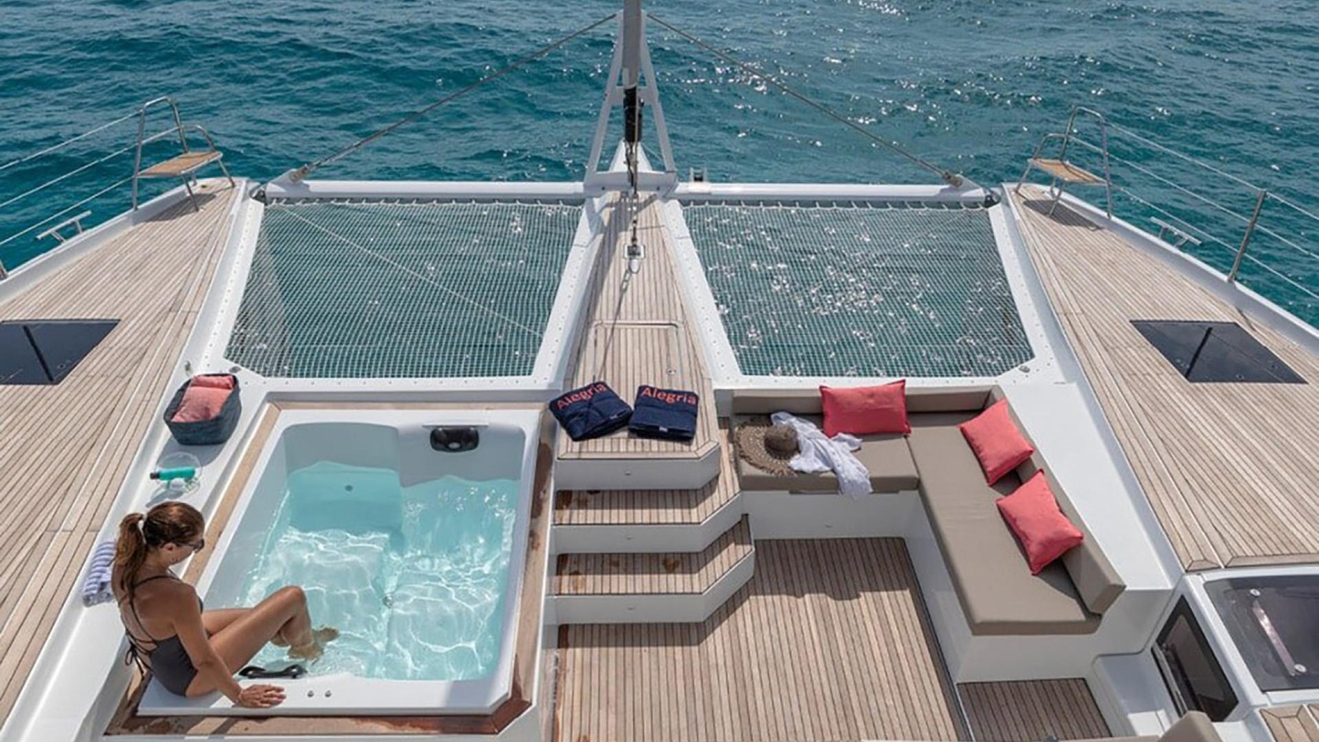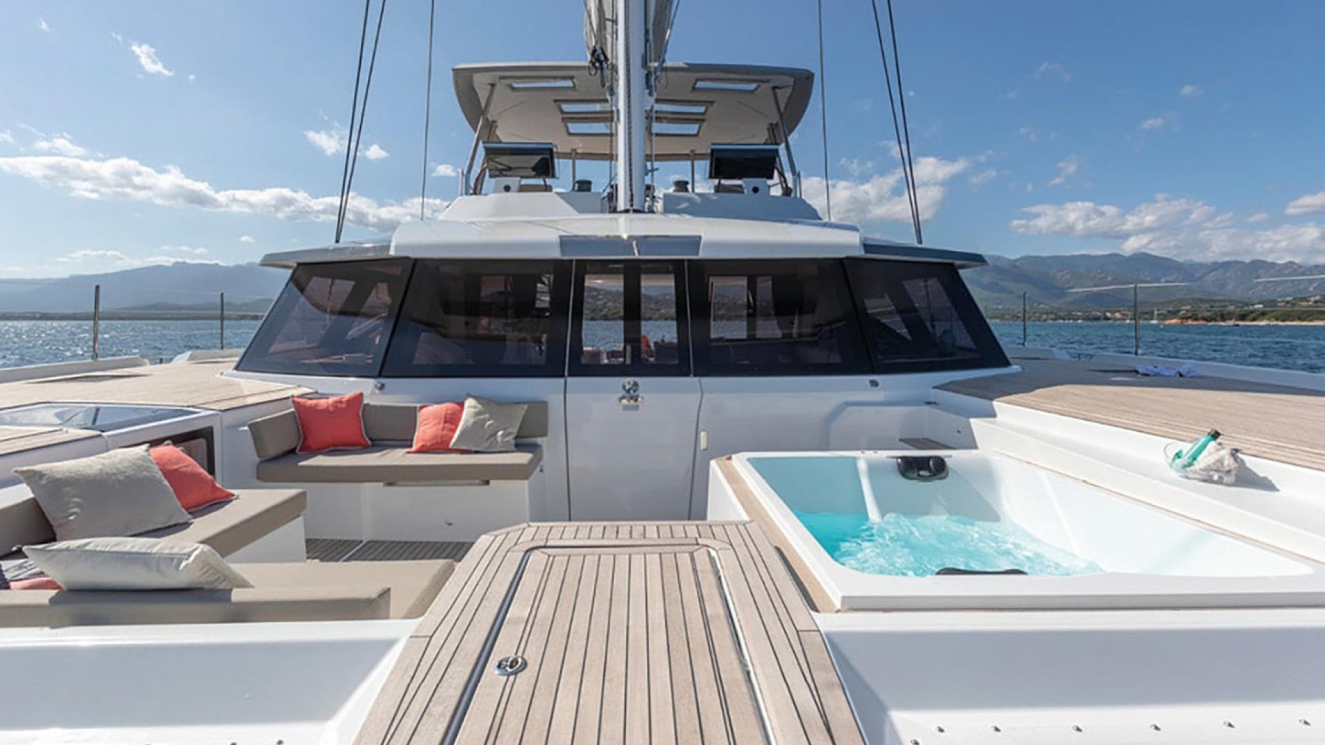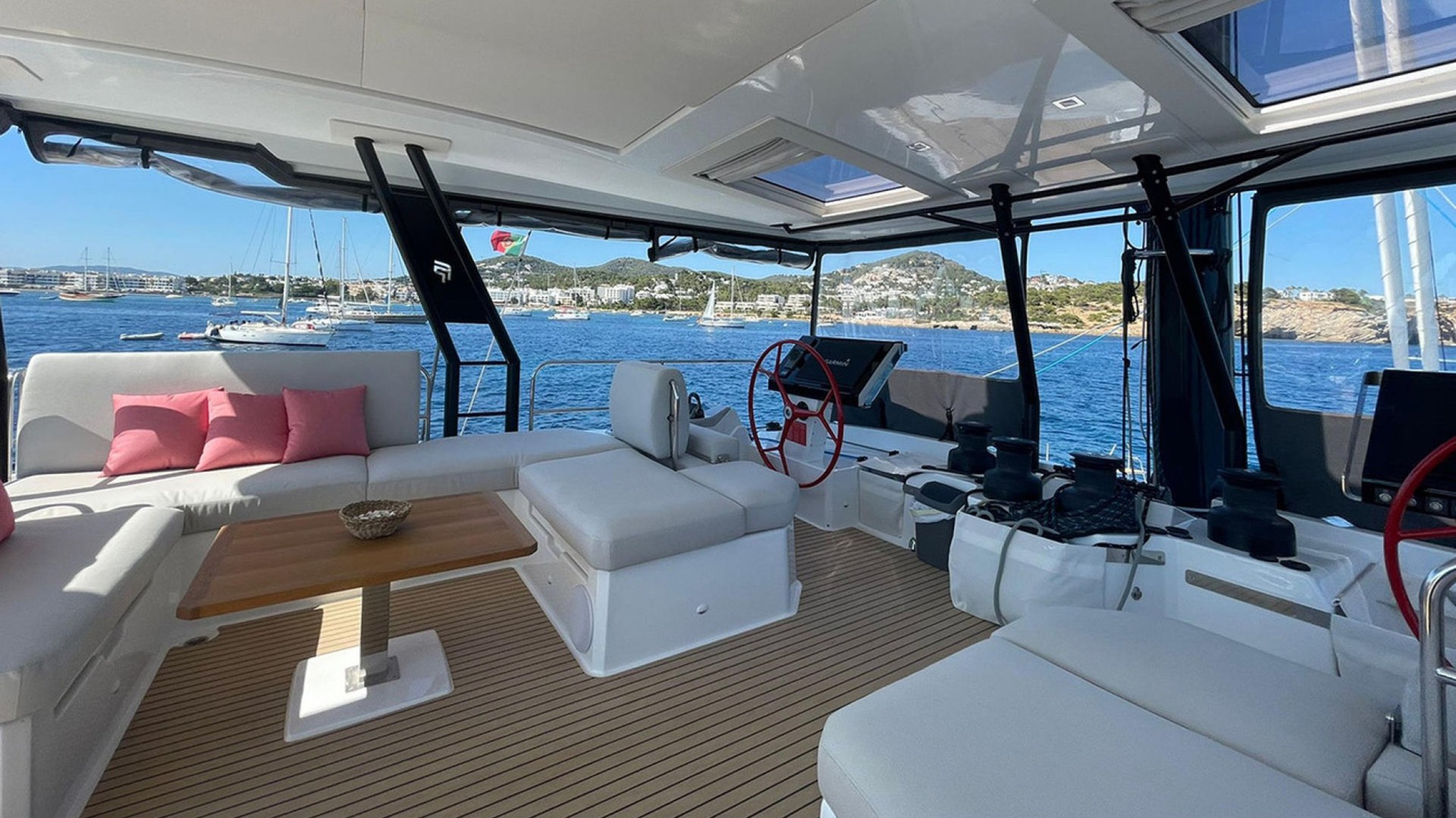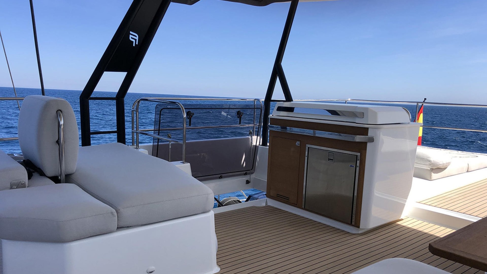 Private Bow Jacuzzi: Its most distinctive feature. Imagine relaxing in the jacuzzi while cruising toward the crystal-clear waters of Formentera or enjoying the sunset in Cala Saona.
