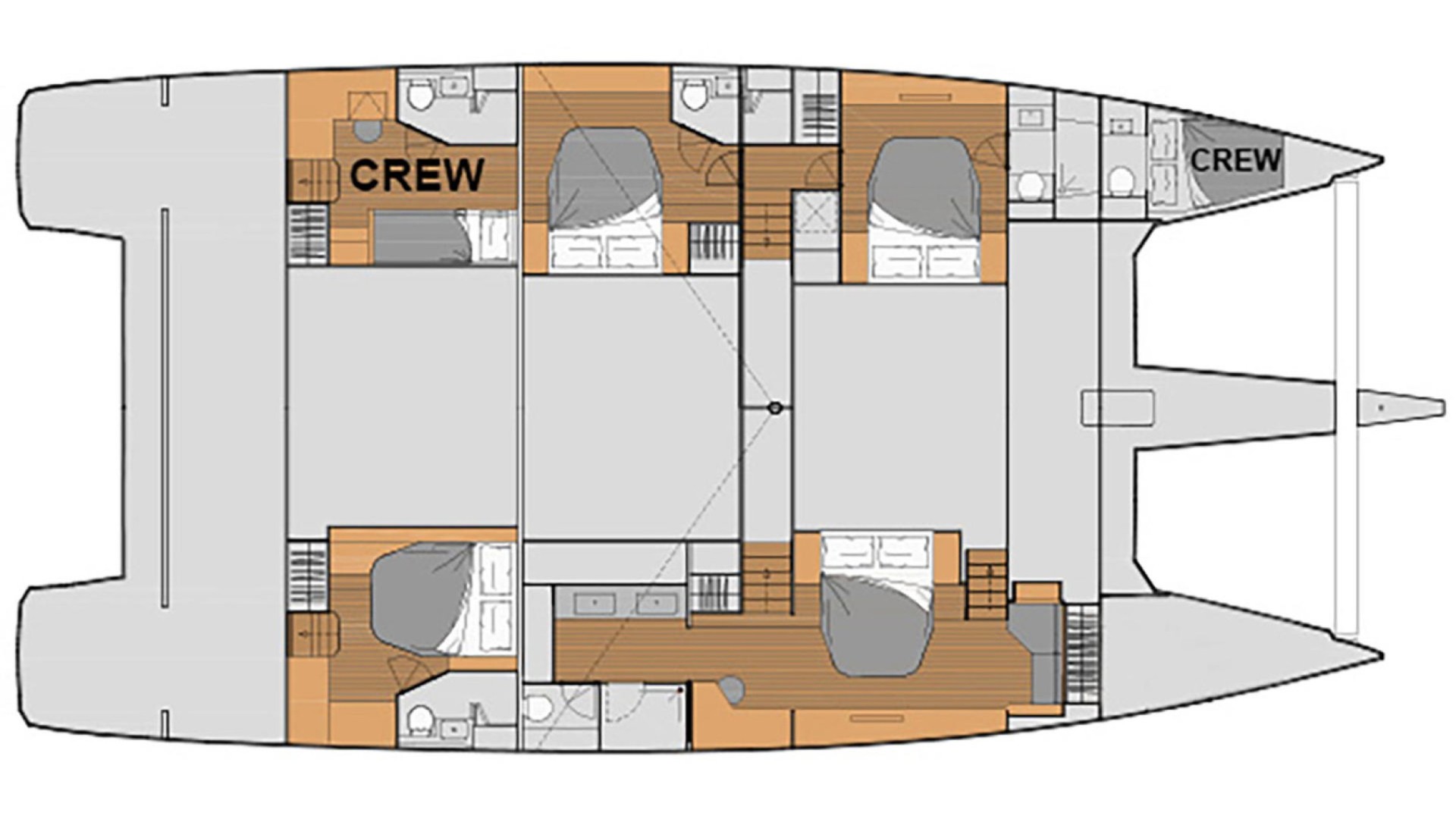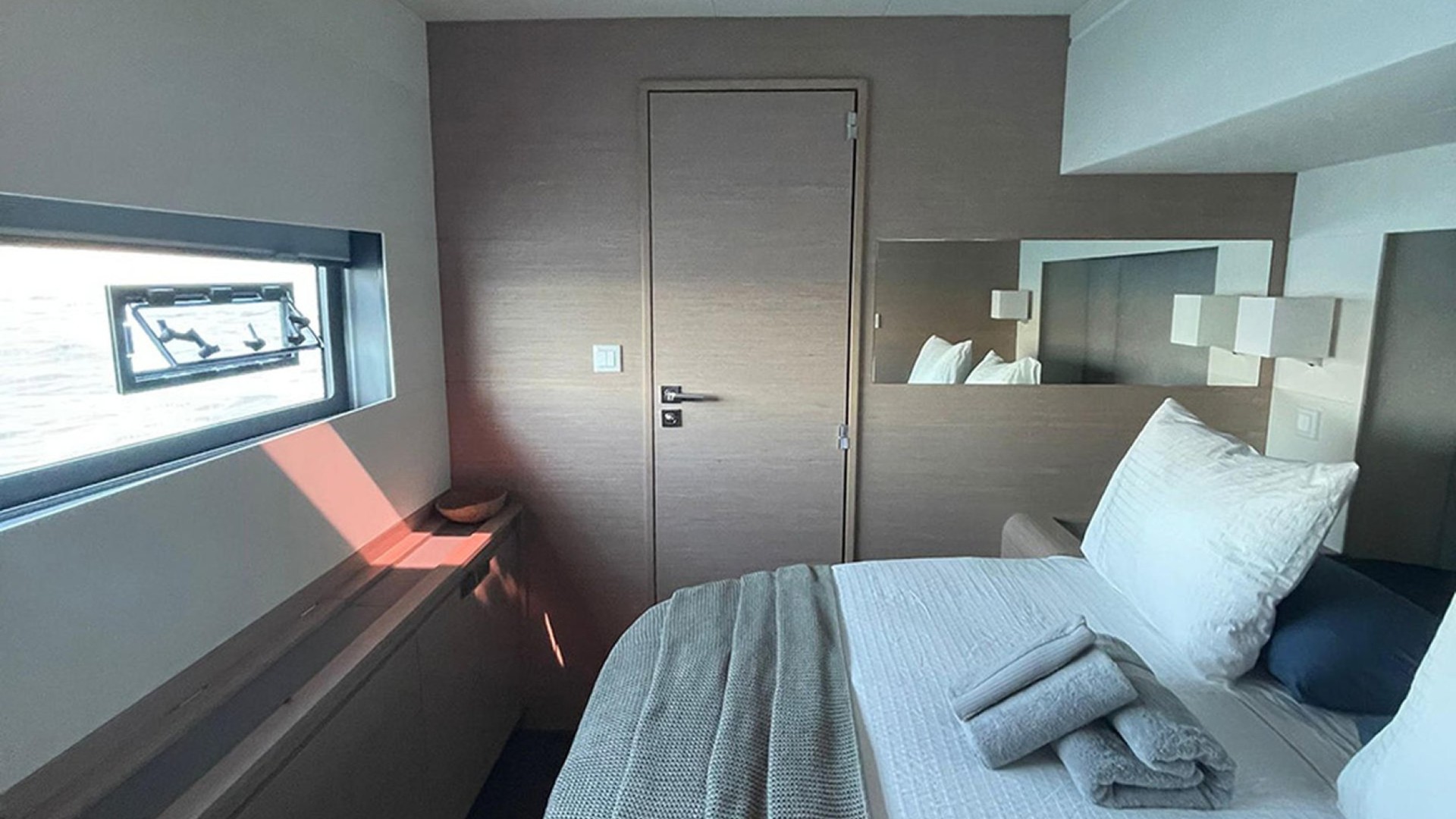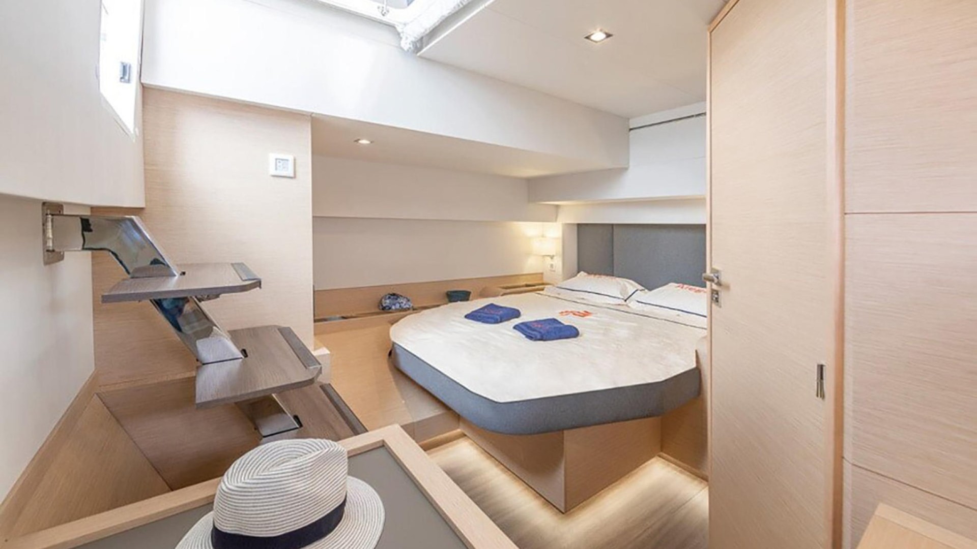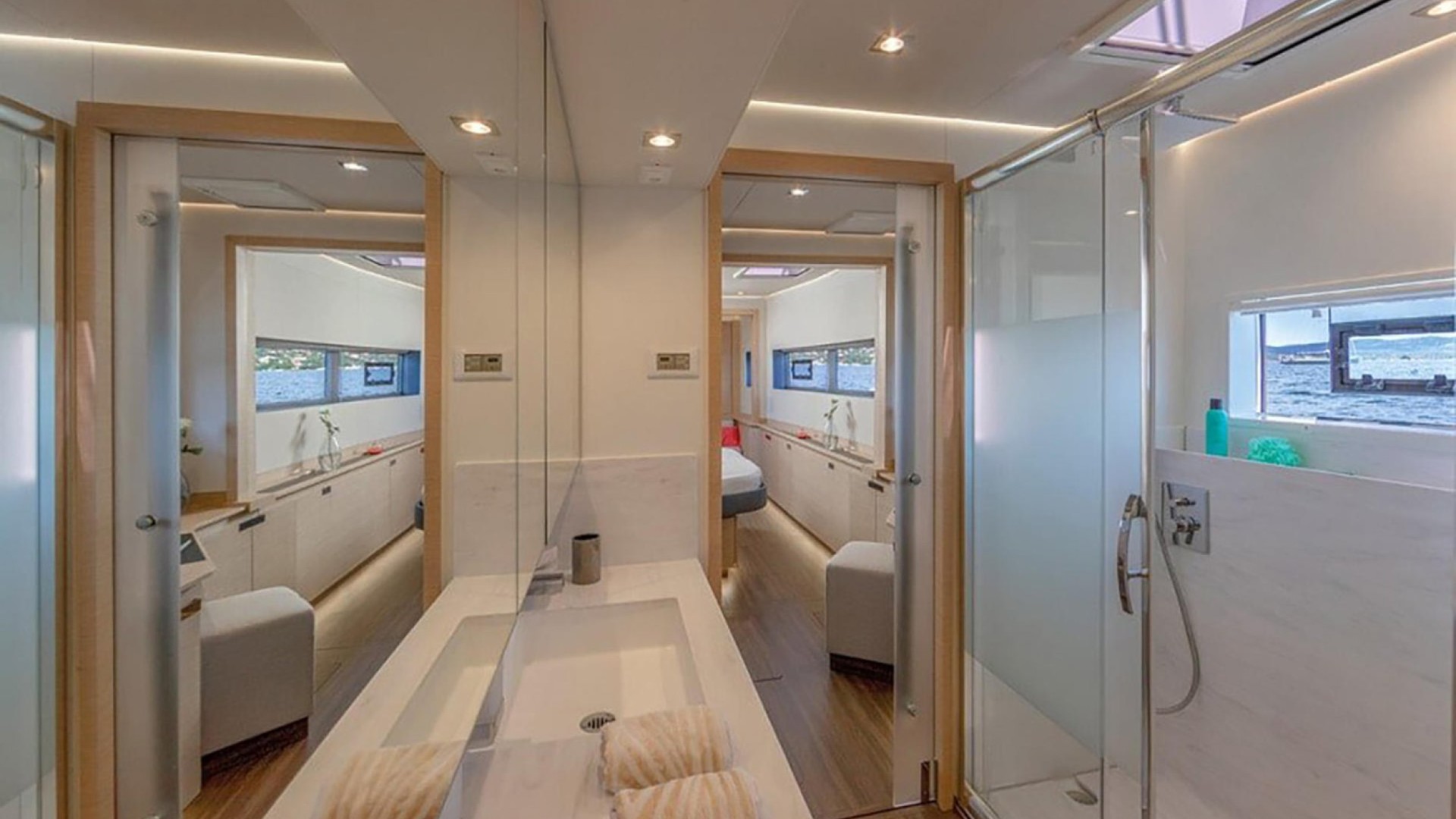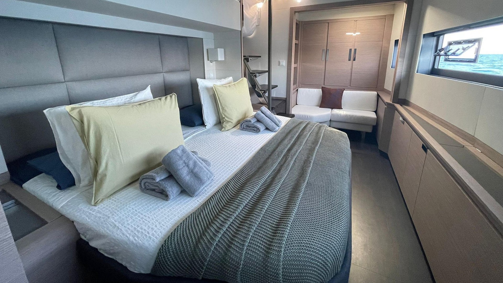 Master Suite and En-Suite Comfort: Accommodates up to 8 guests in 4 refined double cabins, all featuring private heads, individual A/C, and high-end finishes.