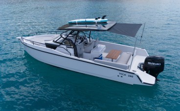 Pure Power and Agility: Equipped with a Suzuki/Mercury outboard engine of up to 350 hp, this boat reaches speeds of up to 45 knots. Its technical hull minimizes drag, offering a smooth and dry ride even at high speeds.