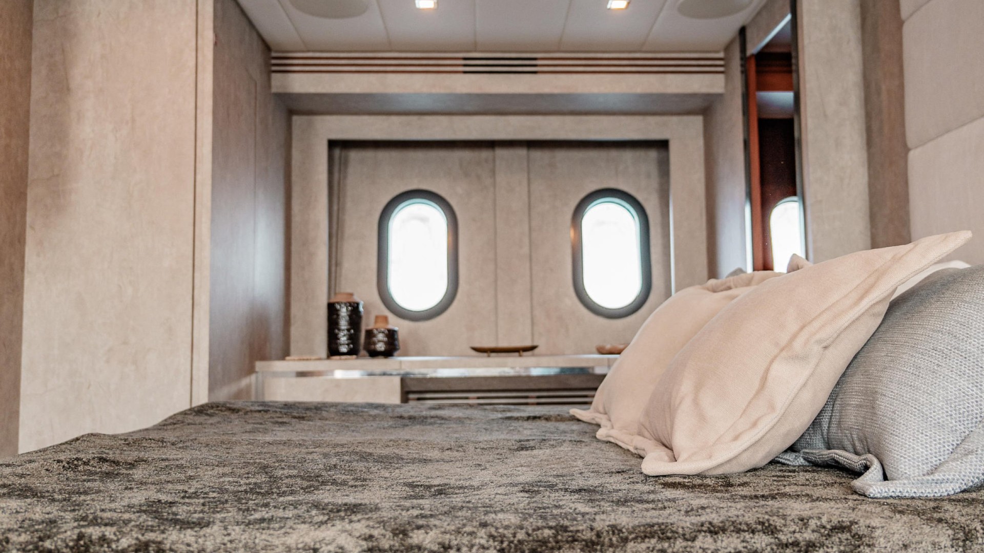 The Leopard 102 “La Romana” is an Italian superyacht that embodies the timeless elegance of the Leopard range, offering a cruising experience where space and power merge in natural harmony.With a length overall (LOA) of 31 meters, this vessel stands out for its fluid exterior lines and a sporty profile that conceals a surprisingly voluminous interior. Unlike other yachts in its class that pursue extreme visual aggression, “La Romana” leans towards a more serene sophistication, featuring vast open decks that serve as true private terraces over the sea.Designed for social enjoyment, she is capable of reaching an impressive top speed of 36 knots thanks to her powerful engines and waterjet propulsion system. This allows her to combine the speed of a performance boat with the stability and luxury of a floating mansion, making her one of the most balanced options for those seeking exclusivity and pace on Mediterranean passages.