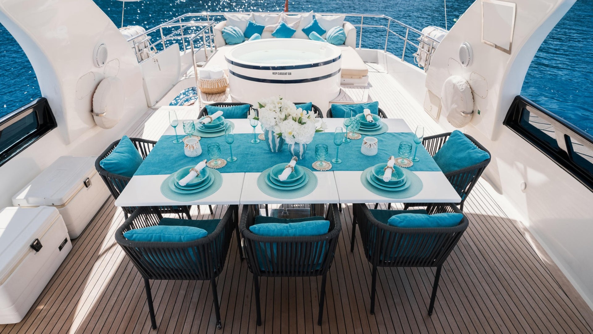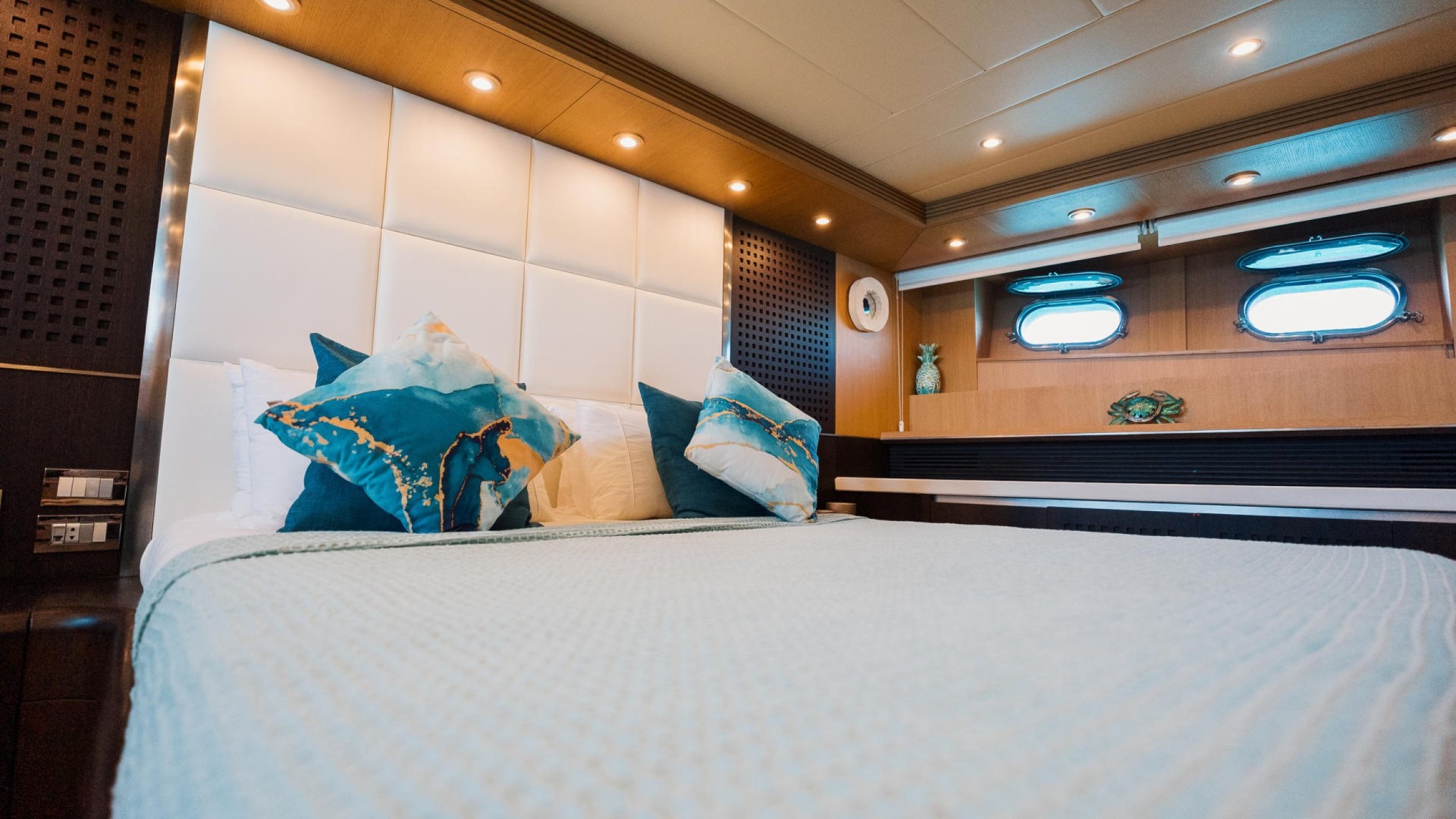 Elite Service: A professional crew of 3 (Captain, deckhand, and stewardess) exclusively dedicated to ensuring your only concern is deciding which cove to visit next.