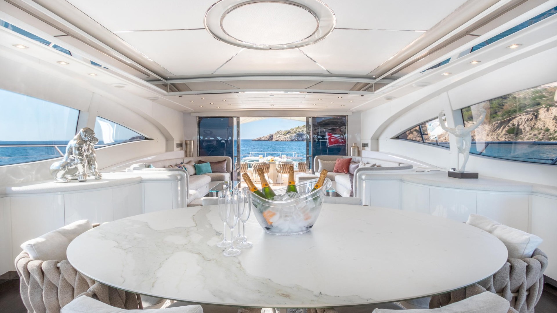 The Mangusta 108 Belisa is the absolute definition of majestic power and Mediterranean glamour, establishing itself as one of the most iconic high-performance yachts cruising the waters of Ibiza. Her greatest strength lies in a high-displacement hull design coupled with waterjet propulsion, allowing her to reach blistering speeds with a ride quality that defies her imposing LOA (Length Overall), offering a thrilling yet precise navigation. This unit stands out for her aggressive, streamlined silhouette—a symbol of unapologetic luxury—where her expansive deck areas feature endless sunpads designed to soak up the Balearic sun.Inside, Belisa is a sanctuary of exclusivity and space. The main saloon integrates seamlessly with the exterior thanks to her retractable hardtop, allowing for dining under the stars or enjoying the sea breeze at the touch of a button. Her luxurious staterooms are crafted with the attention to detail of a floating palace, utilizing premium materials to ensure absolute guest comfort. She is the ultimate vessel for those seeking a commanding presence at sea, blending the adrenaline of a performance sportboat with the volume and service of a world-class superyacht, ideal for exploring the coasts of Ibiza and Formentera with unmatched distinction.