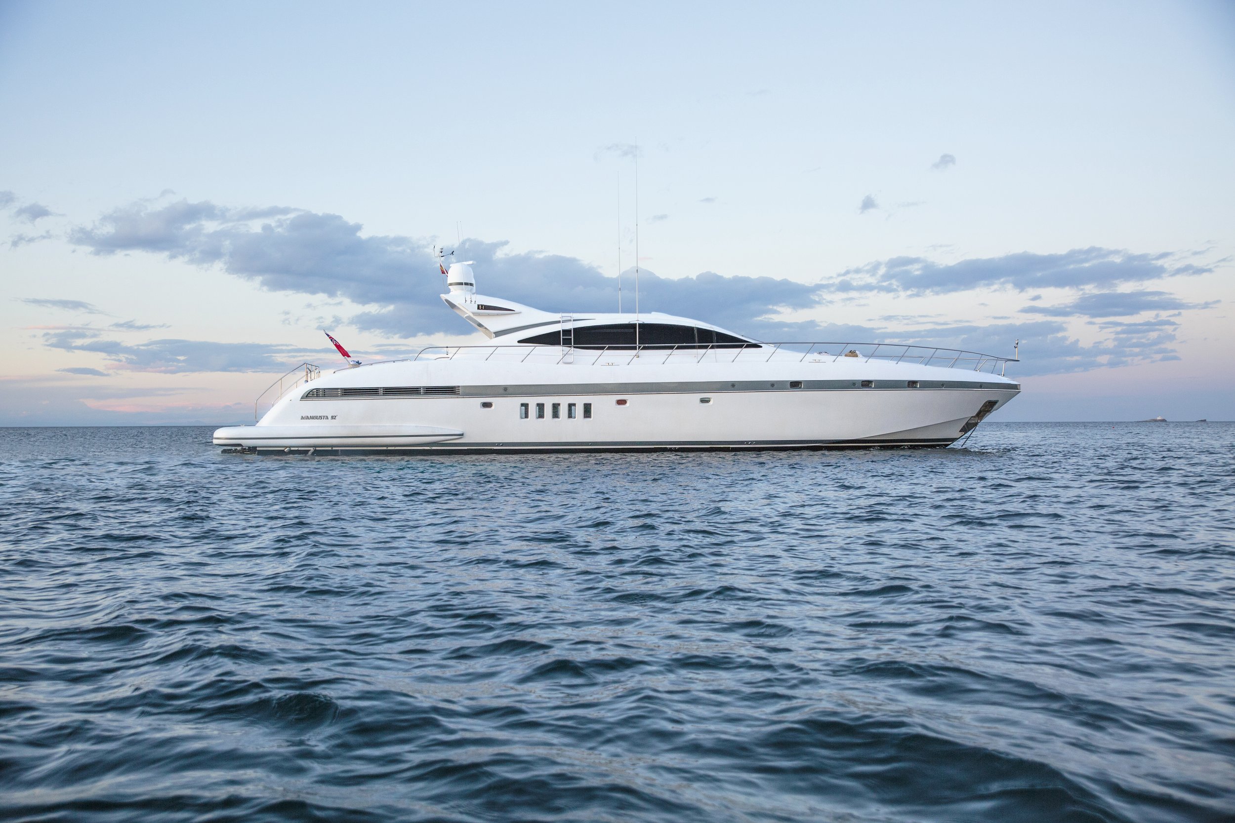The Mangusta 92 is an Italian yacht that represents the perfect balance between the power of a sports craft and the sophistication of a floating luxury villa. Its design moves away from the look of traditional pleasure craft to offer a much more aggressive, low-profile, and aerodynamic aesthetic, specifically conceived for those who enjoy speed and an exhilarating cruising experience.This model stands out for its expansive open decks, which invite a seamless social life between the interior and exterior, allowing guests to enjoy the marine environment with a sense of absolute freedom. It is a vessel designed to stand out in any marina worldwide, offering an agile and exclusive navigation experience that has made it an iconic benchmark within the large “open” style yacht segment.