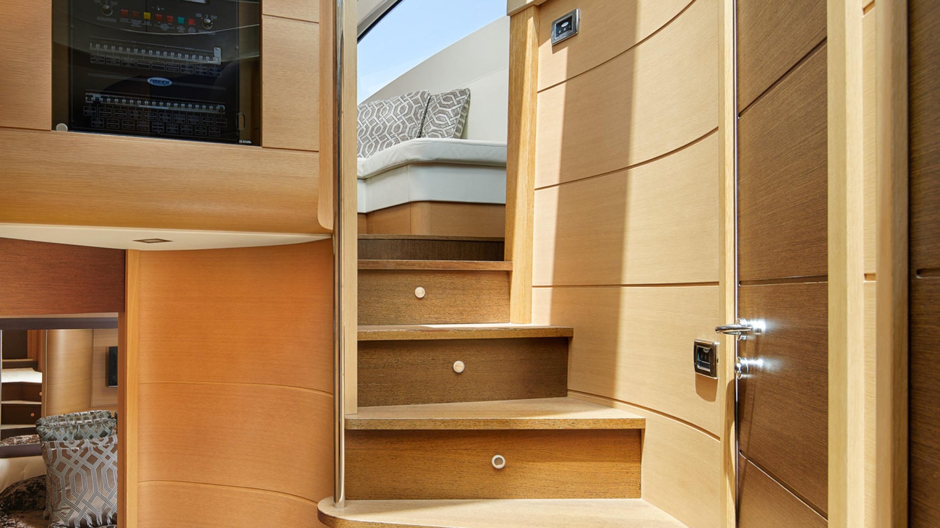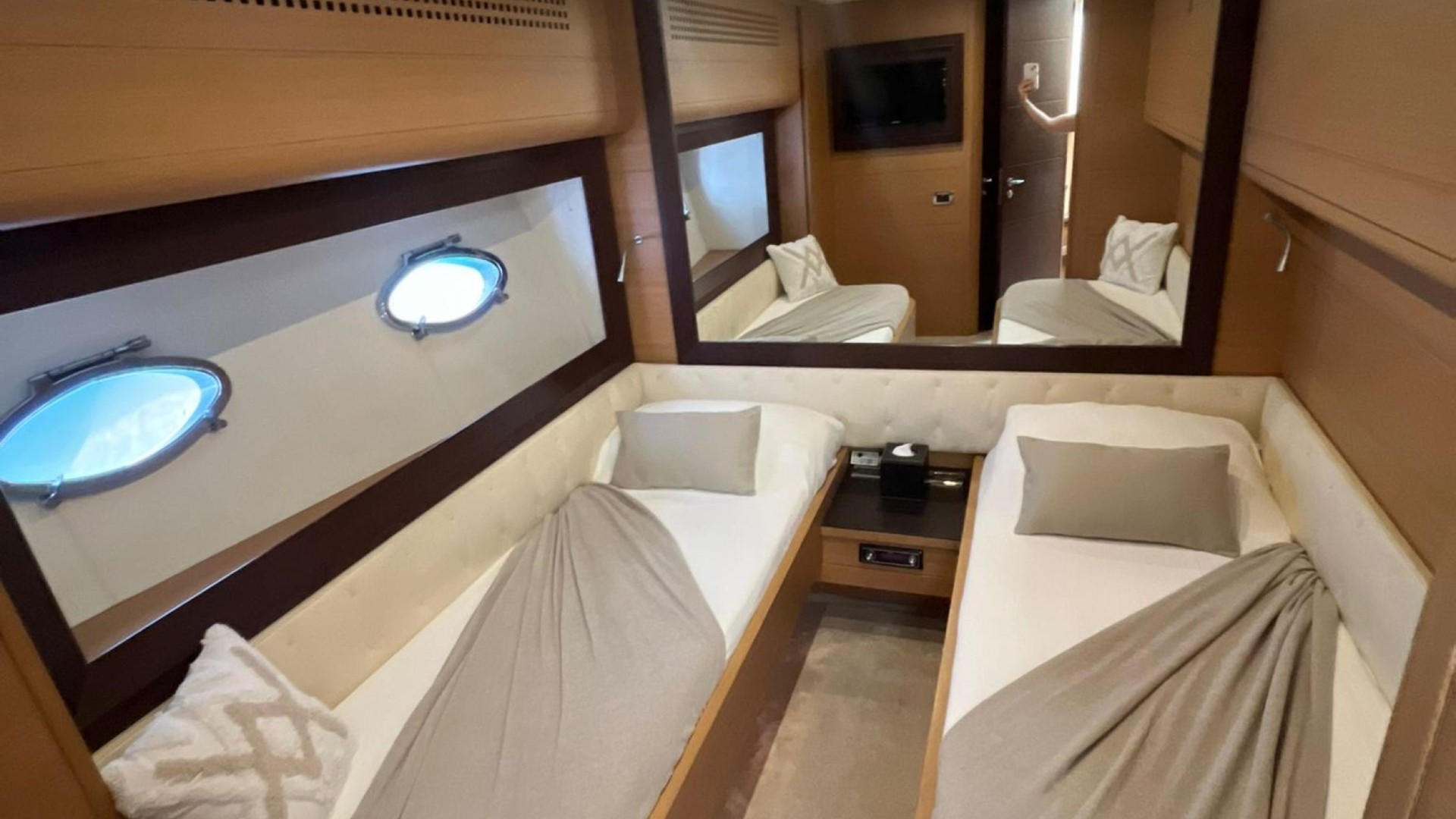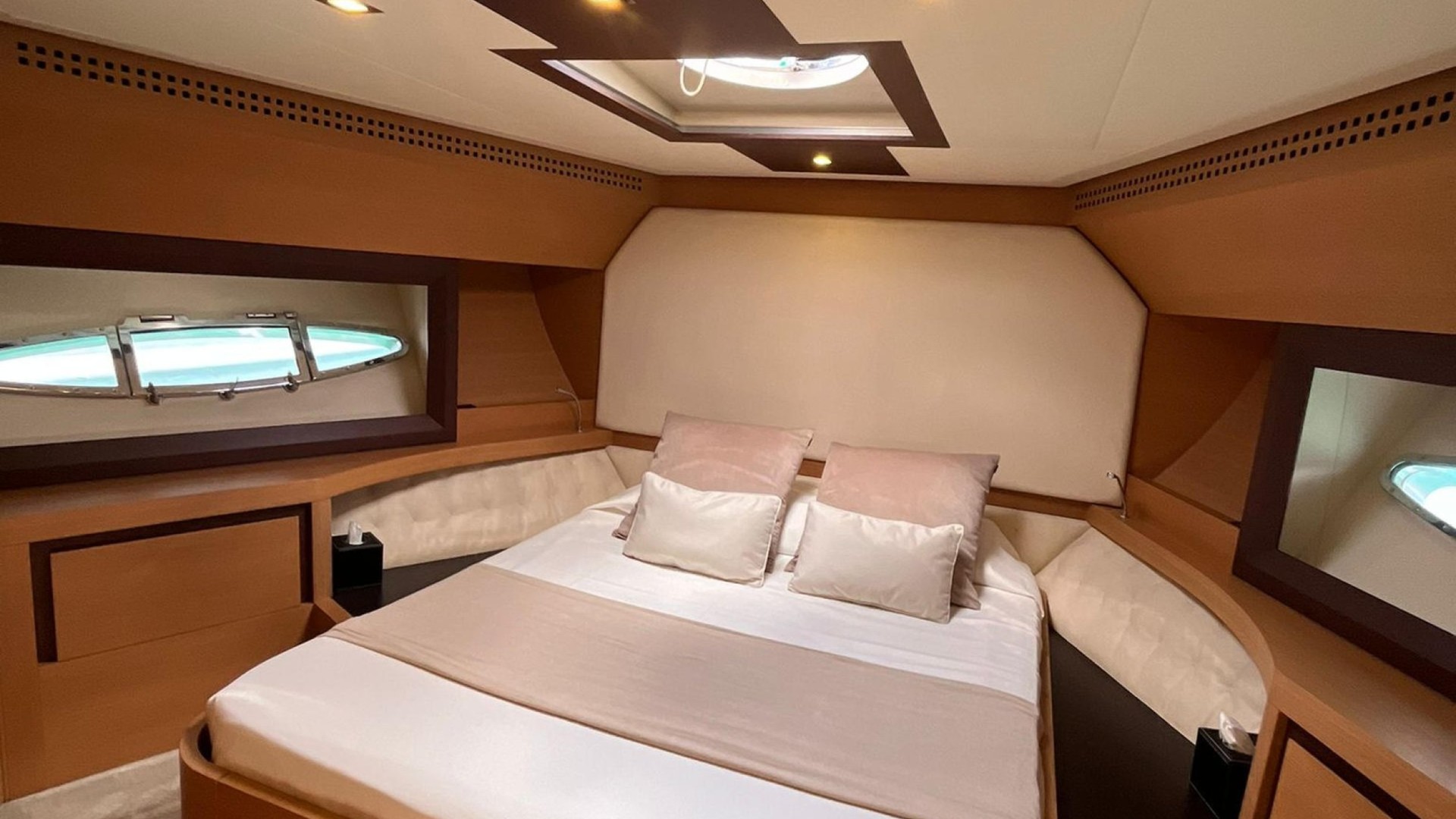 Designer Interiors: The salon stands out for its brightness and finishes in noble woods and leather. She features 3 luxury cabins with en-suite bathrooms (including a full-beam master suite), offering a peaceful sanctuary for up to 7 overnight guests.