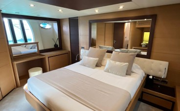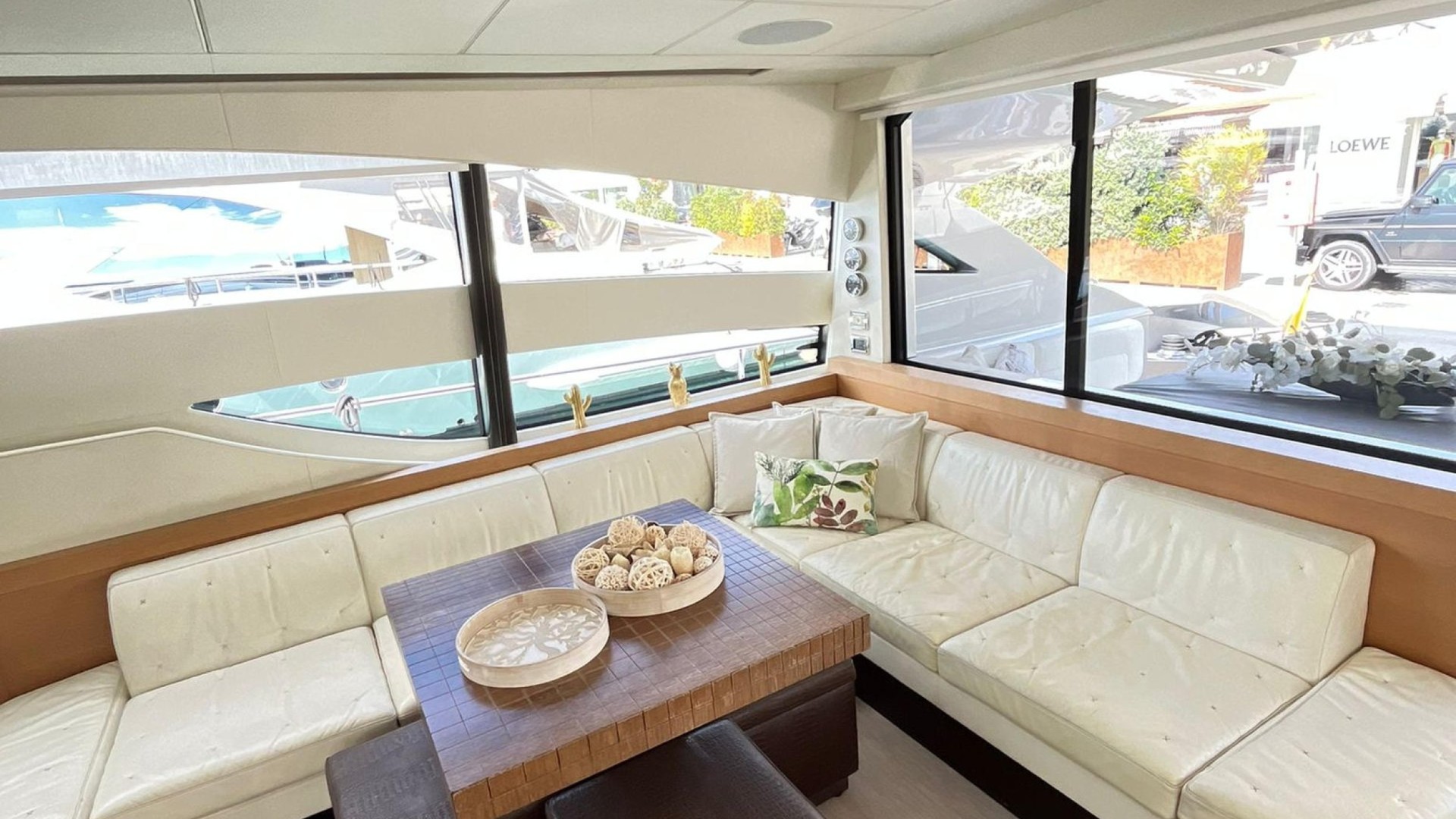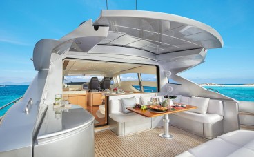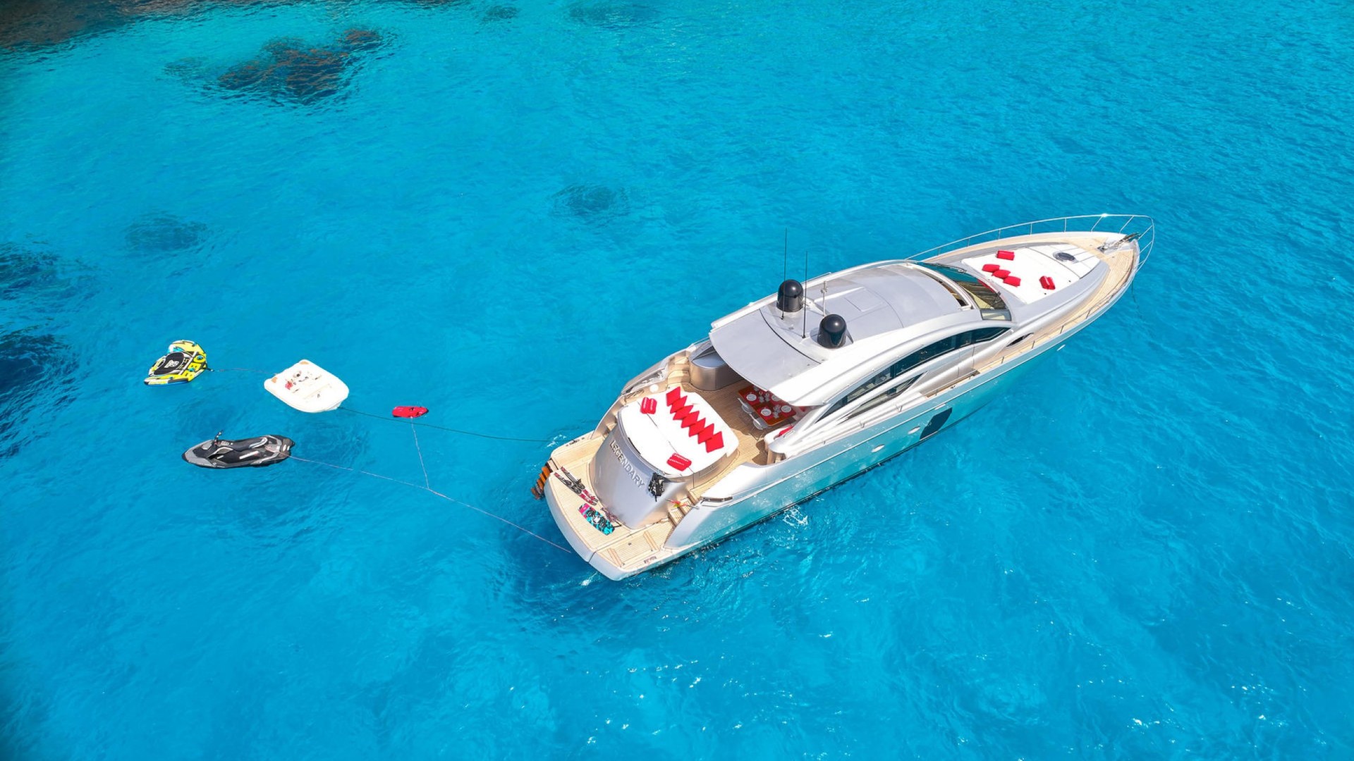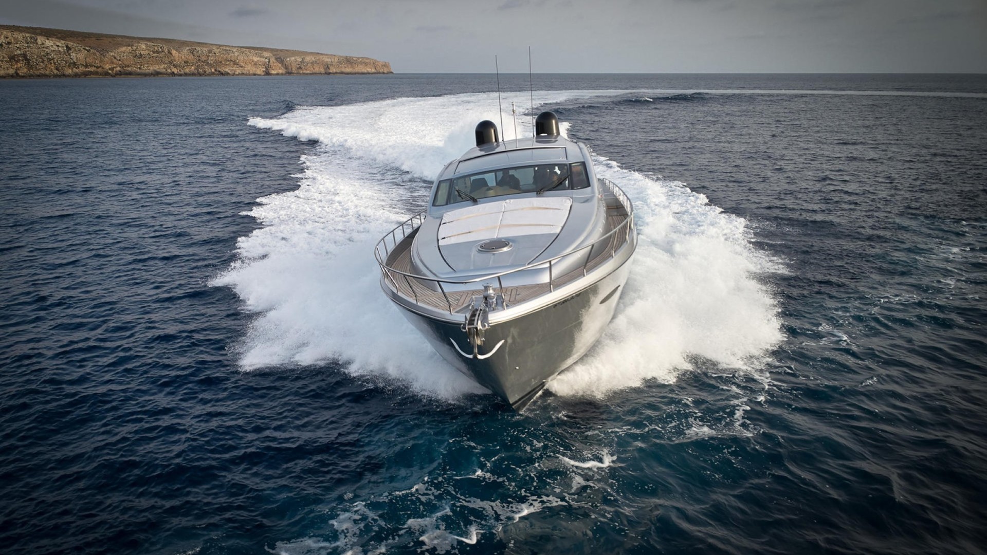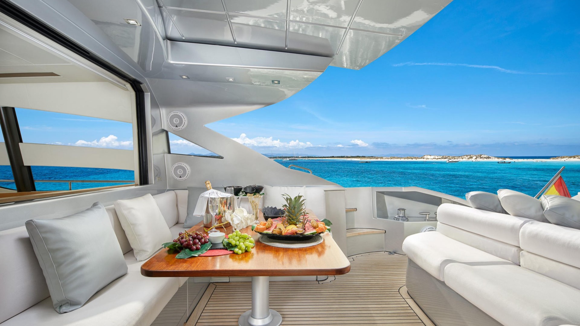 With 22 meters of Italian engineering and an aerodynamic silhouette that cuts through the wind, she is the preferred choice for those wishing to explore the coves of Ibiza and Formentera with incomparable speed and style. Her intelligent design allows the salon and the aft cockpit to merge into a single open-plan space, eliminating the barriers between you and the sea.