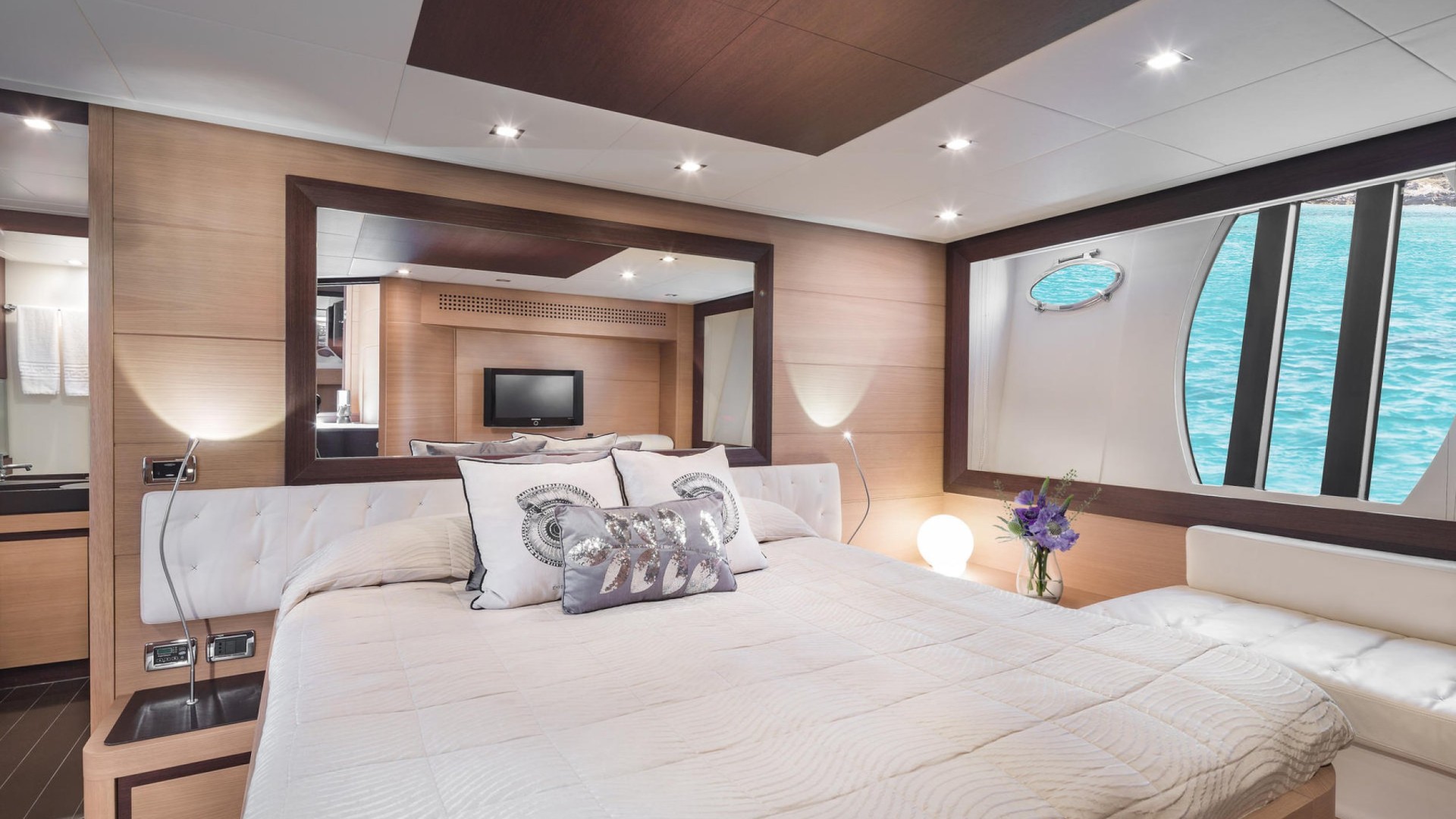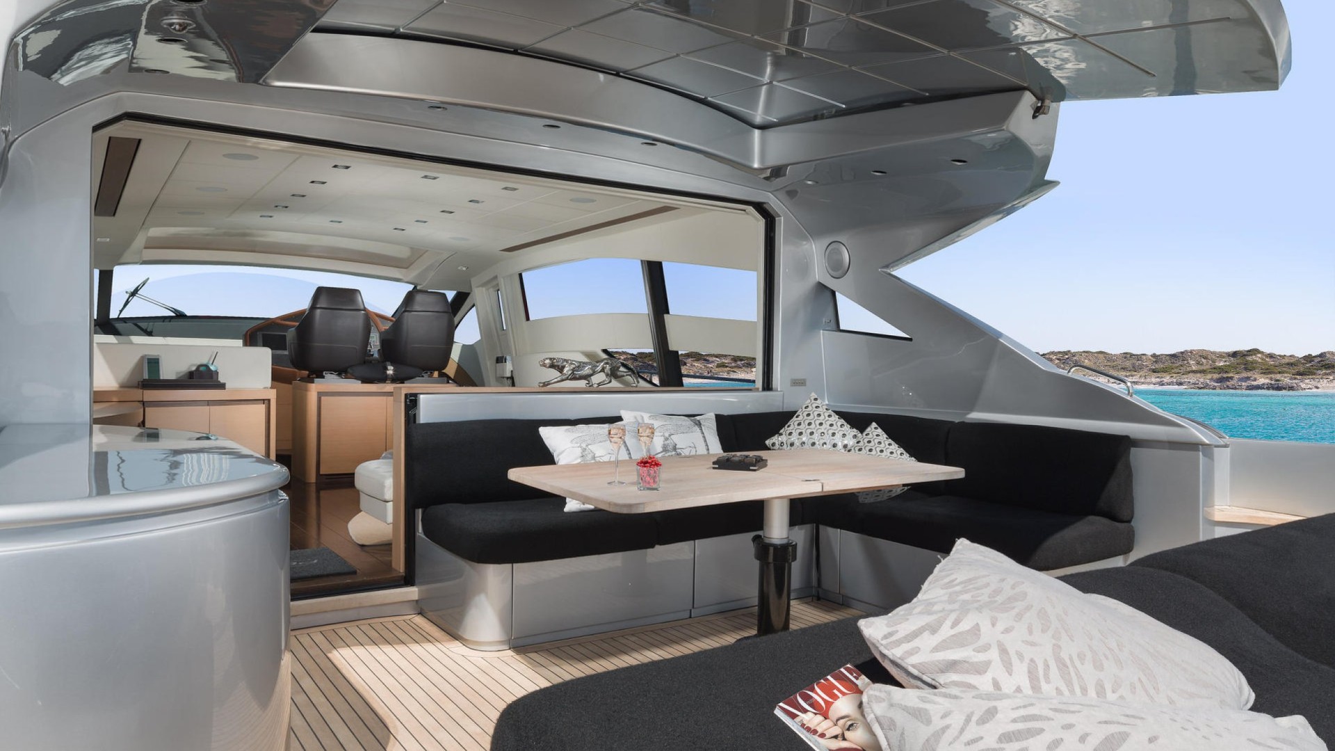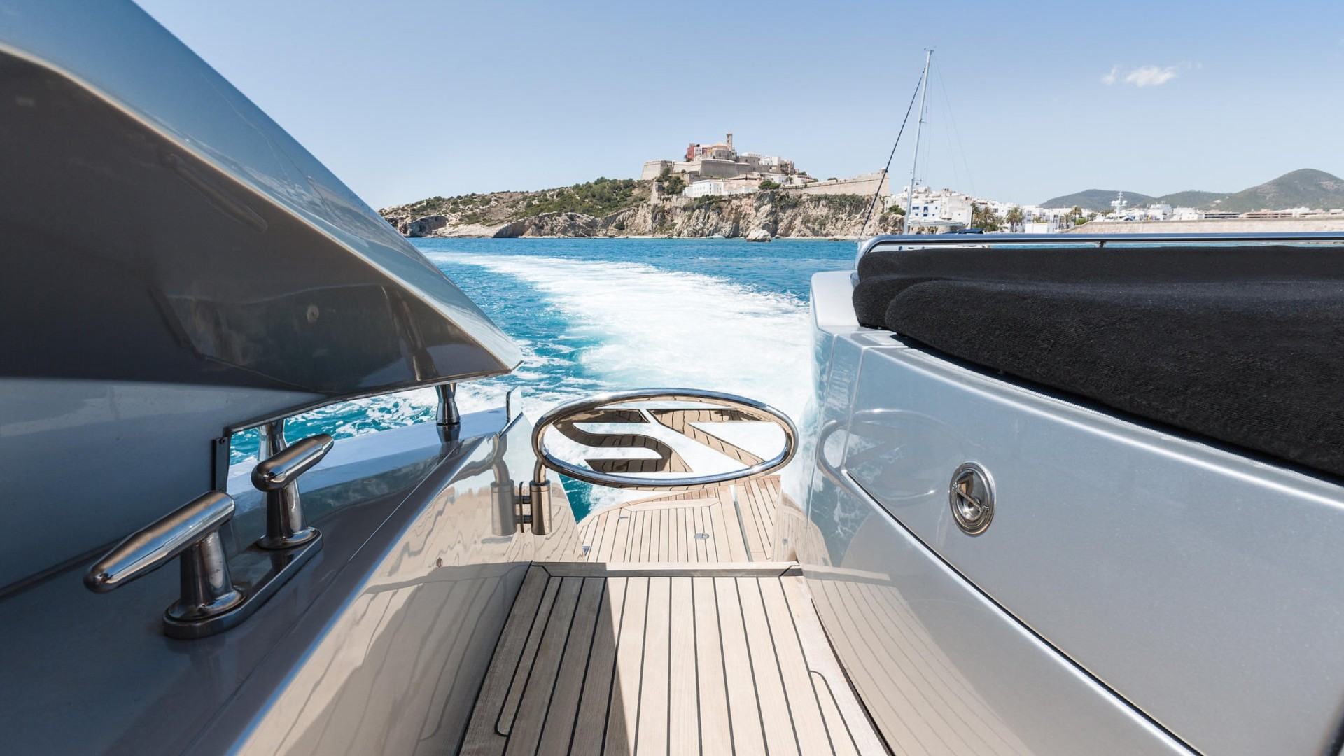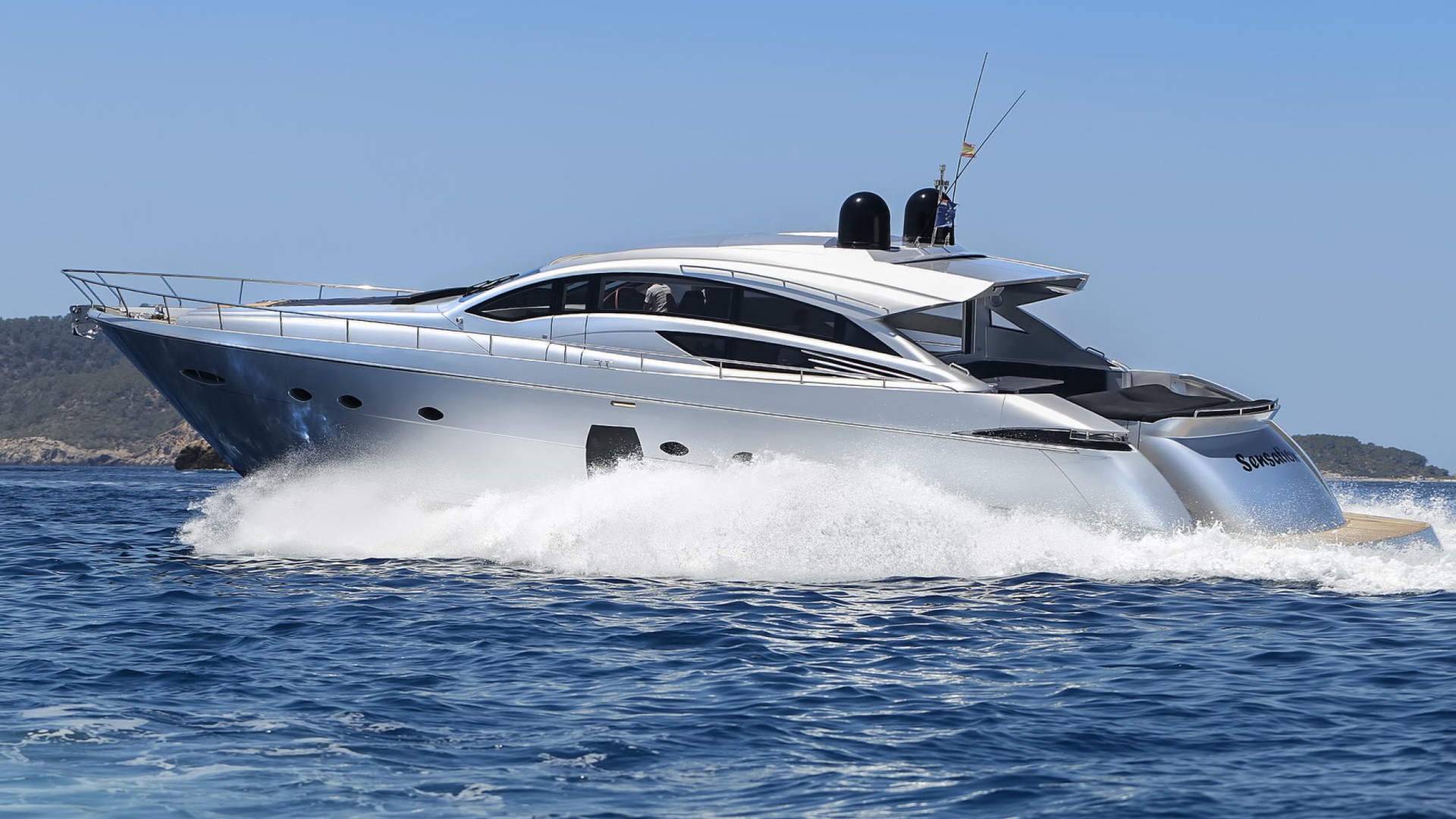 The Pershing 72 Sensation is the embodiment of nautical futurism and raw speed, designed for those who view yachting as a form of dynamic art upon the waters of Ibiza. Her greatest strength lies in her revolutionary aerodynamic silhouette and a surface drive propulsion system that allows her to plane over the Mediterranean with electrifying agility and power, leaving the iconic “rooster tail” wake that is the brand’s trademark. This unit stands out for her innovative retractable glass bulkhead that disappears completely into the floor, eliminating the barrier between the main saloon and the aft cockpit to create a single, vast terrace open to the sea.Inside, the Sensation lives up to her name with a cutting-edge design where Italian minimalism meets ultra-luxury materials, such as Poltrona Frau leather and exquisitely grained woods. Her three spacious staterooms offer a sanctuary of absolute sophistication, bathed in light through the signature elliptical hull windows that define this yacht’s persona. She is the definitive choice for those seeking a complete sensory experience, combining the adrenaline of a marine projectile with the elegance of a designer loft—perfect for exploring the coasts of Formentera with unmatched distinction and visual impact.