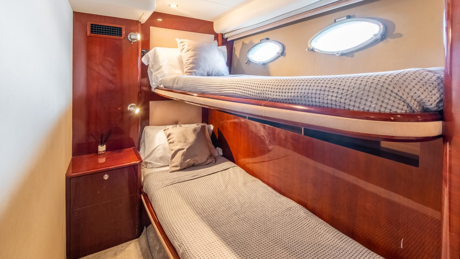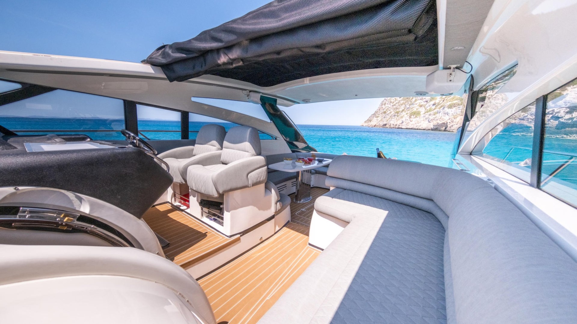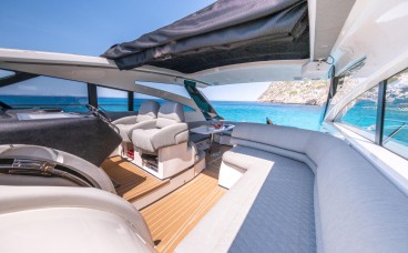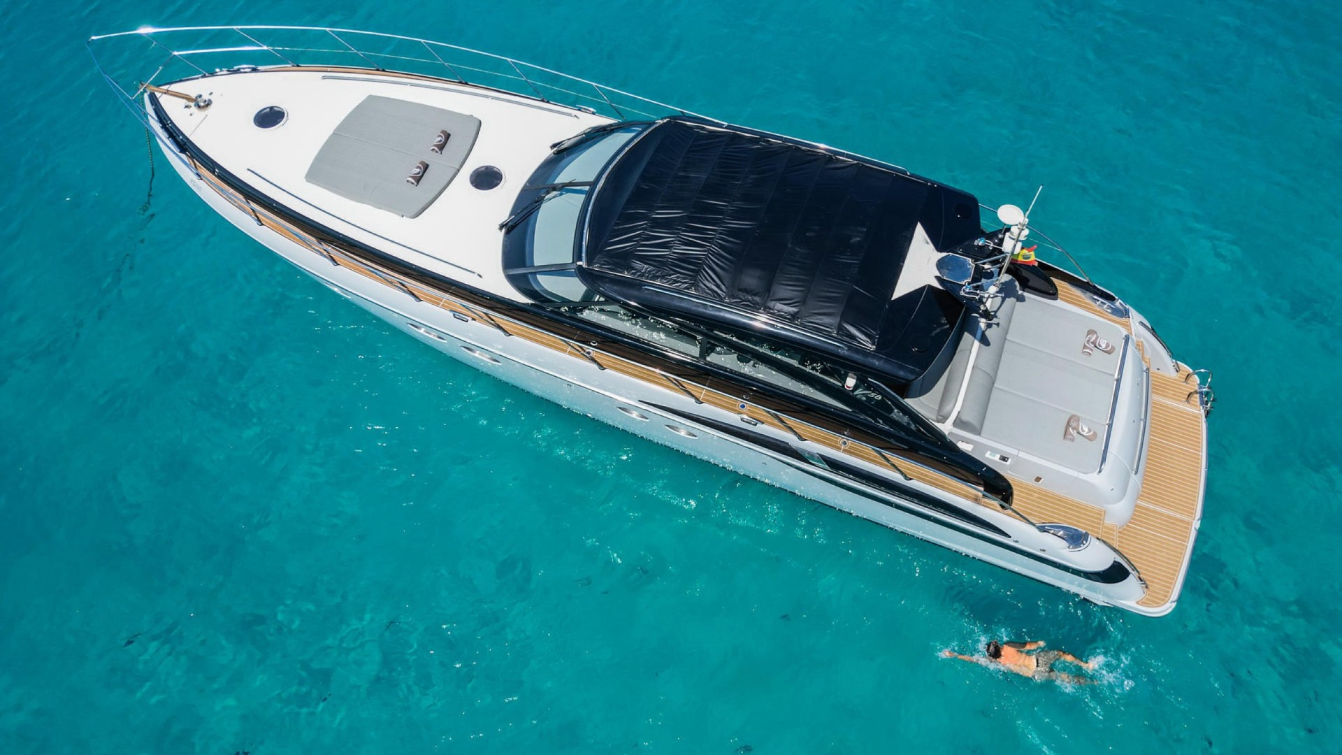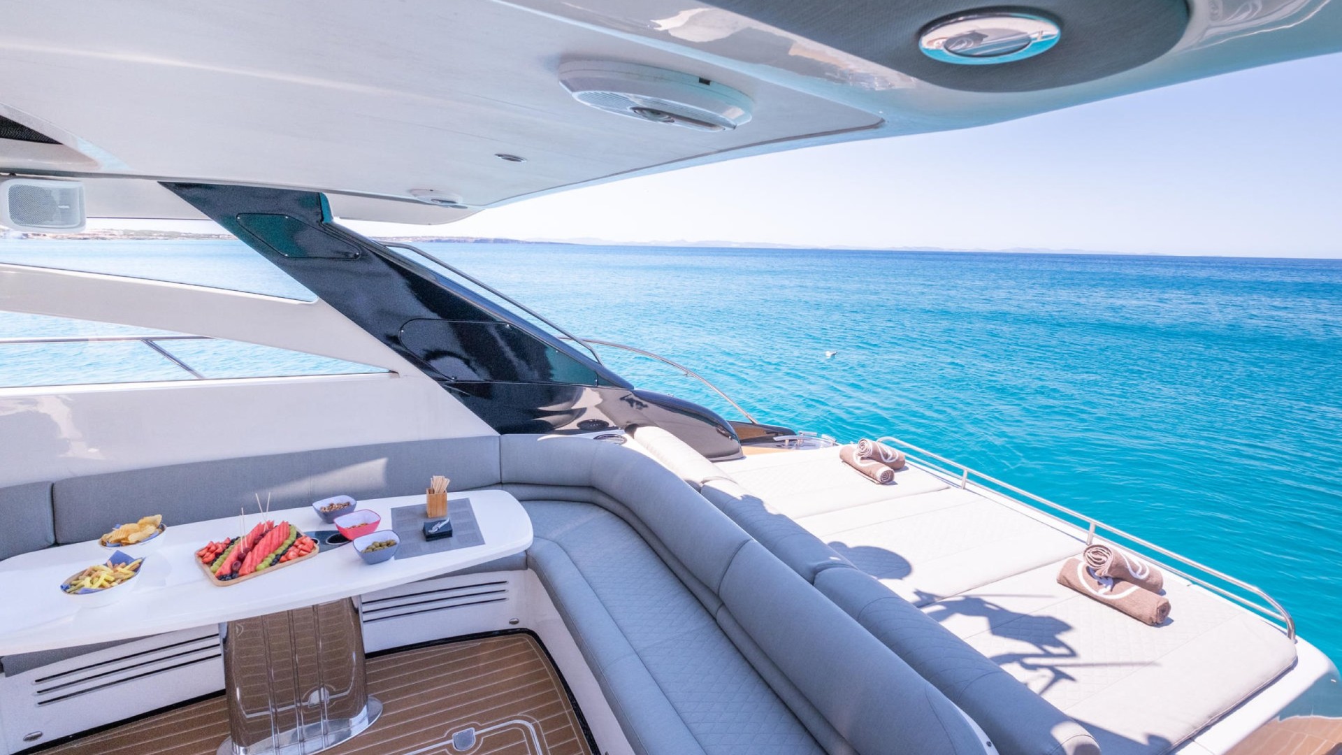 At over 18 meters LOA (Length Overall) and featuring a deep-V hull design, this yacht does not only offer a commanding presence in the waters of Ibiza, but also an exceptionally smooth and fast ride. It is the premier choice for those seeking exclusivity, space, and five-star service while exploring the most secluded coves of Formentera.