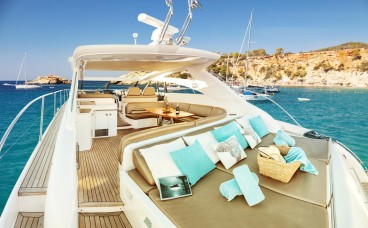 Following a comprehensive refit in 2023, this unit from the prestigious British shipyard Princess combines athletic performance with high-end comfort. She is the ideal choice for those wishing to have breakfast in Marina Botafoch and lunch in the most exclusive spots of Formentera, enjoying a journey as thrilling as the destination itself. Her “Open” design featuring an electric sunroof allows guests to merge with the Balearic environment, offering a unique sensory experience under the Ibiza sun.