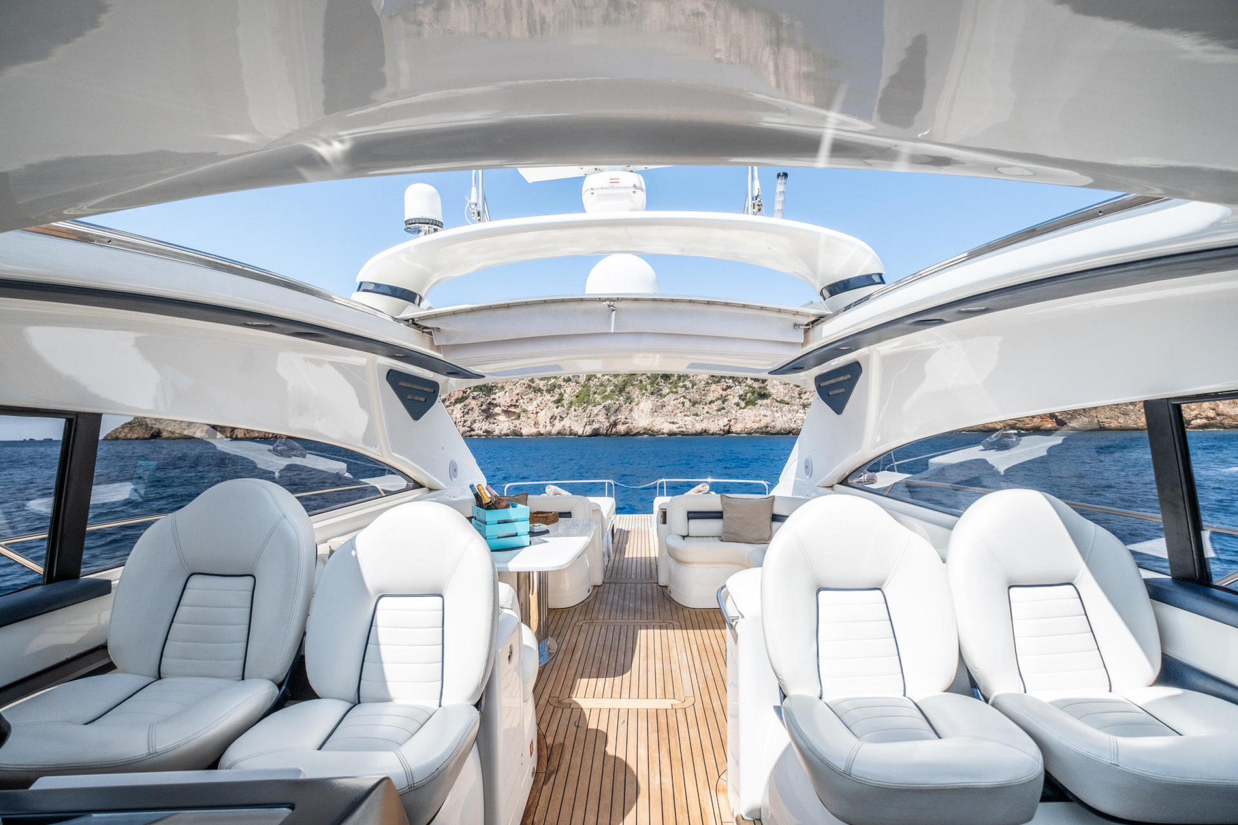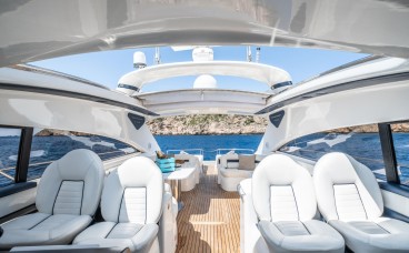 Sport-Style Helm Seats: The helm station features ergonomic nautical-design seats that not only provide an exceptional aesthetic touch but also allow guests to accompany the captain during navigation in total comfort.