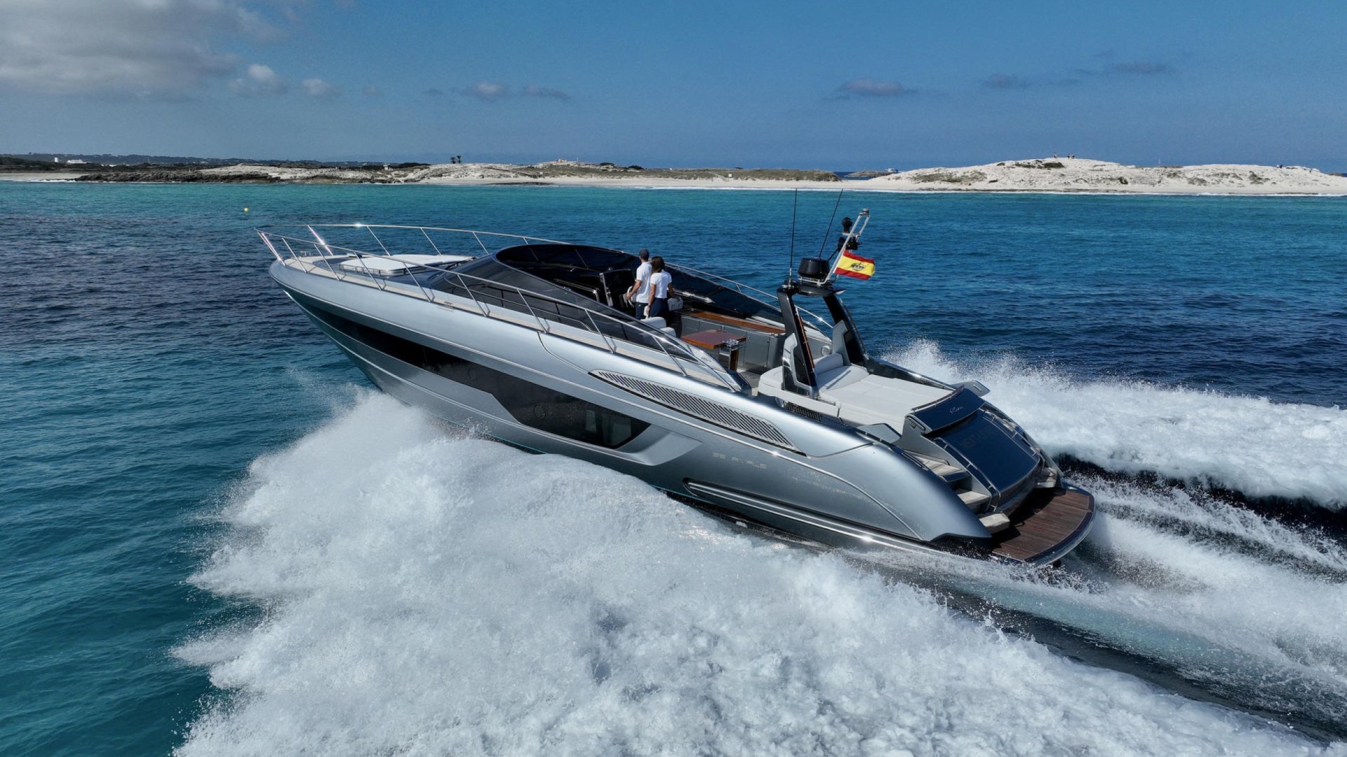 With its unmistakable silver silhouette and aerodynamic lines, this jewel from the Italian shipyard combines fierce sportiness with the timeless elegance that only Riva can deliver. It is the ideal vessel for those who demand the extraordinary: smooth, powerful seakeeping and a design that turns heads from Marina Ibiza to the most exclusive coves of Formentera.