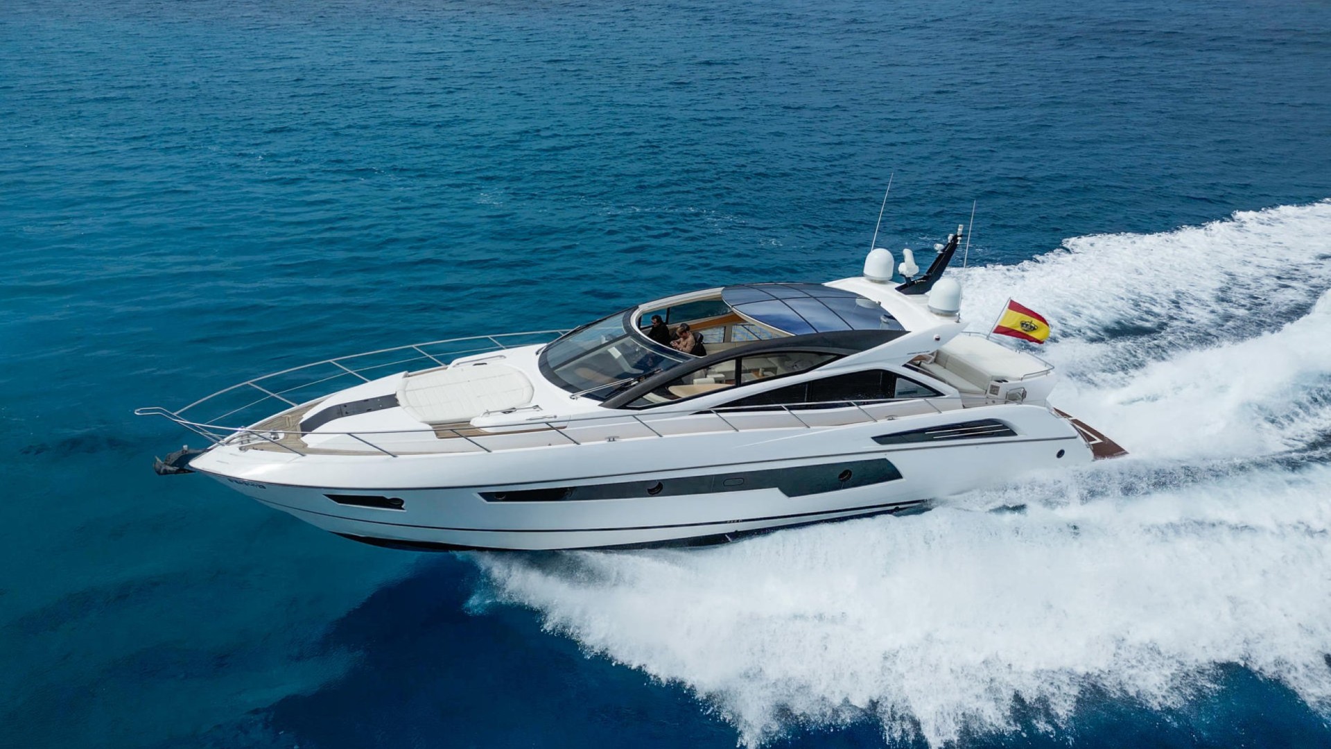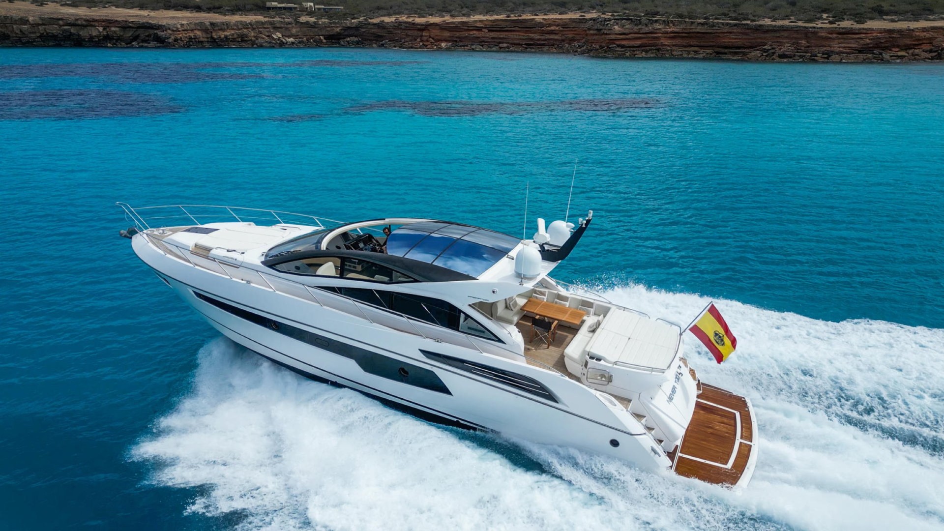 With its streamlined lines and an aggressive yet refined profile, the Predator 57 is the preferred choice for our most discerning clients who value both privacy and performance. Its open-plan layout and retractable sunroof allow you to enjoy the Balearic sun with unparalleled freedom.