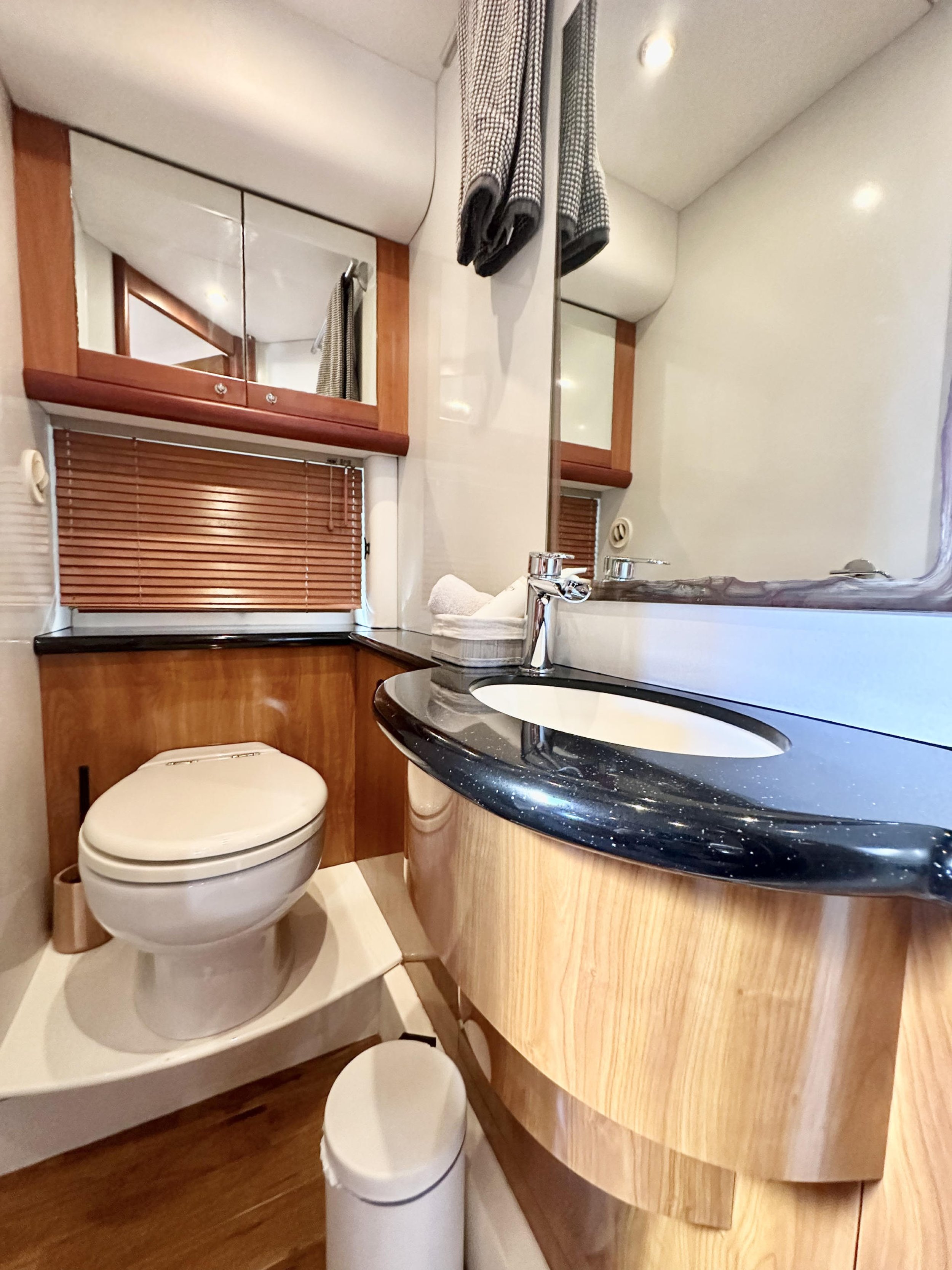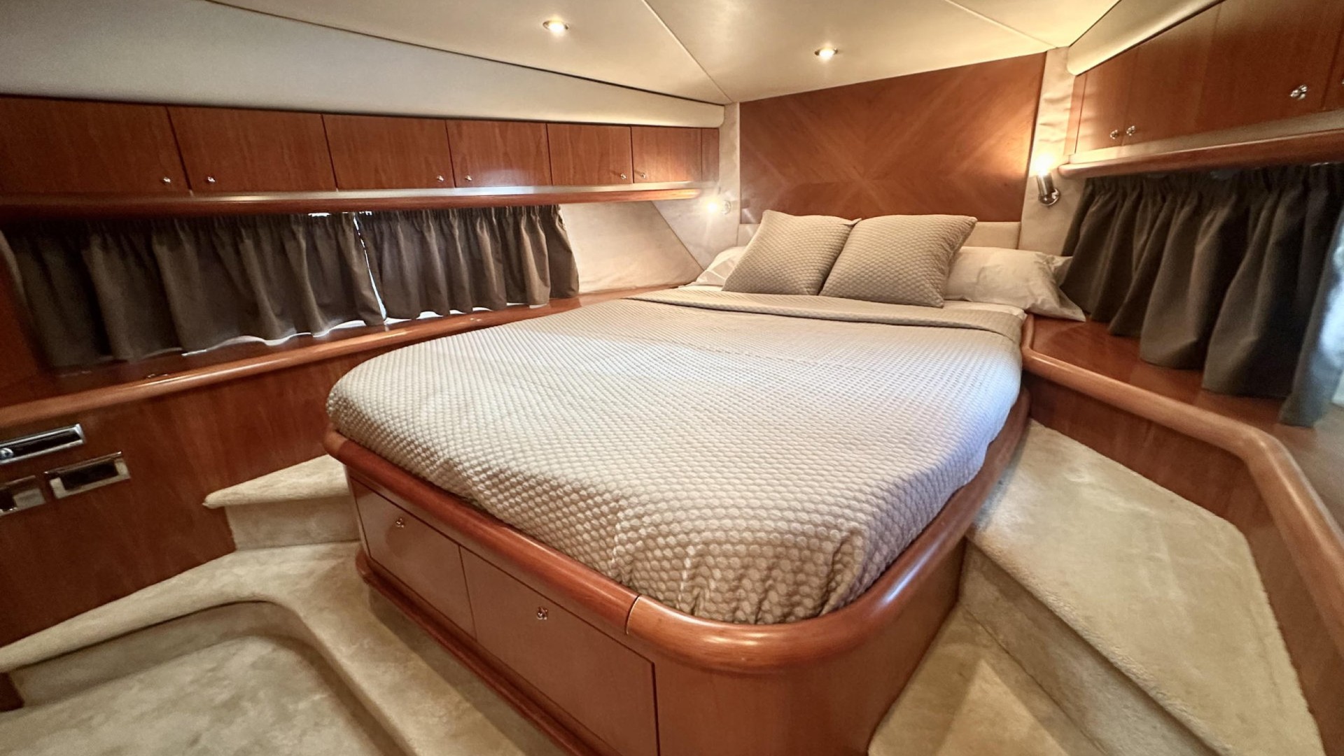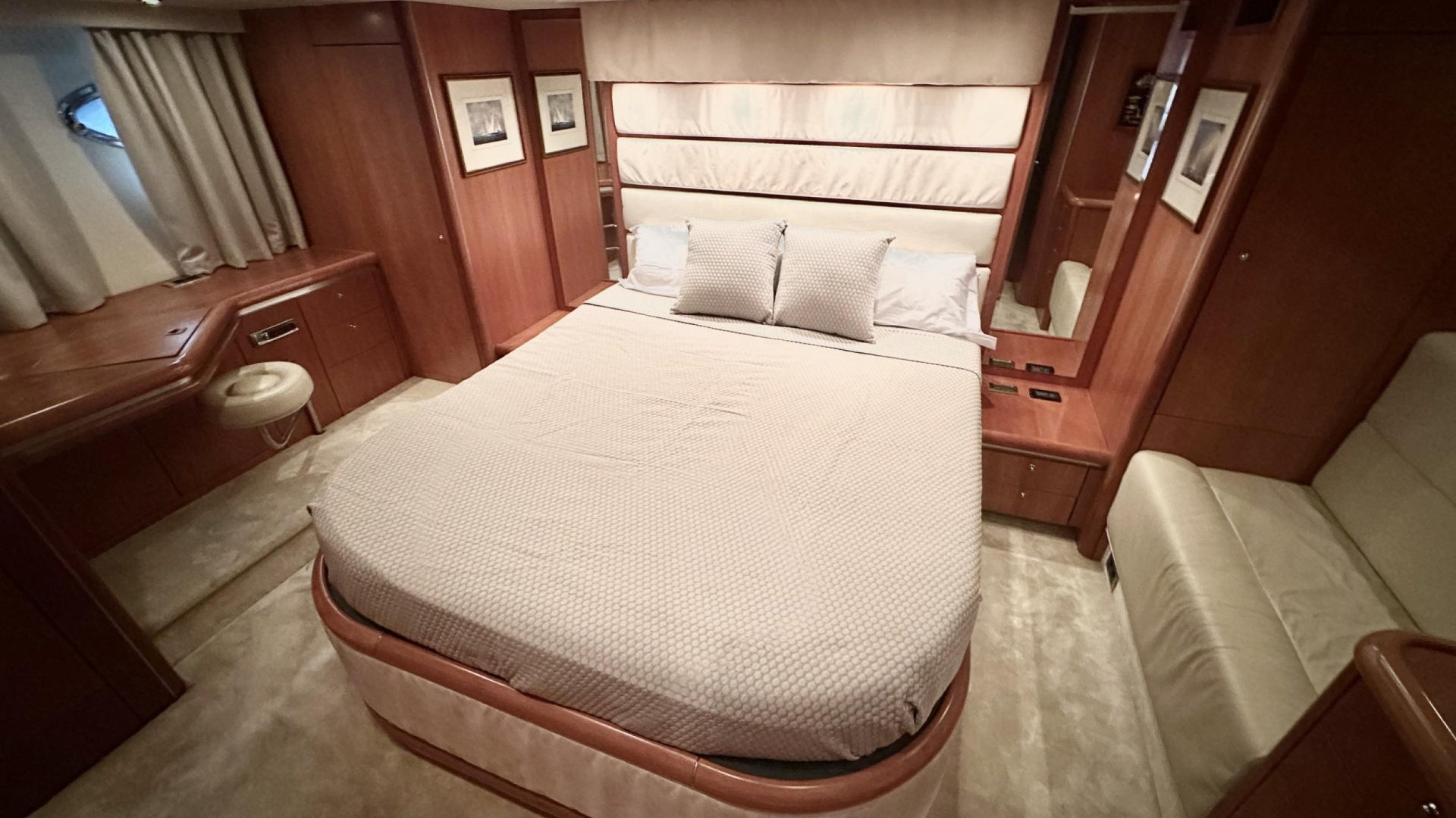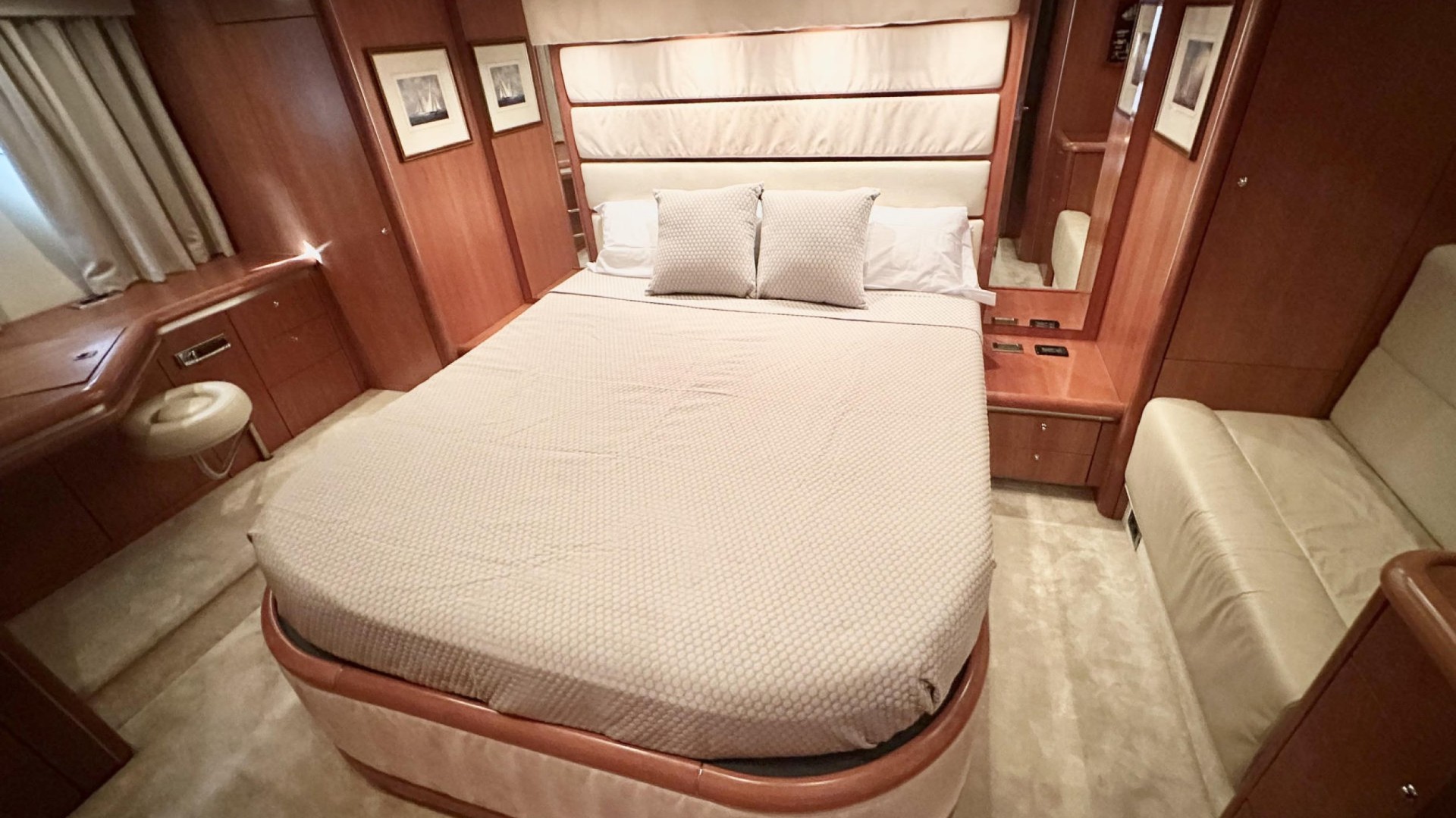 Impeccable Aesthetics: Her custom metallic grey hull sets her apart from any other vessel in the marina, ensuring a stylish arrival at any beach club.