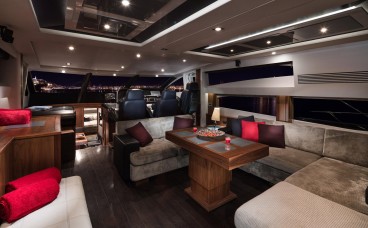 Revolutionary Open-Air Design: Its panoramic glass sunroof slides open to flood the saloon with natural light, creating a seamless, open-plan space that connects the interior with the Mediterranean.