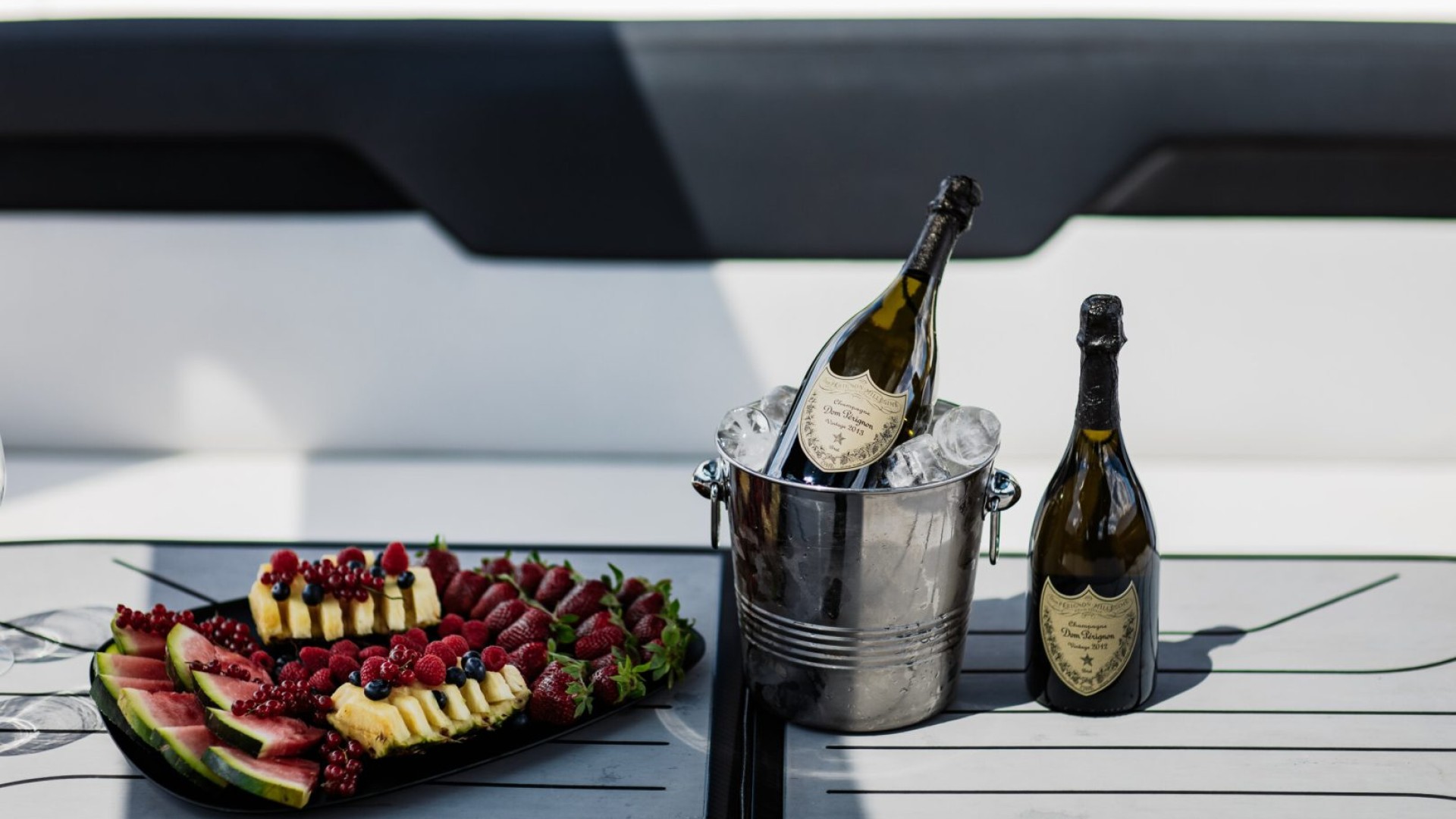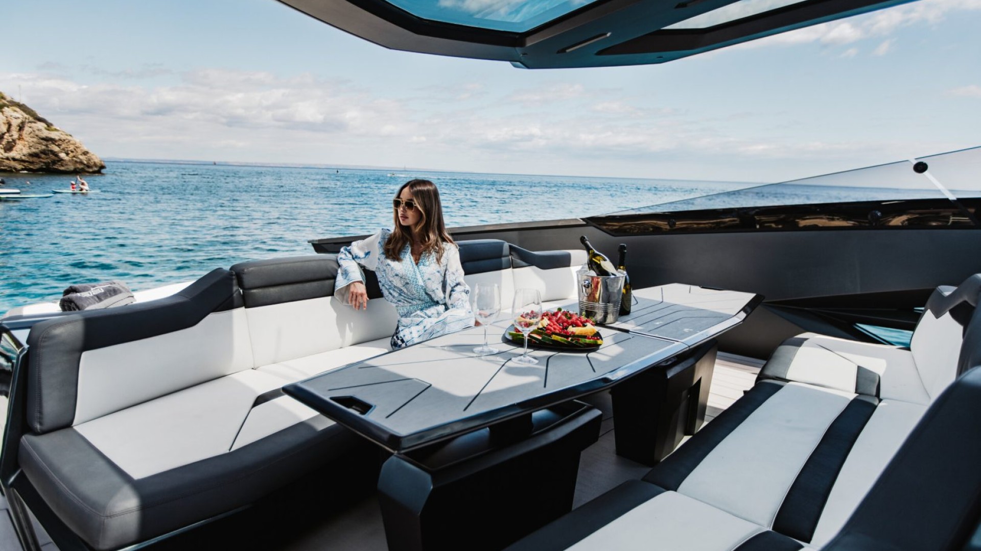 INCLUDED . 1 *Lamborghini Captain &Crew (3x)*: Ensures expert navigation and service. 2. *Hostesses (2x)*: Providing attentive onboard hospitality.3. *Private Security*: Dedicated security for safety and privacy.4. *Welcome Champagne with Dom Perignon (1-Bottle)*: Aluxurious greeting for guests.5. *Drinks & Snacks*: A variety of beverages and light refreshments.6. *Imperial Fruit Platter*: Fresh, gourmet fruit selection.7. *Lamborghini Aventador Aura Dolby Atmos Sound System*: High-quality audio experience. 8. *Velvet Marina Towels for Bathing*: Soft, premium towels for comfort.9. *Private Chauffeur (2x) VIP Transport*: Exclusive transport for pick-up and drop-off. 10. *Full Boat Insurance*: Comprehensive coverage for peace of mind.*NOT INCLUDED*.1 *Fuel*: The cost is calculated at the end of the trip based on engine working hours, current fuel price, and consumption.2. *Secondary Port Moorings*: Additional costs for moorings at secondary ports.3. *АРА € 5,000*: An Advanced Provisioning Allowance of €5,000 is mentioned, which is a budget set aside for expenses such as fuel, food, port fees, and other incidental expenses.4. *Seabobs Available on Request*: Water toys can be provided upon request, but toys from external companies are not accepted. Additionally, we can add F5 Seabobs for a total of €500.*5. *Tax 21% Not Included:** Please note that VAT of 21% is not included and will be applied to all applicable charges.*6. *Credit Card Fees for Payment Link:** Afee of 4.5% will be applied to all payments made using the payment link via credit carbón