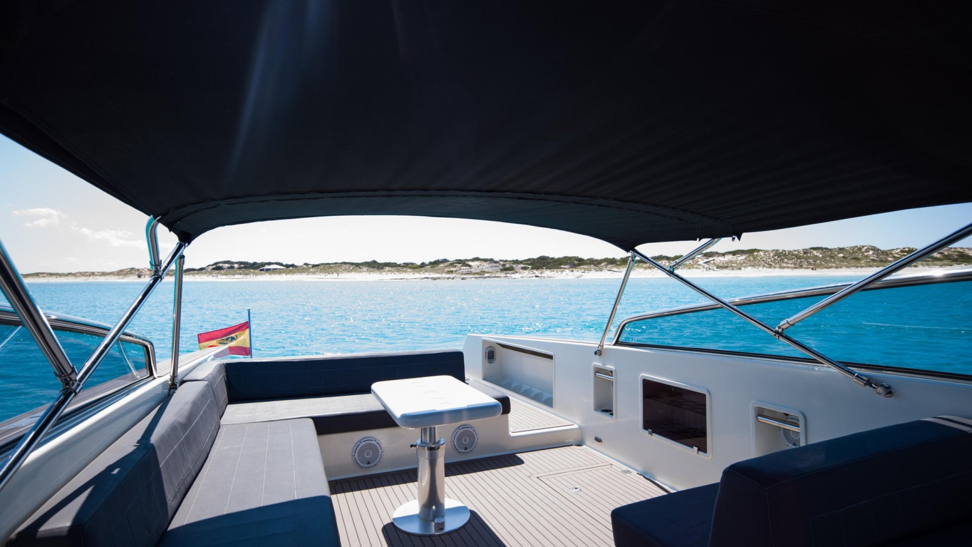 Performance and Power: Equipped with twin high-performance Yanmar engines, “Smart Ass” reaches 32 knots, allowing you to cross from Ibiza to Espalmador with exceptional smoothness and speed.