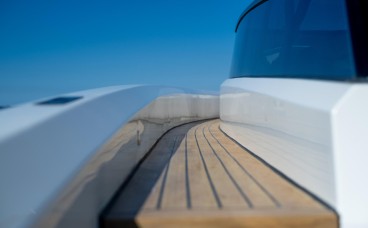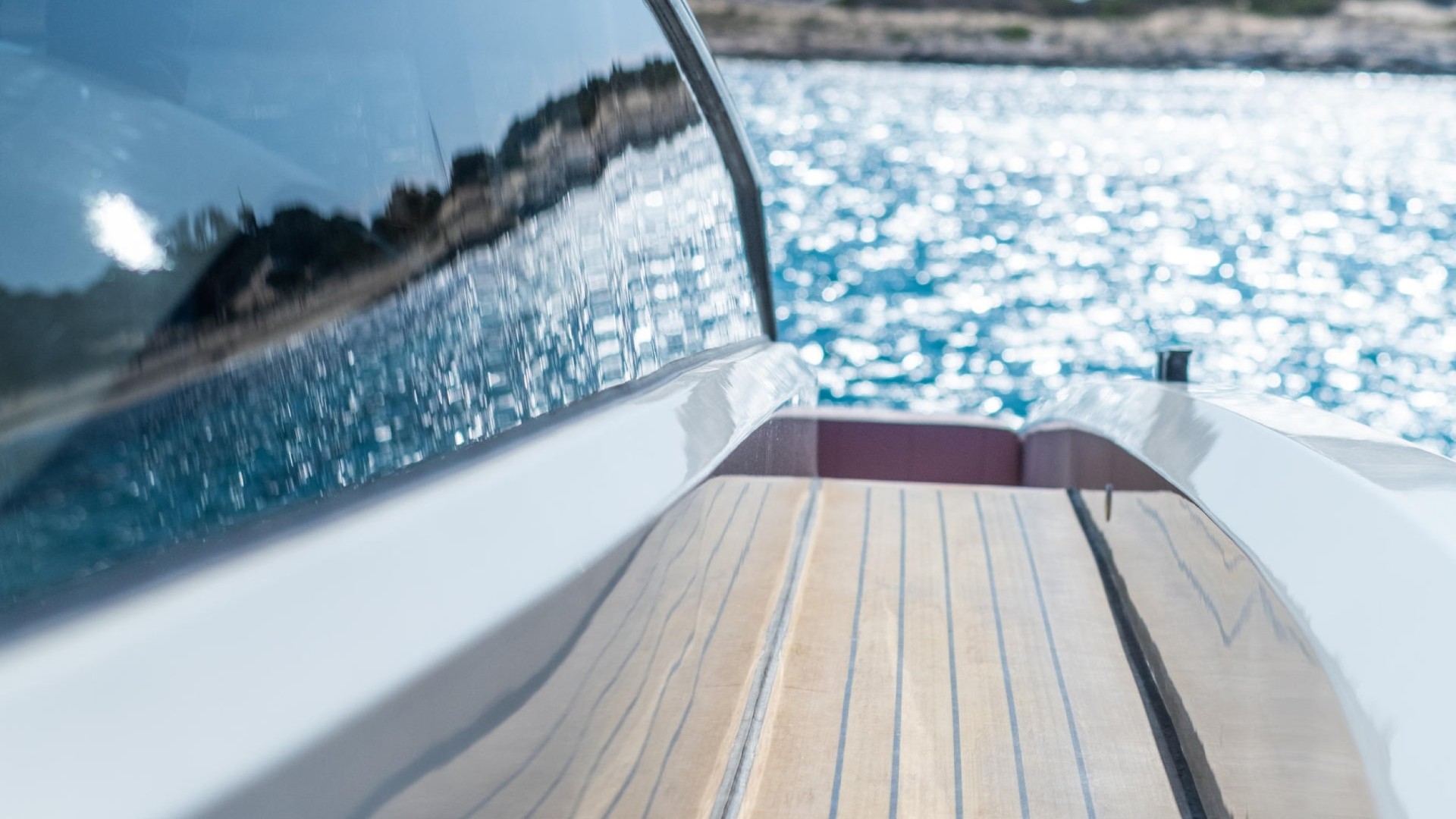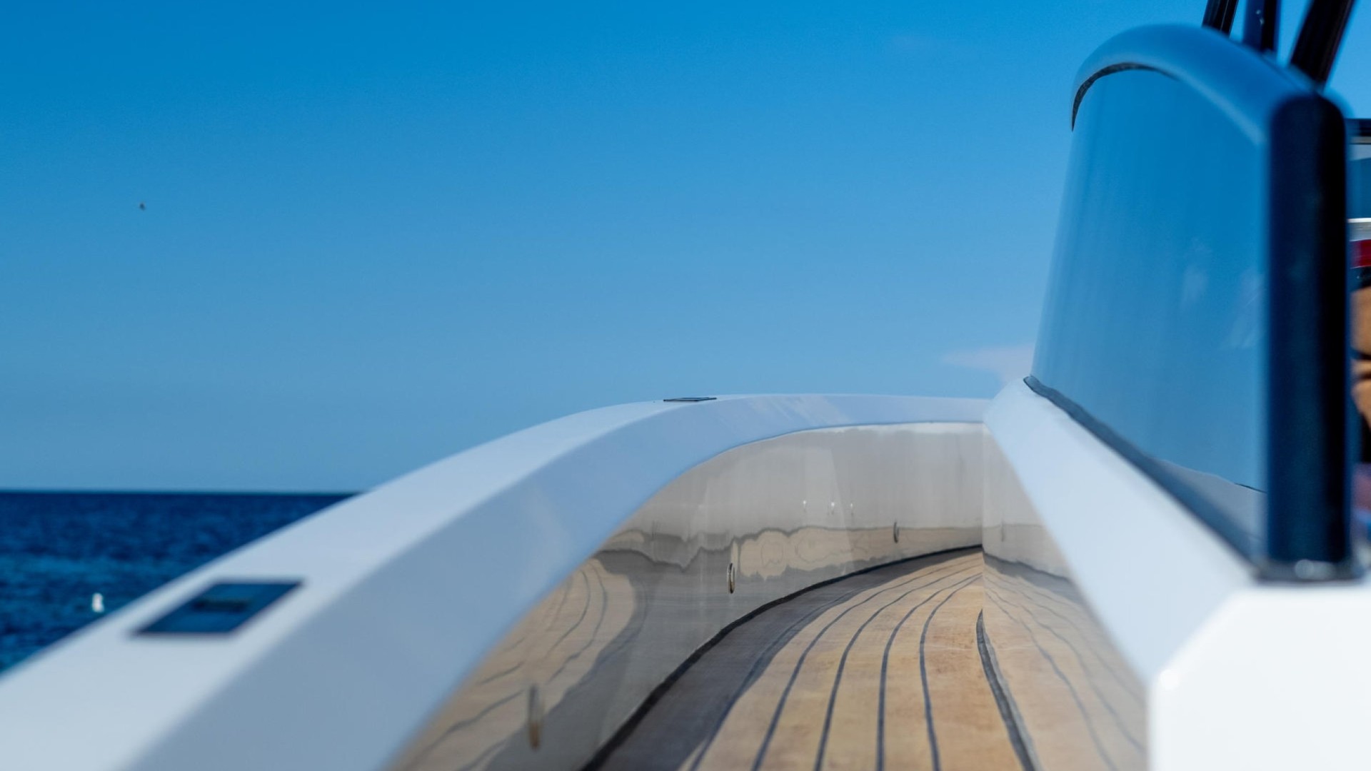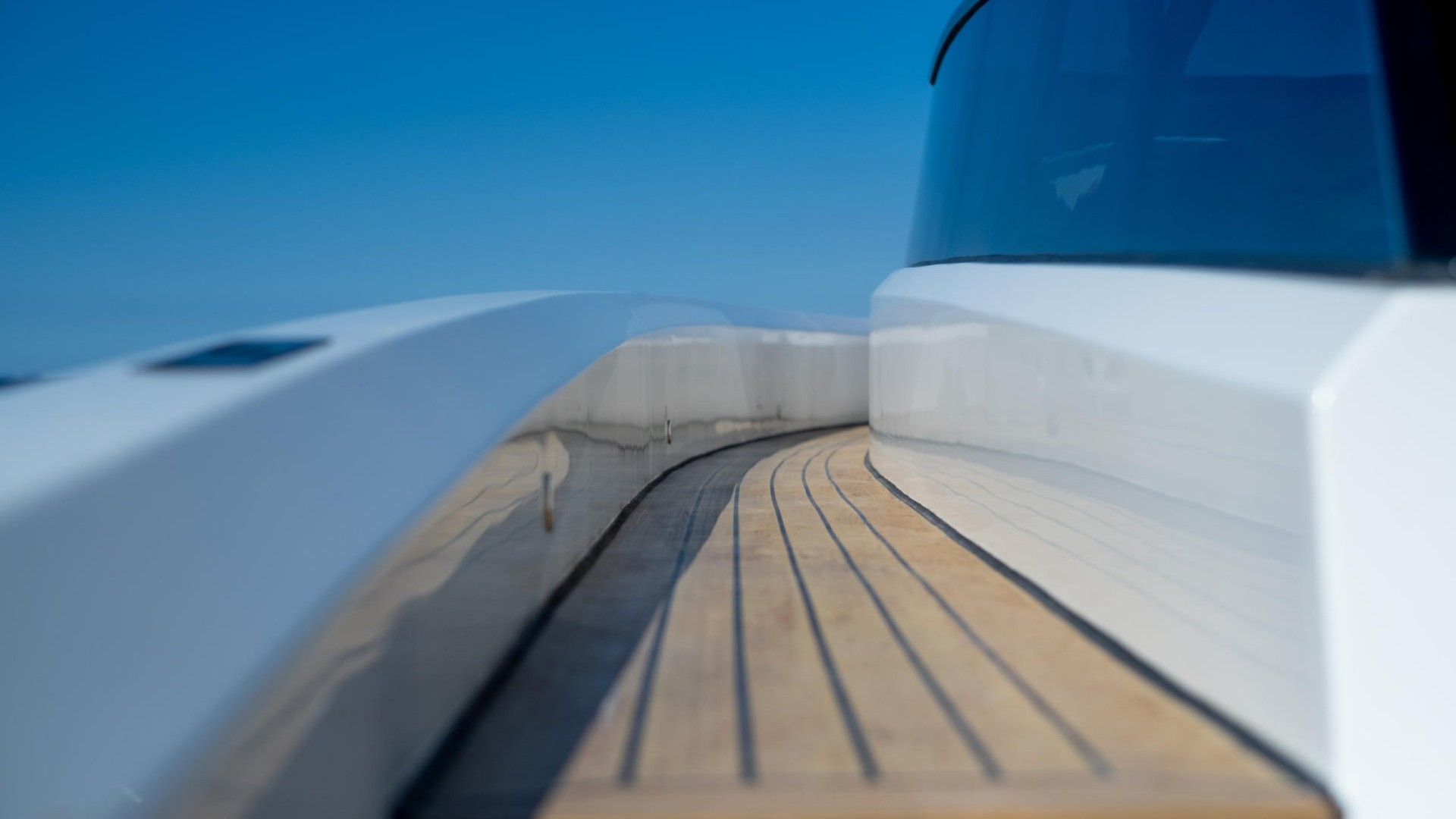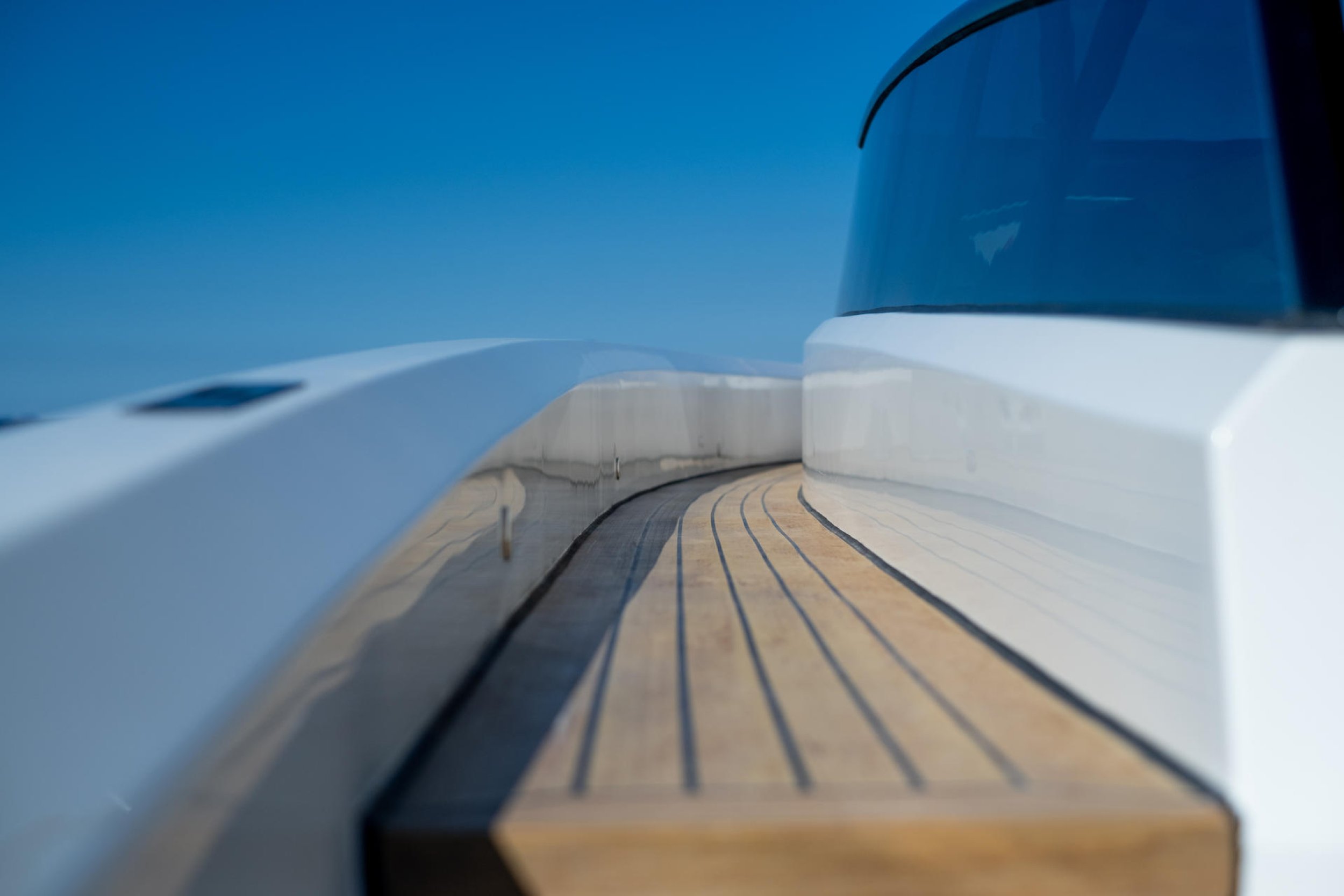 Walk-around Configuration: Absolute freedom of movement on board. The layout allows for safe and spacious passage around the entire vessel, facilitating easy access to the swim platform.