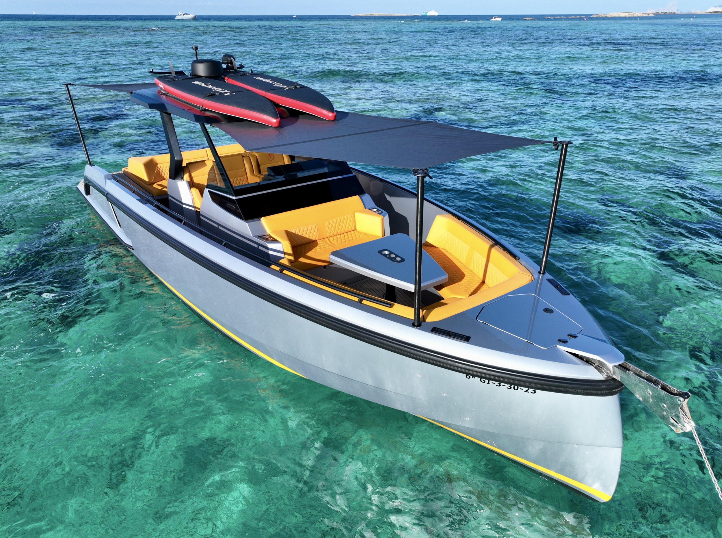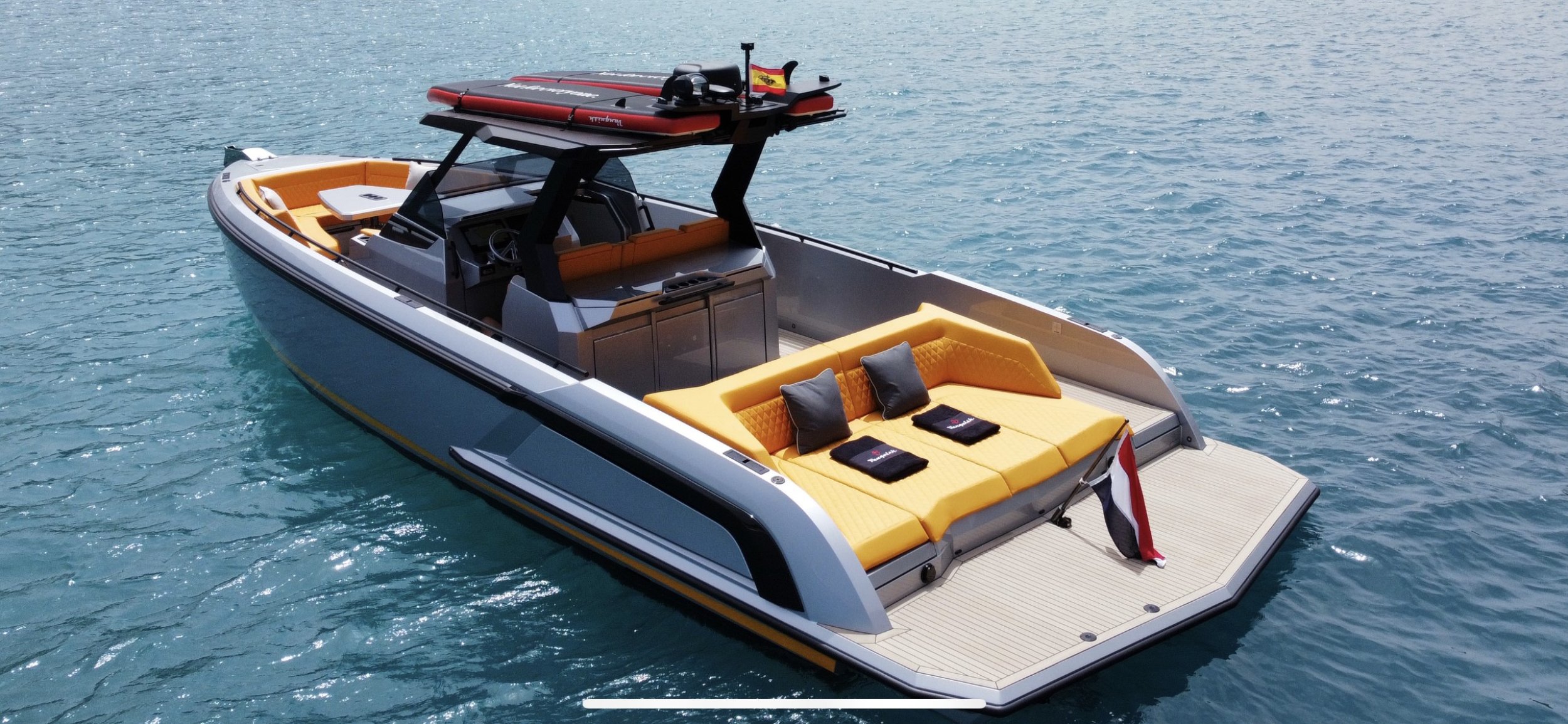 The Vanquish VQ40 “No Tomorrow” is the ultimate expression of Dutch nautical non-conformism—a vessel that blends precision engineering with bold aesthetics for those who understand the sea as a stage for speed and cutting-edge design.With a length overall (LOA) of 12 meters, this unit, crafted from high-resistance composite, stands out for its iconic stepped bow and an aerodynamic profile that appears sculpted by the wind. Unlike conventional leisure craft that pursue soft, conservative lines, “No Tomorrow” opts for a radical, angular silhouette that ensures a commanding presence. Its open-deck layout is meticulously planned for social interaction, offering ergonomics that allow passengers to enjoy 360-degree visibility without compromising protection or safety.It is a boat designed for living intensely in the moment, capable of reaching speeds exceeding 40 knots with almost instinctive agility. Its hull is engineered to provide an exceptionally dry ride and firm seakeeping, maintaining stability even during high-speed tight turns. Featuring an interior that breathes Vanquish’s signature sophisticated minimalism and a state-of-the-art sound system, it is the definitive choice for those seeking a day boat that is both a style statement and a high-performance machine.