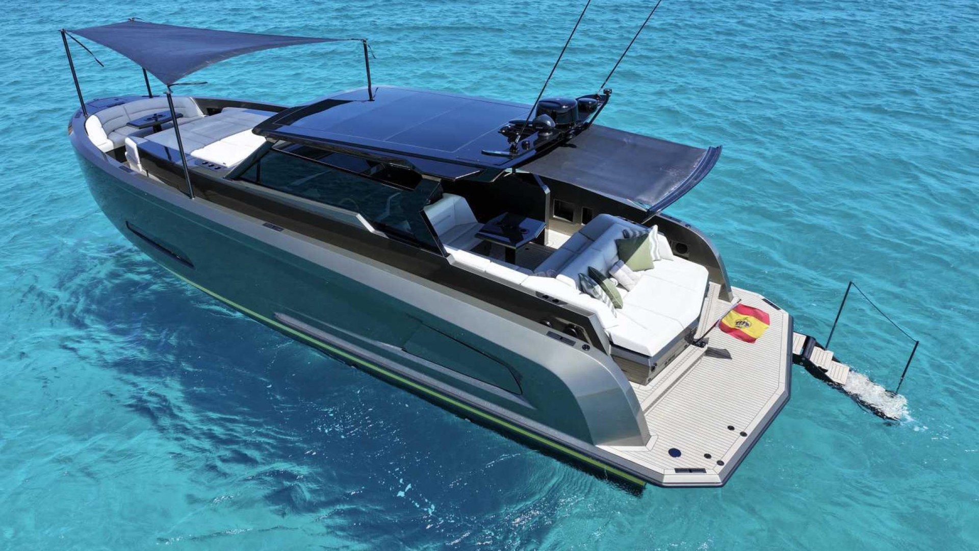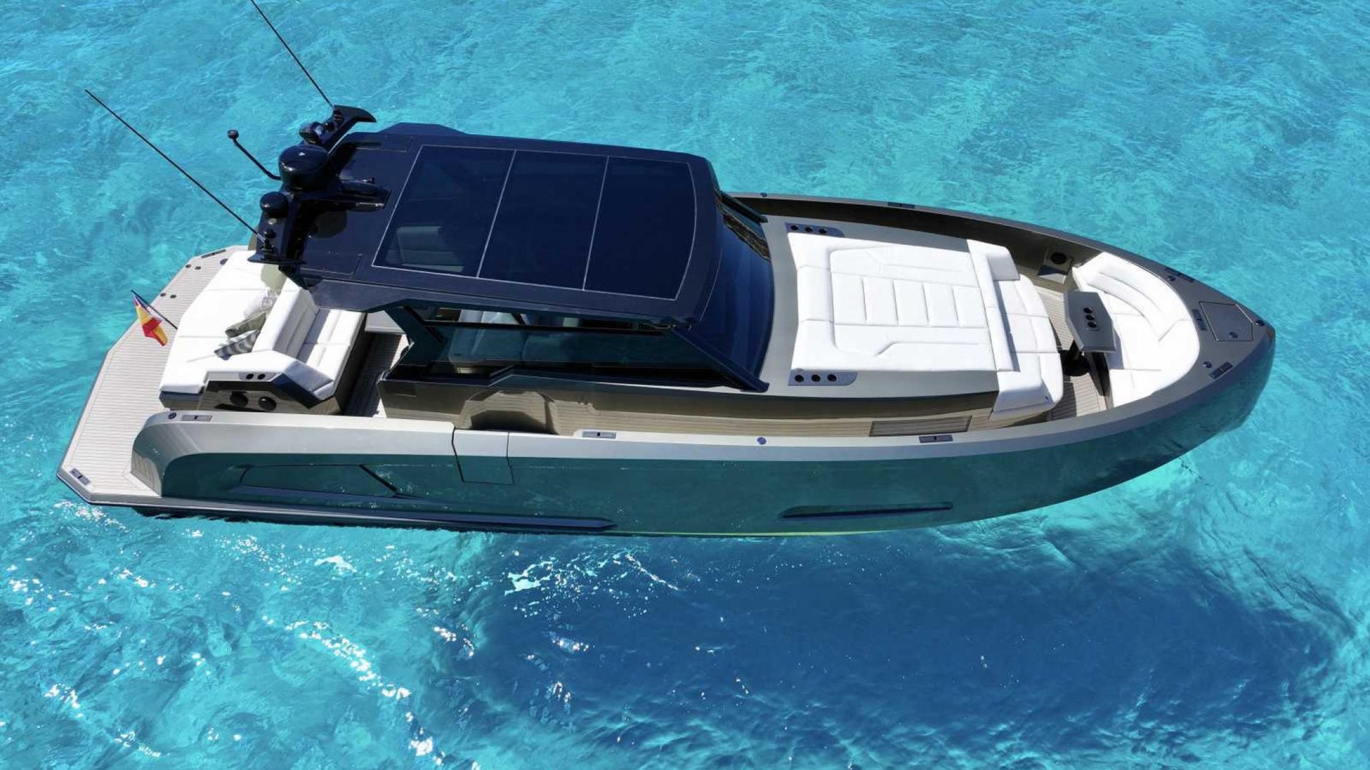 Social Spaces: It features spacious sunbeds both forward and aft, as well as a central lounge area protected by a sleek T-Top that provides shade without compromising its sporty aesthetic.