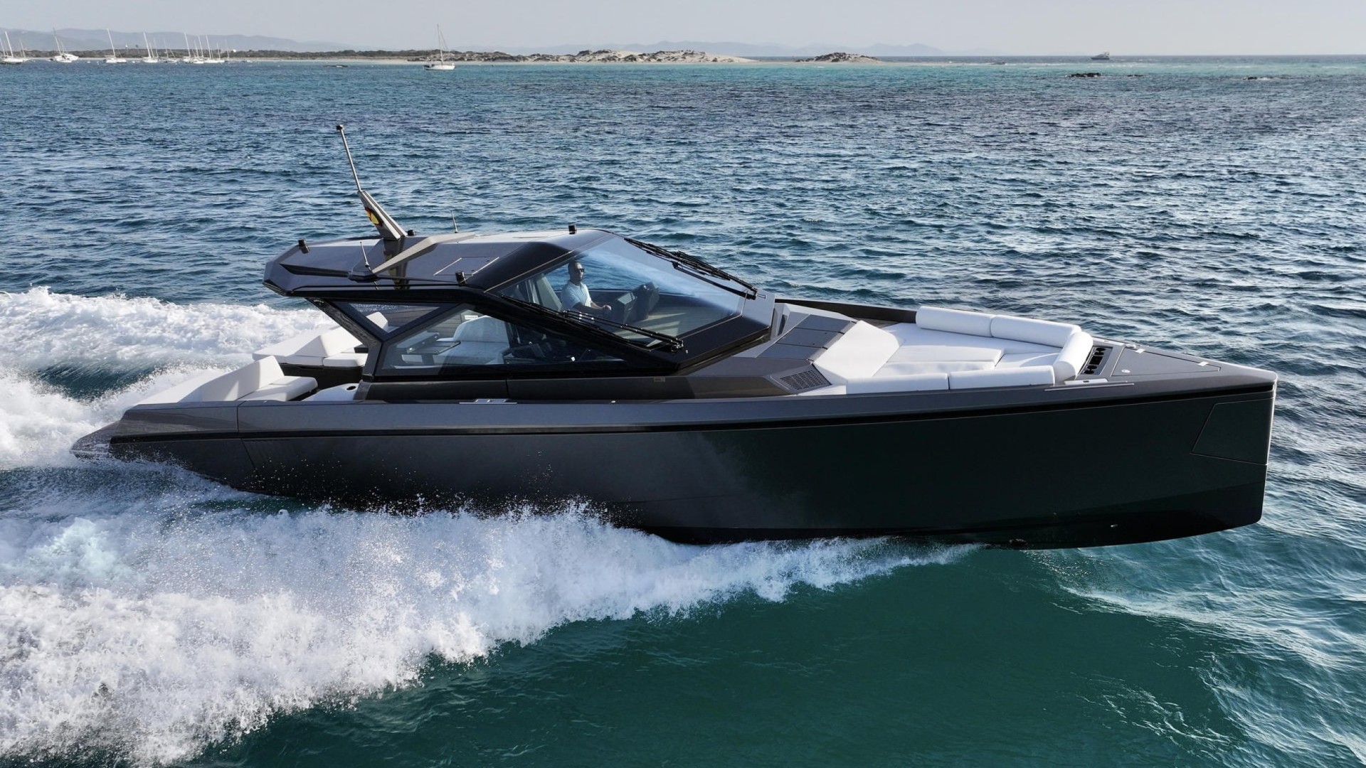 Avant-Garde Aesthetic: Her metallic anthracite grey hull and angular lines offer an aggressive yet elegant profile that commands attention in any marina.
