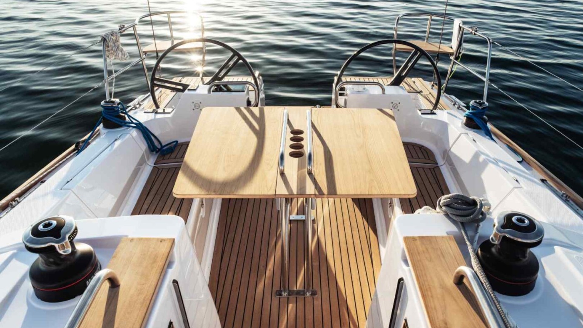 Intuitive und sichere Navigation: Die Doppelsteueranlage schafft nicht nur Platz im Cockpit für Mahlzeiten im Freien, sondern garantiert auch präzise Kontrolle und hervorragende Stabilität, ideal für entspannte Familientörns.