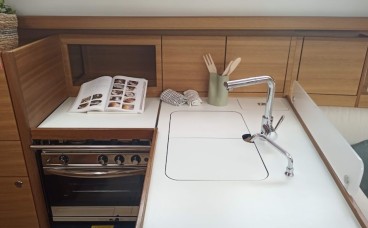 Premium-Ausstattung: Inklusive Bugstrahlruder für perfekte Manöver, voll ausgestatteter Pantry mit großem Kühlschrank und einem auf Geselligkeit ausgelegten Cockpit, ohne die technische Agilität einer Elan zu vernachlässigen.