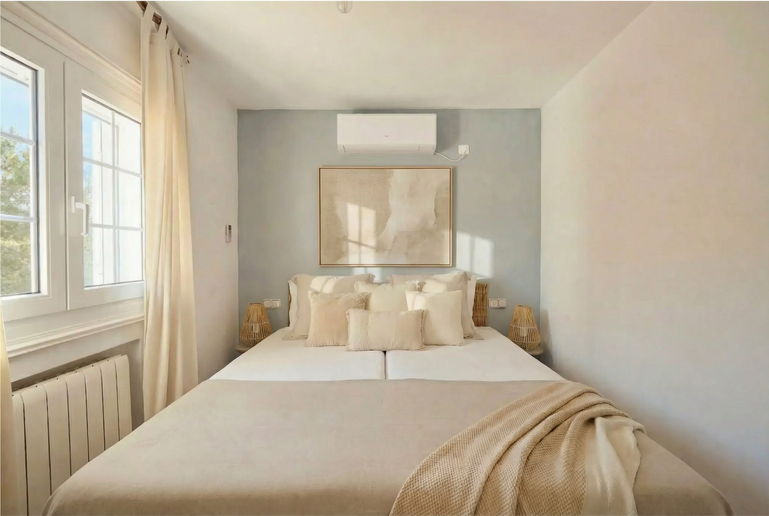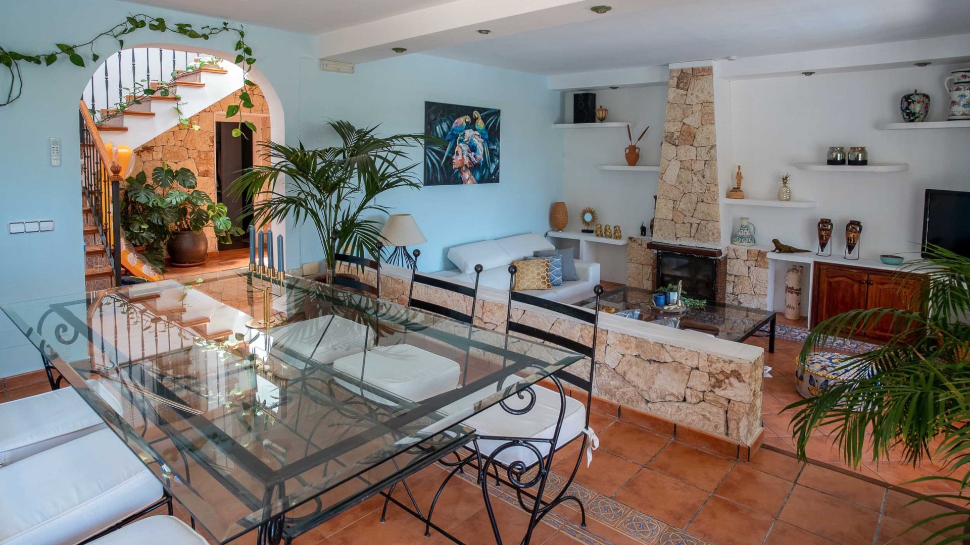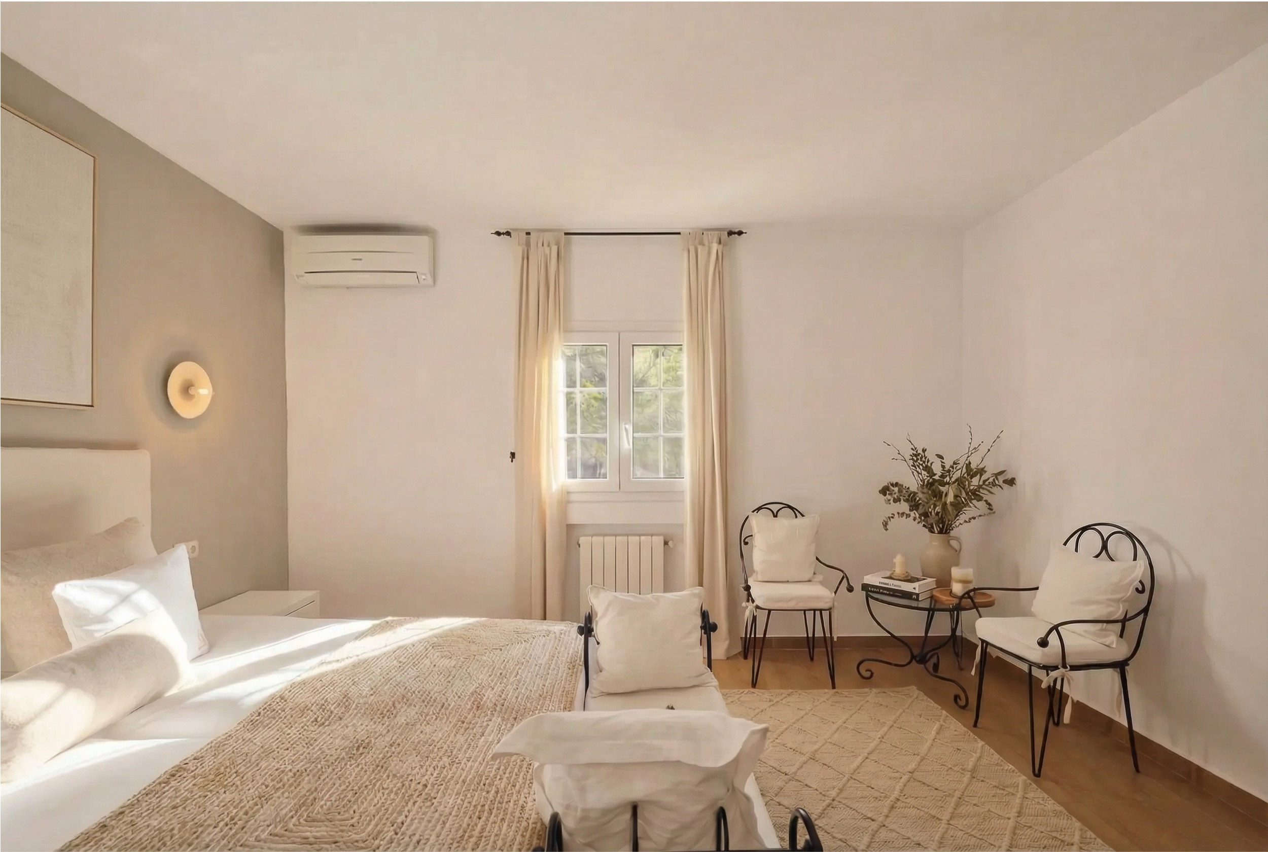 Totalmente equipada, la villa incluye aire acondicionado en todas las estancias, chimenea, cocina completa y parking para varios vehículos, asegurando una estancia cómoda y sin preocupaciones.