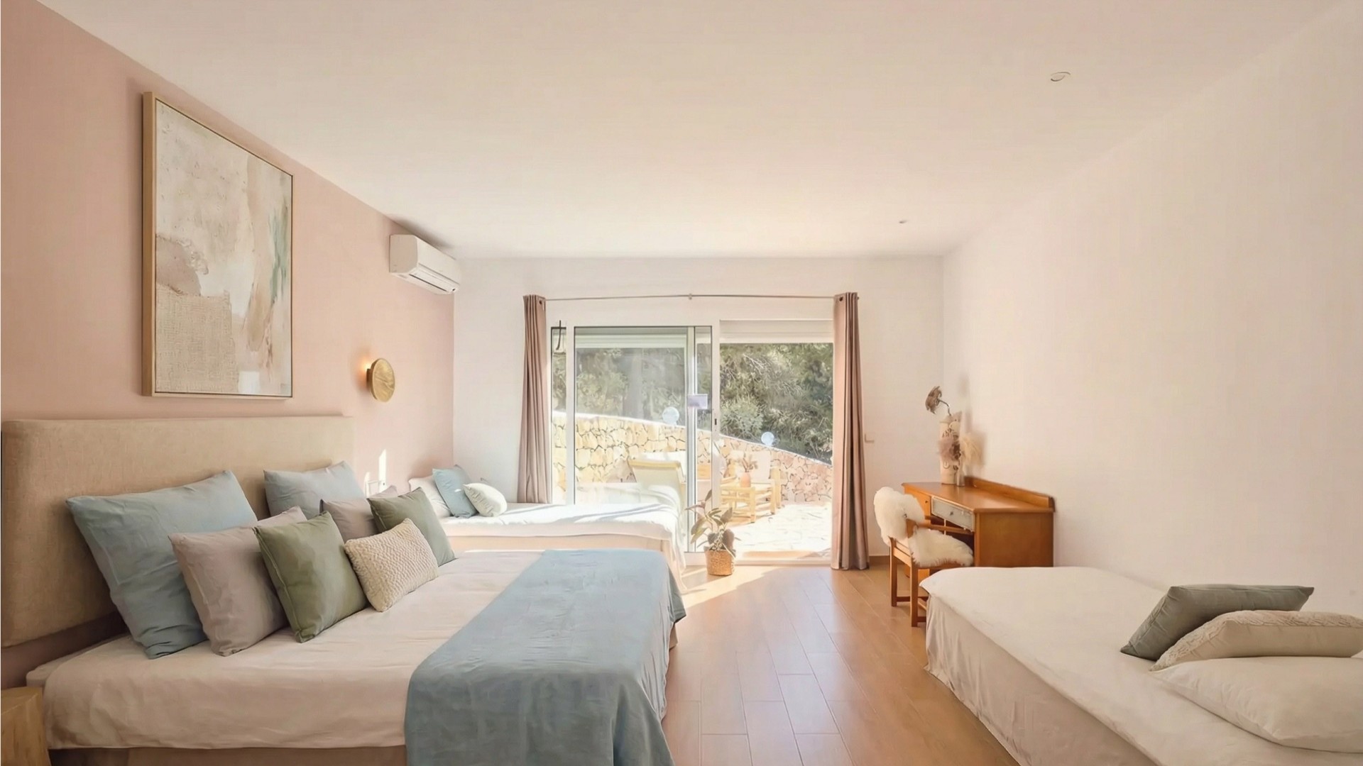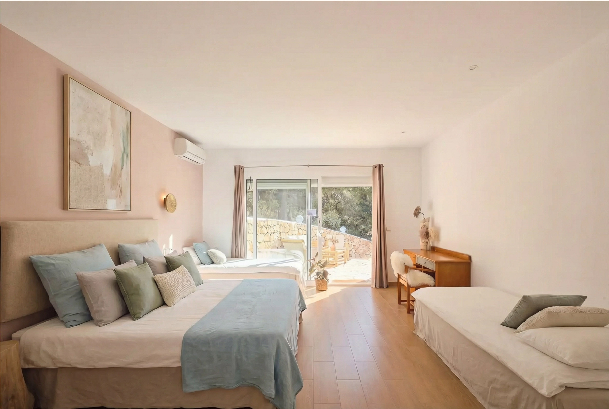 La villa cuenta con 7 habitaciones en suite y 9 baños, diseñada para garantizar el máximo confort y exclusividad en cada estancia. Sus interiores, amplios y luminosos, crean un ambiente elegante y relajado, ideal para disfrutar en grupo sin renunciar a la privacidad.