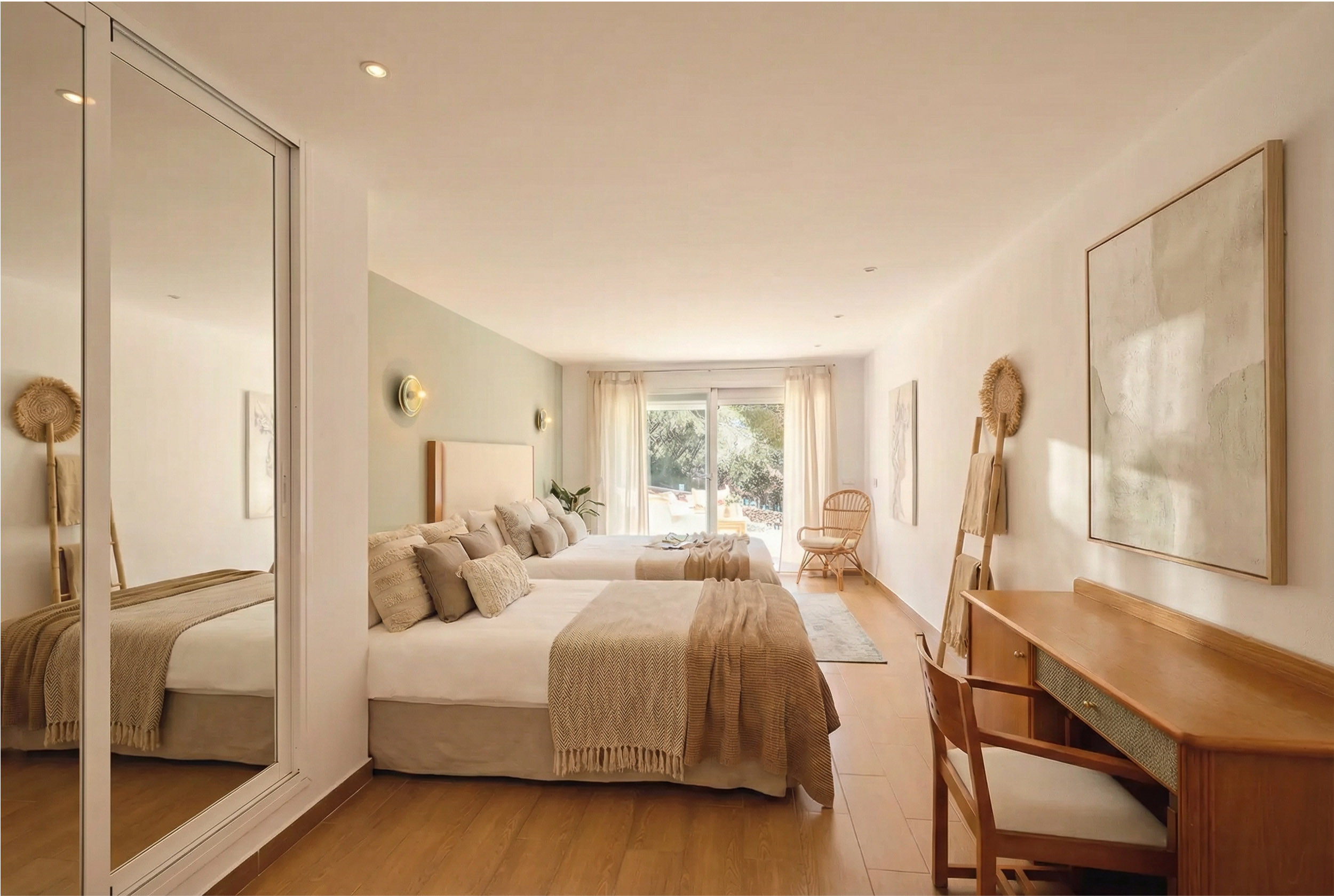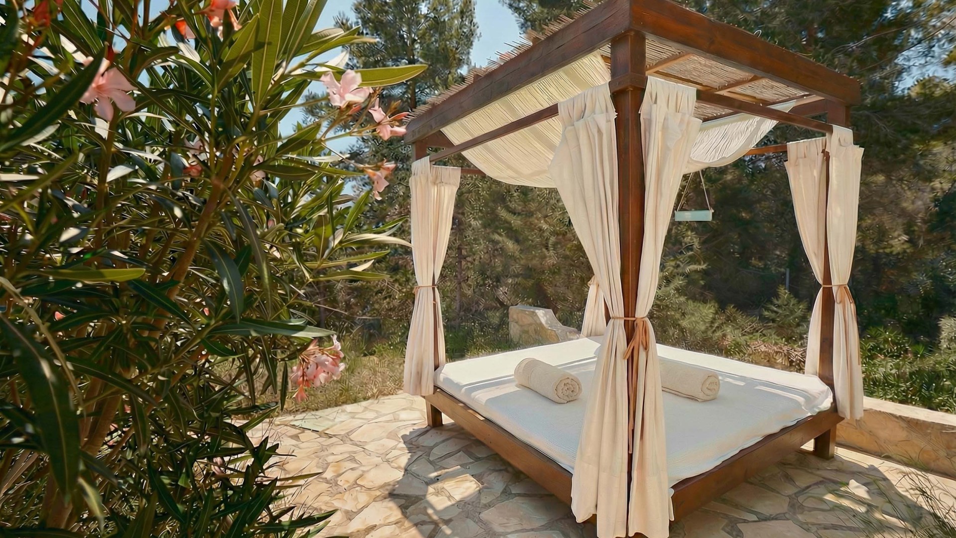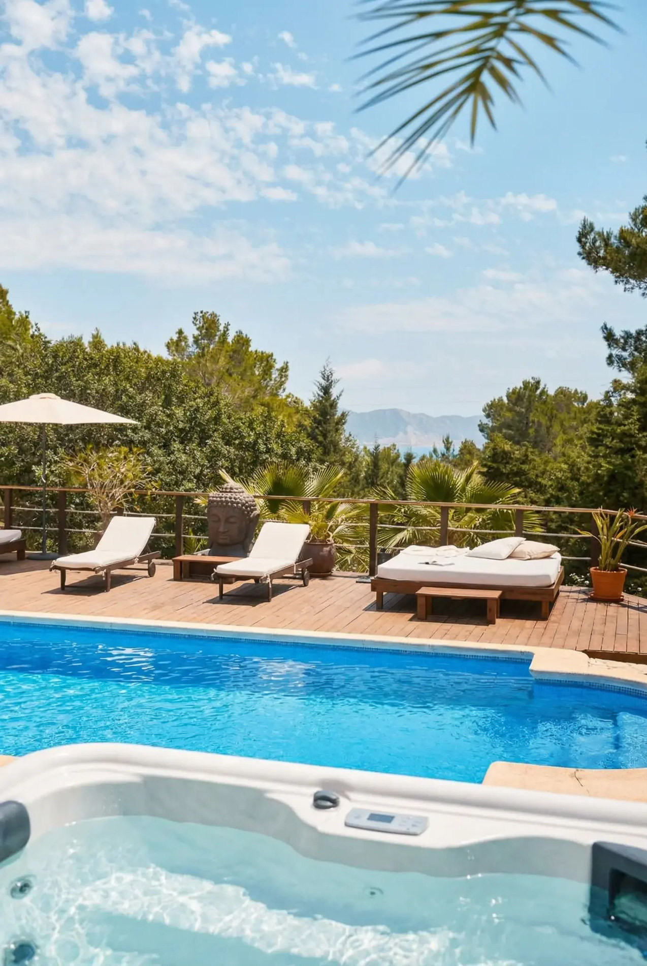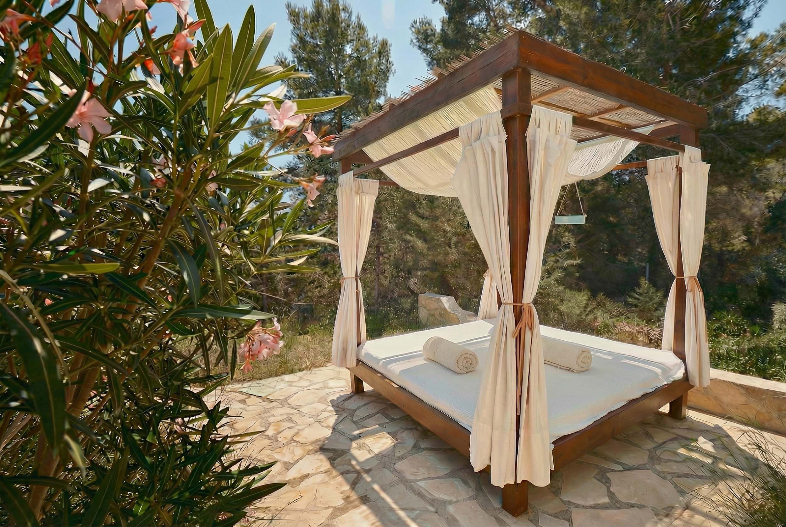 Los espacios exteriores elevan la experiencia al máximo nivel. La propiedad dispone de una gran piscina privada con camas balinesas, jacuzzi, zona de bar y barbacoa, así como diferentes áreas chill out y comedor exterior pensadas para disfrutar del estilo de vida mediterráneo en cualquier momento del día.