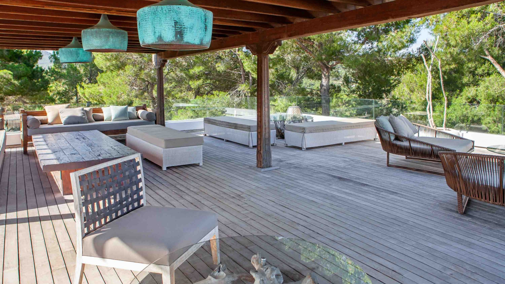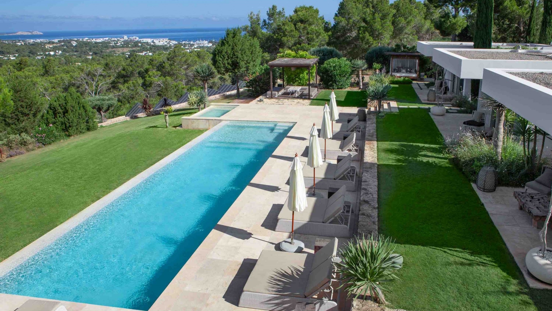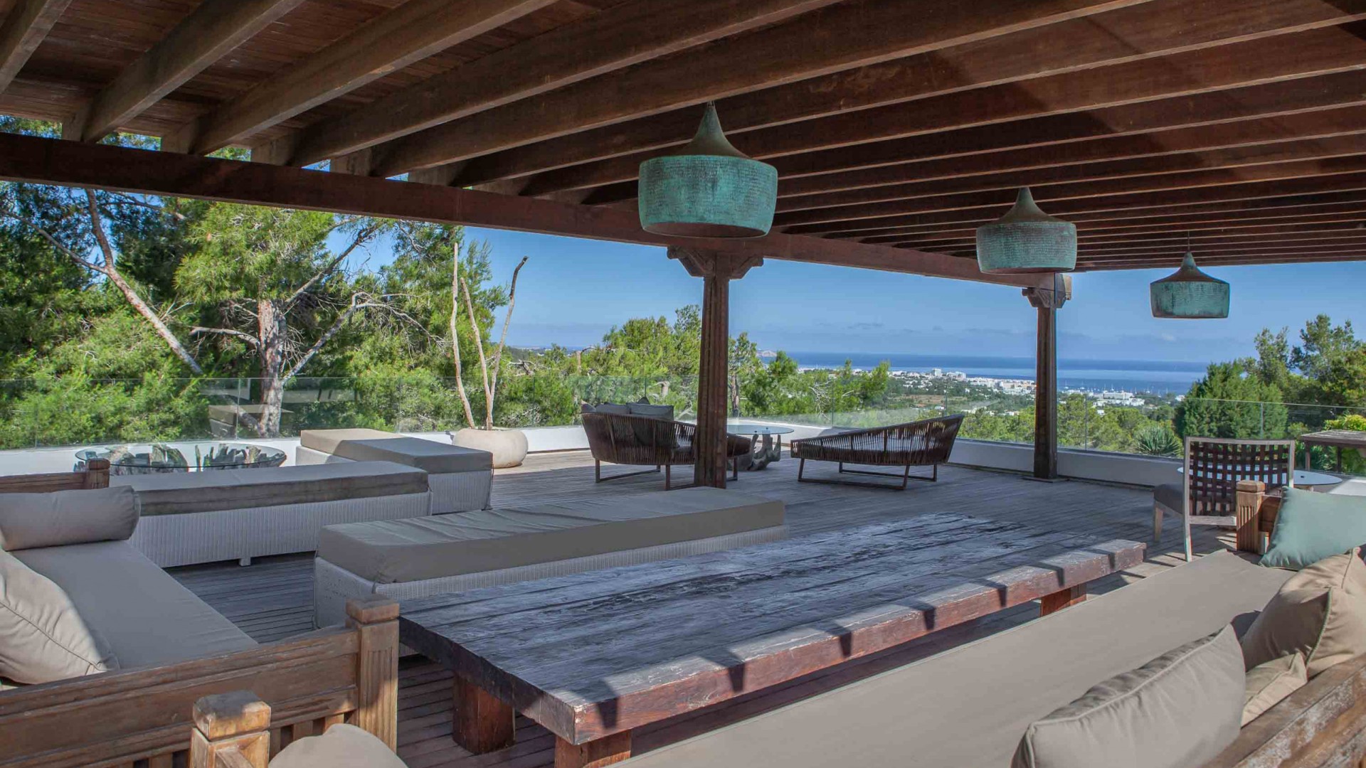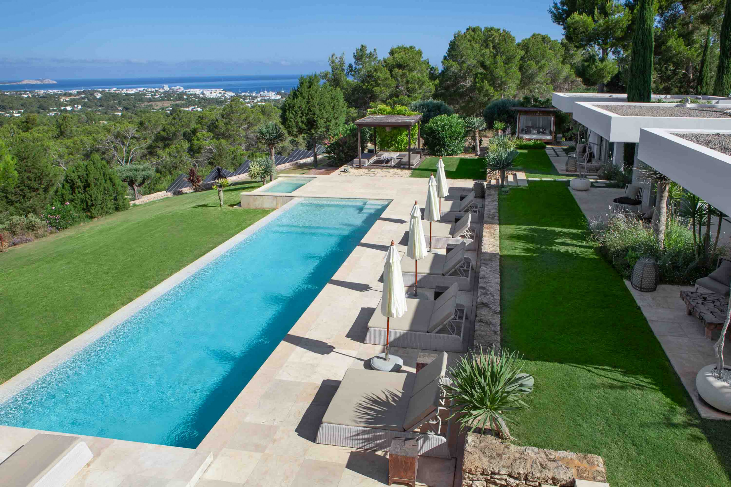 Por último, en el techo del salón hay una amplia zona de chill-out cubierta con grandes sofás para disfrutar del descanso y de las esplendidas vistas. Sistema de audio Sonos por toda la casa.