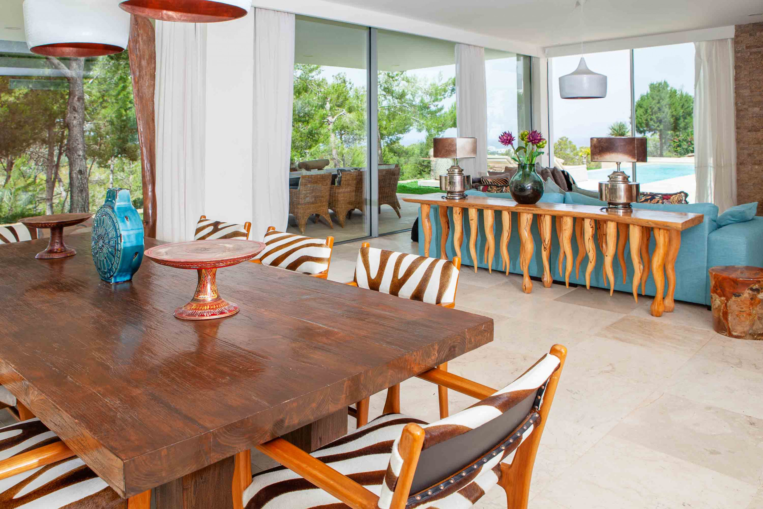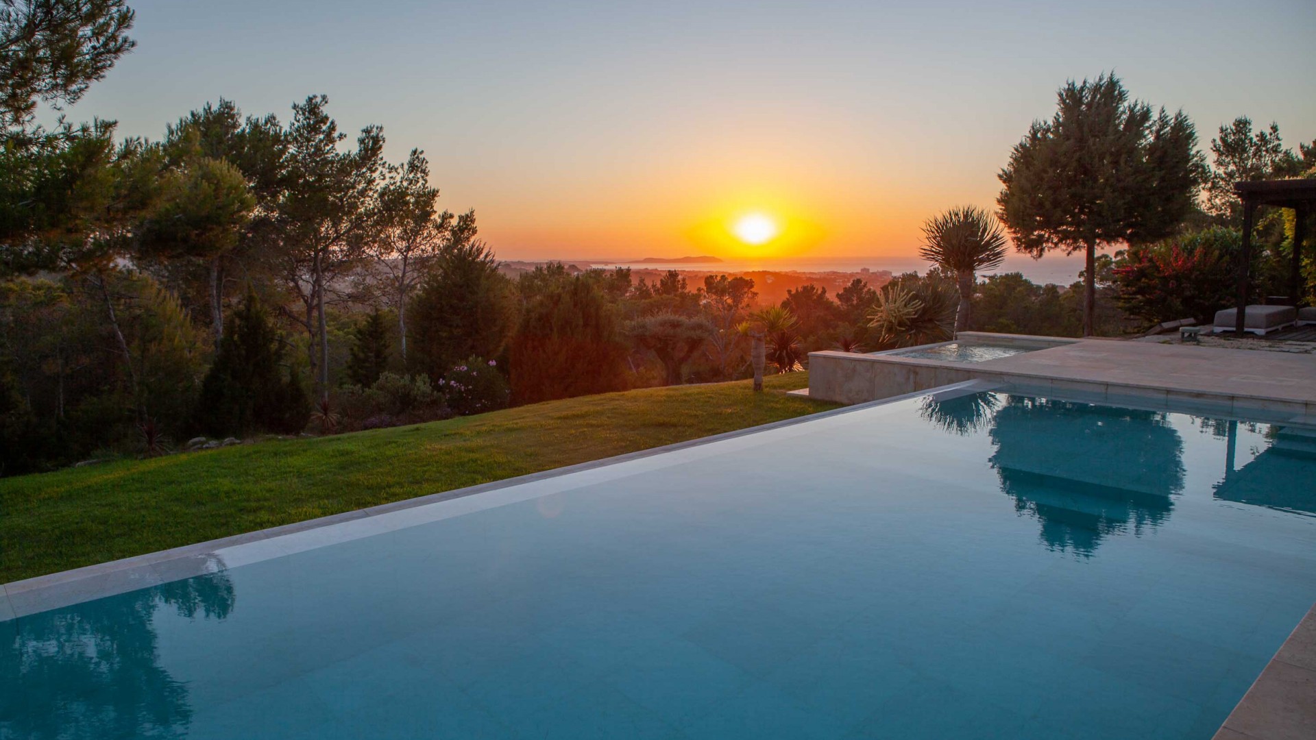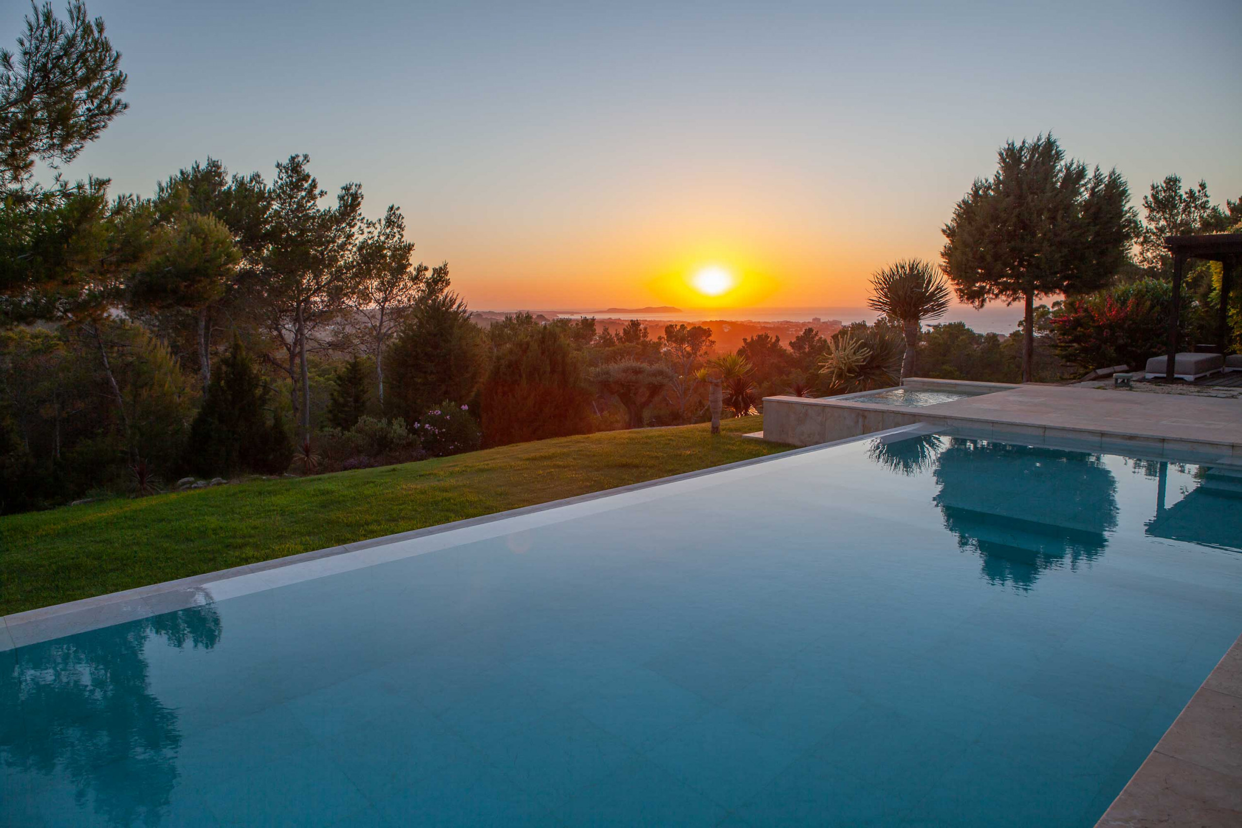 Esplendida y única casa ubicada en lo alto de una colina con inmejorables vistas a la bahía de San Antonio y con las mejores y más completas puestas de sol de la isla.