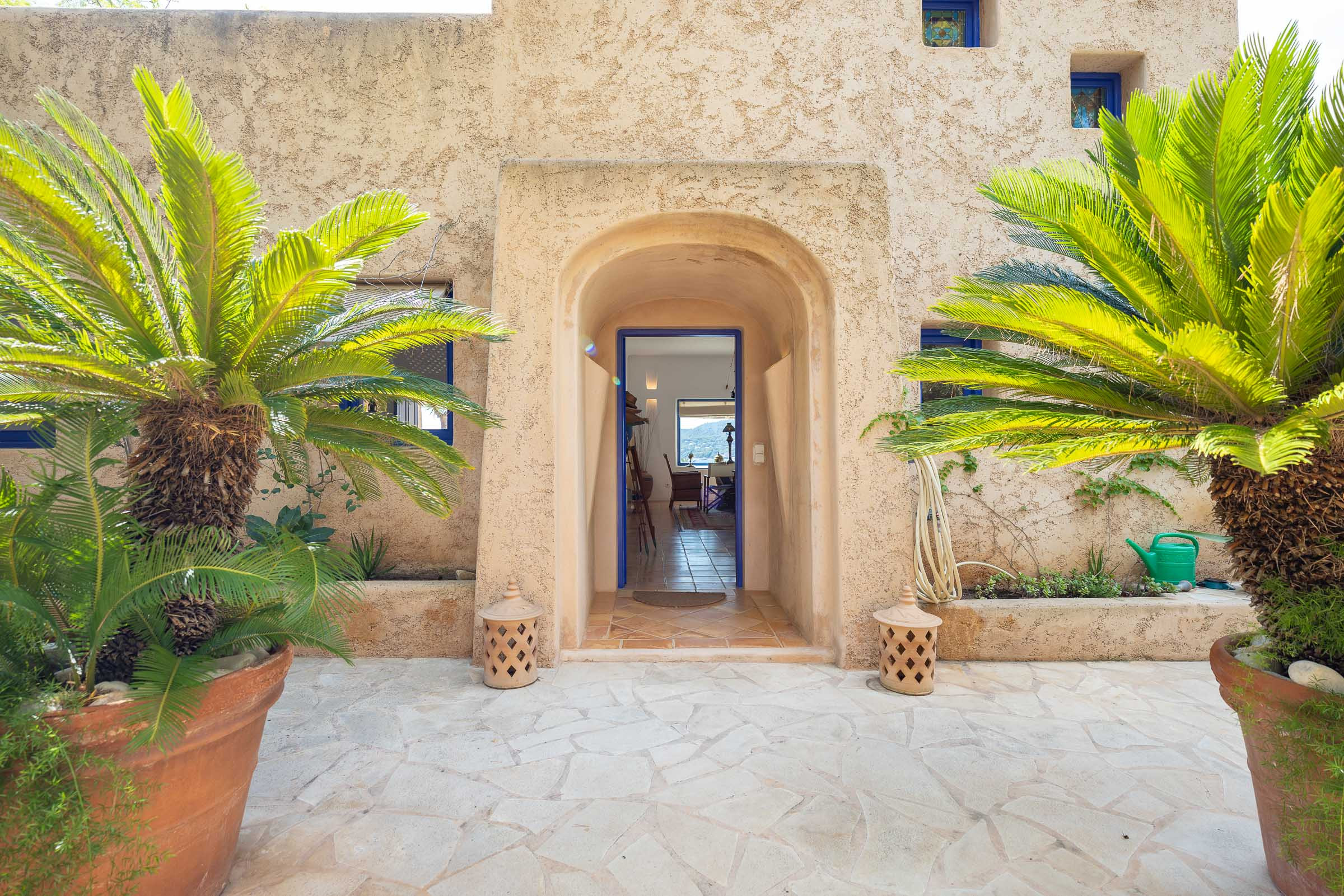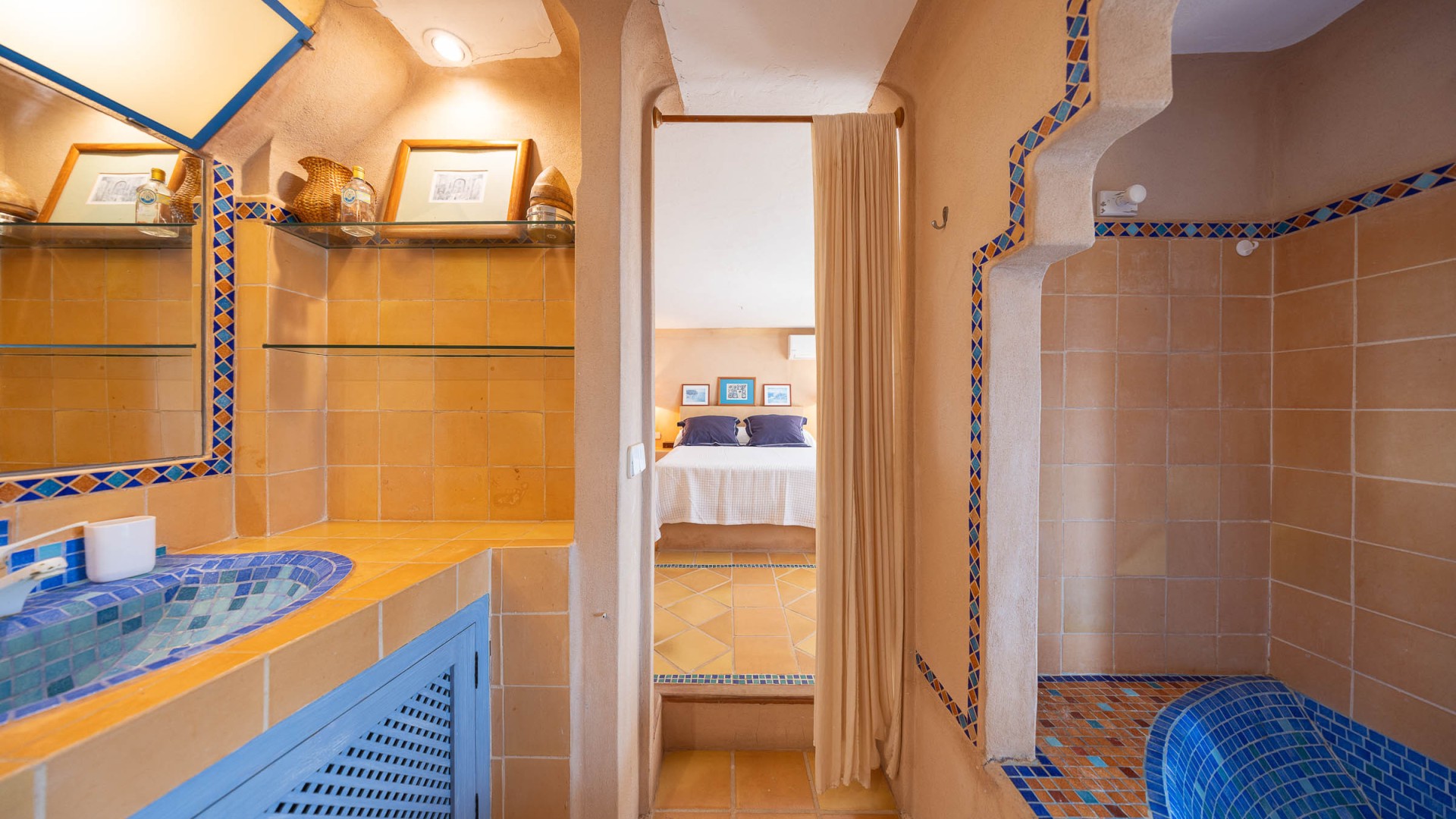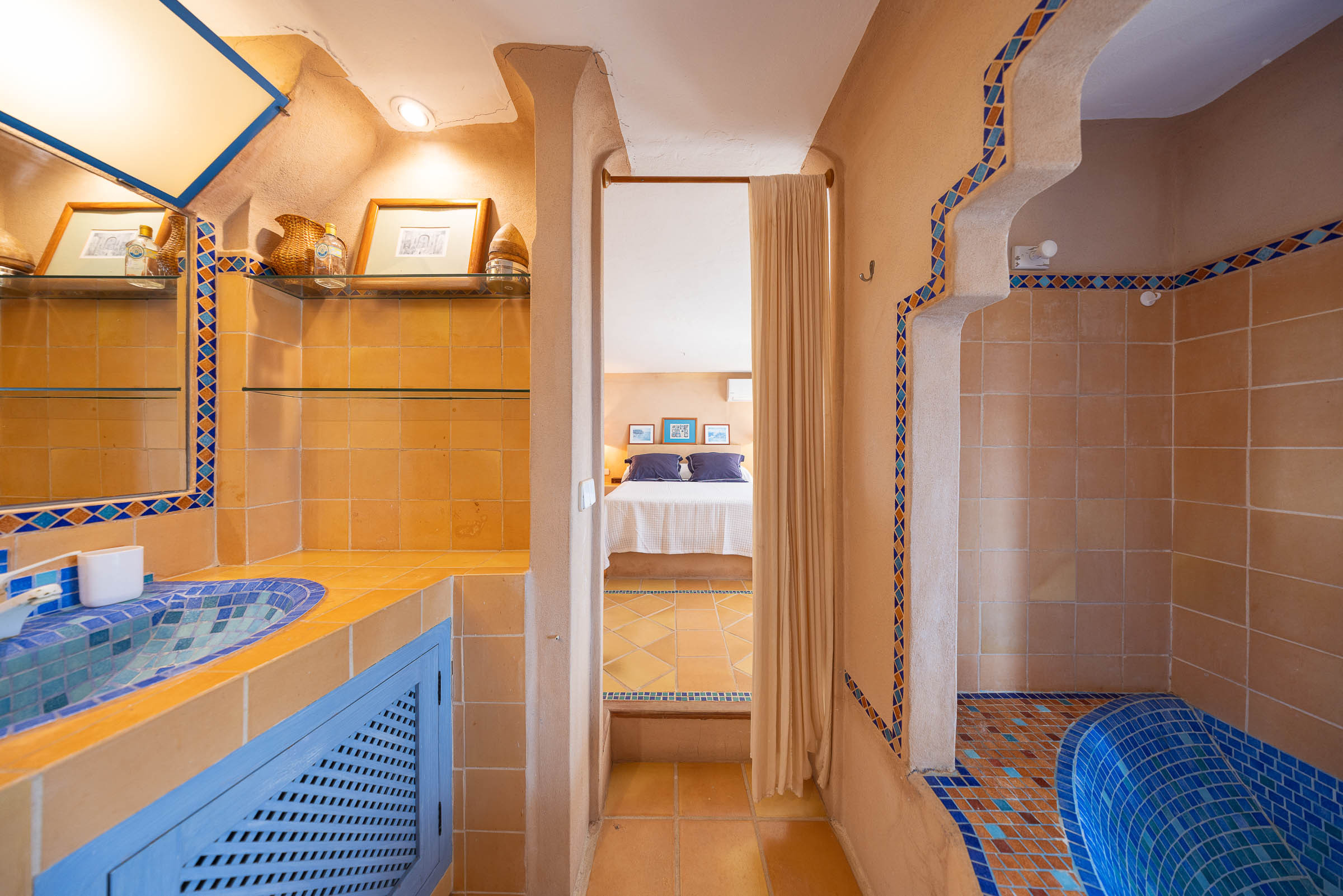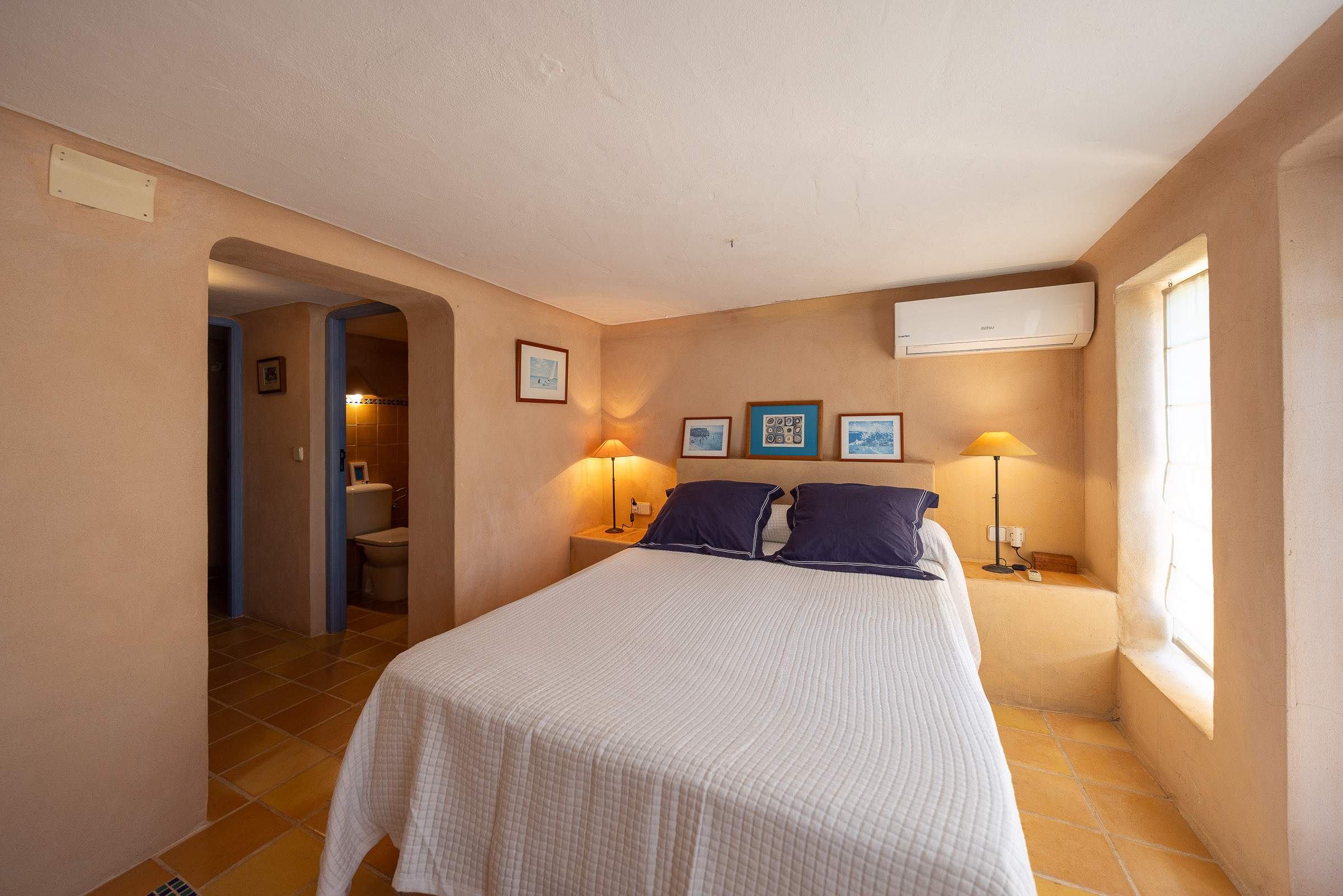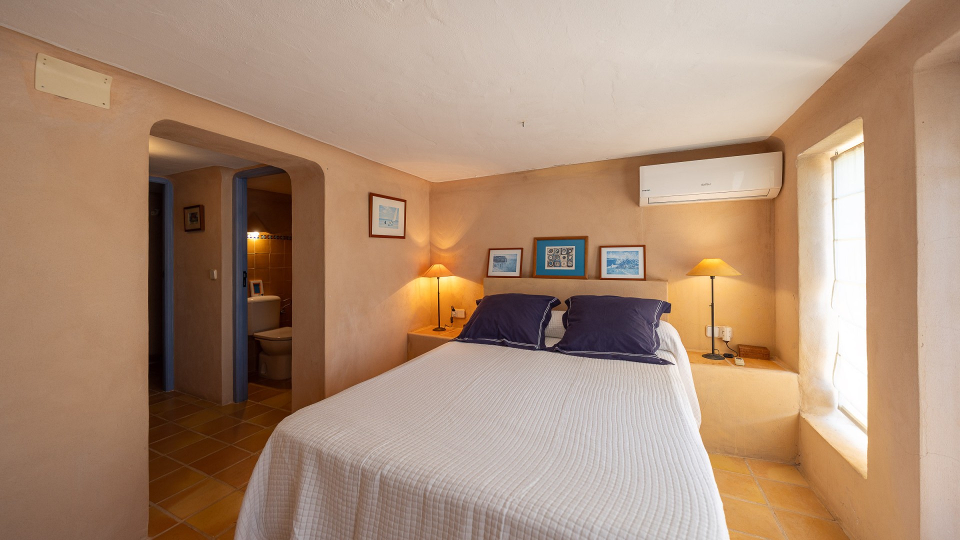 En total, la casa dispone de cuatro dormitorios con un diseño encantador. Un dormitorio doble tiene impresionantes vistas al mar y baño en suite con dos lavabos y bañera. Desde un patio lleno de plantas, se accede a otro dormitorio con dos camas individuales. En la primera planta, hay un dormitorio doble con baño en suite con ducha y acceso a una terraza privada. El cuarto dormitorio, también con cama doble y baño en suite con bañera, no está conectado con la casa principal y se accede a través de la zona de la piscina bajando unos escalones.